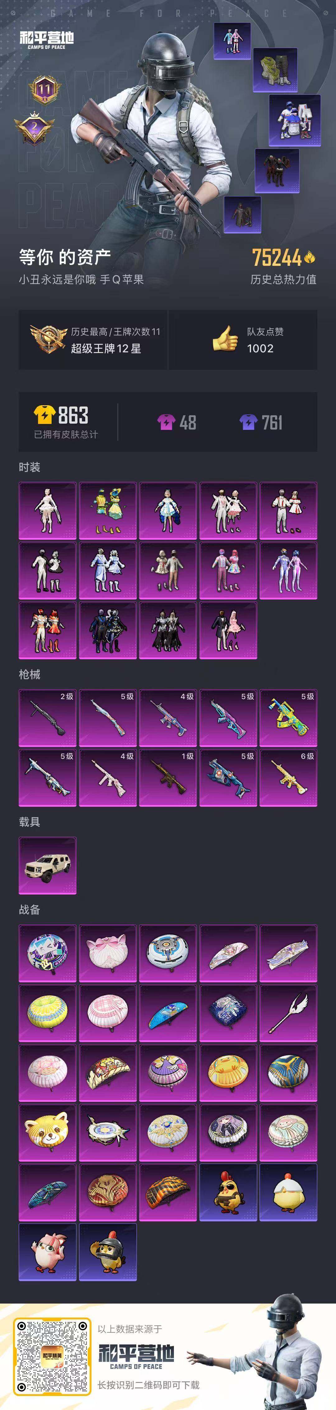 1载具-168套装-225呛皮-yzj13603-可二次 苹果q-2稀有1载具14粉装10特效呛16热门168套装225呛皮 75244热力值 精品女身法号 146扭蛋碎片 新火箭少女 彩虹二姐妹 洛天依 千金淑猫 冰川三姐妹 香水柠檬 霁雪冰心 红眼罩 金羽特工 奇异狩猎者 天命 激萌罗小黑 6级m4暖熊 5级ak梦之光华 4级斯嘎童趣迷兔 5级狗砸香水柠檬 5级mg3洛神天依 11印记 历史超级王牌12星 【2稀有】 奇
