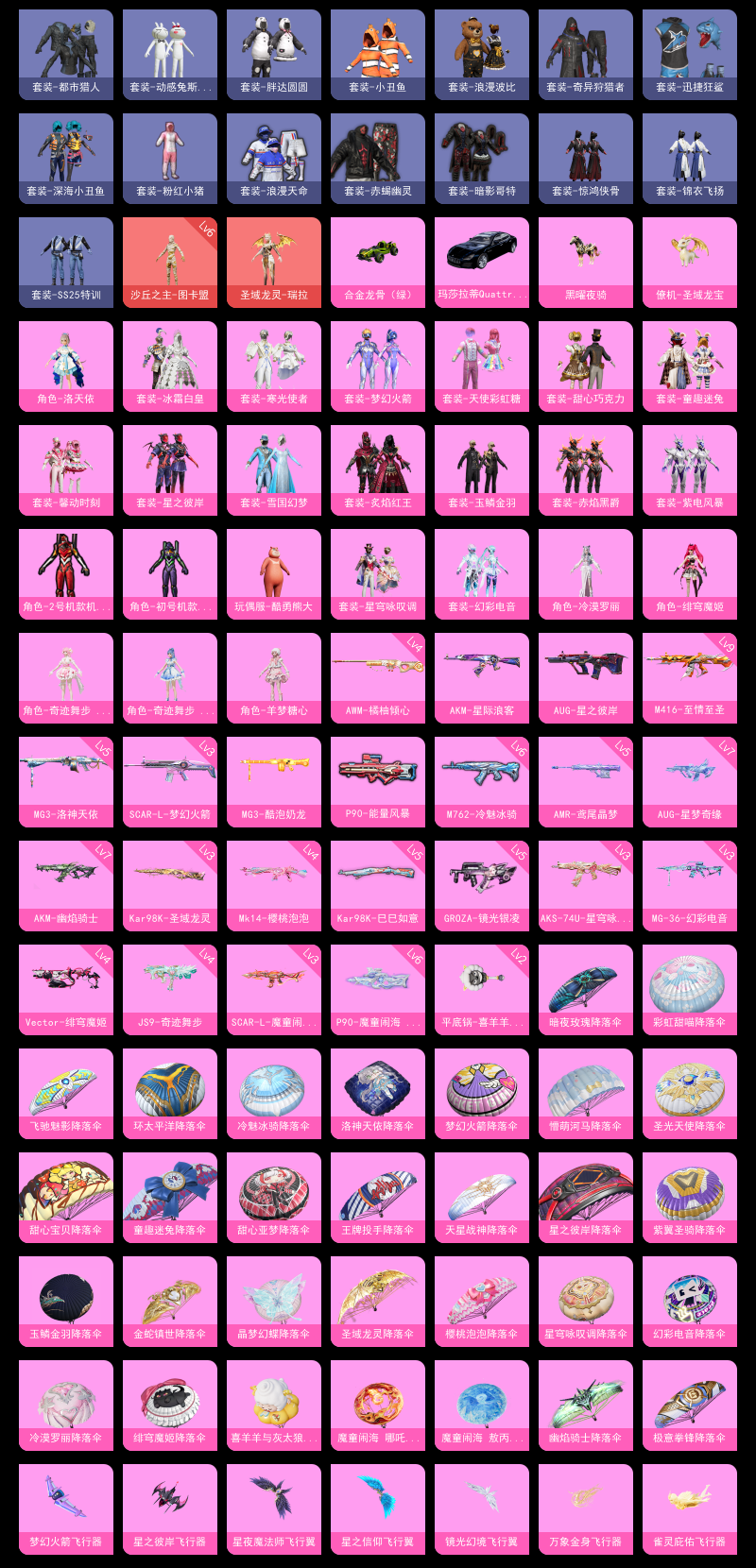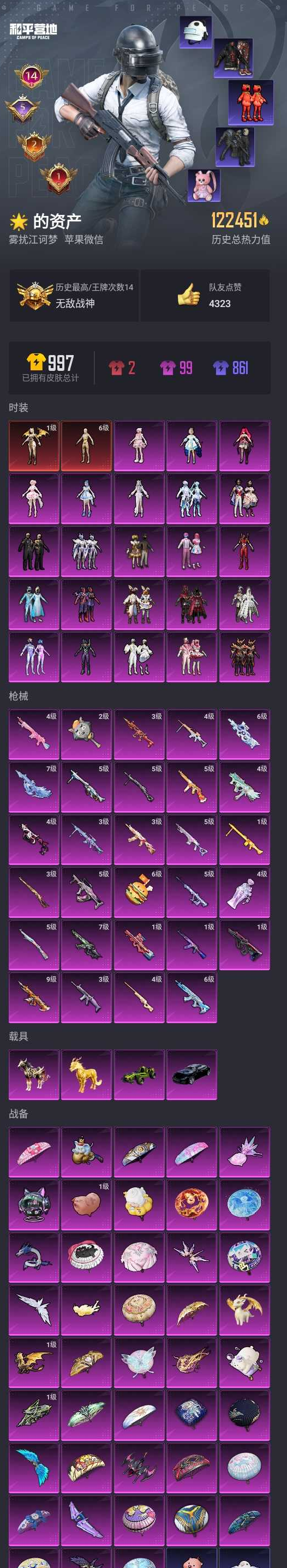 【和平精英】【lyhp20129】23粉装,29特效呛,4载具,历史最高段位:无敌战神 王牌印记14次 热力值:0,184套装,271呛械,359装备,154战备;套装:沙丘之主-图卡盟,圣域龙灵-瑞拉,套装-甜心巧克力,套装-天使彩虹糖,套装-雪国幻梦,套装-梦幻火箭,套装-馨动时刻,套装-冰霜白皇,套装-童趣迷兔,套装-炙焰红王,角色-洛天依,套装-星之彼岸,角色-初号机款机体服,角色-2号机款机体服,套装-赤焰黑爵,套装-紫电风暴,套装-寒光使者,套装-玉鳞金羽,角色-绯穹魔姬,套装-幻彩电音,角色-冷漠罗丽,套装-星穹咏叹调,角色-羊梦糖心,角色-奇迹舞步 美雪,角色-奇迹舞步 美琪,套装-黑色伏地魔,套装-冰川格斗者,套装-竞技名士,套装-长空猛禽,套装-漫步者,套装-赤蝎幽灵,套装-都市猎人,套装-浪漫天命,套装-特战装甲,套装-浪漫假日,套装-春日漫步,套装-鹰眼刺客,套装-冰冻风暴,套装-怒火燎原,套装-都市漫游者,套装-野性战心,套装-狂沙舞者,套装-沙漠兵团,套装-雪山精英,套装-酷潮明星,套装-幻世战舞者,套装-奇异狩猎者,套装-蓝调潮人,套装-暗影哥特,套装-弄潮海豚,套装-迅捷狂鲨,套装-深海小丑鱼,套装-青涩时光,套装-缤纷果语,套装-滨海厨神,套装-冰川特警,套装-胖达圆圆,套装-麻辣教官,套装-小丑鱼,套装-万圣娃娃,套装-粉红小猪,套装-破蛋小黄鸡,套装-浪漫波比,套装-鹤鸣,套装-萌黄之夏,套装-动感兔斯基人偶服,套装-探宝勇士,套装-lgd战队服,套装-牛气满满,套装-萌趣颜团子,套装-战术大师,套装-牛气冲天,套装-飞行日记,套装-天籁歌者,套装-电音精灵,套装-吉莉礼服,角色-零款战斗服,角色-明日香款战斗服,角色-真理款战斗服,角色-薰款战斗服,套装-快乐星愿,套装-星梦畅游,套装-lgd追光队服,套装-ss19特训,套装-兔兔白日梦,套装-飞驰魅影,套装-音速流光,套装-紫翼圣骑,套装-ss20特训,套装-粉团憨憨,套装-王牌投手,套装-恶魔喵喵,套装-猎梦纪元,套装-甜心亚梦,套装-虚音幻奏,套装-ss21特训,套装-暖心熊熊,套装-萌趣咩咩,套装-娇憨猪猪,套装-夏雨游龙,套装-红熊茄茄,套装-梦幻奶油,套装-玉兔迎春,套装-ss22特训,套装-和煦暖阳,套装-田园牧歌,套装-轻风白浪,套装-熠彩粉晶,套装-光之冒险,套装-绯格组合,套装-ss23特训,套装-神气柴柴,套装-懵萌河马,套装-灵蜜圈圈,套装-妙红点点,套装-幻彩翩翩,套装-王牌教练,套装-柠萌假日,套装-青玉碎影,套装-ss24特训,套装-赤地牡丹,套装-银松藏云,角色-短笛,套装-龟仙人,套装-涂山之恋,套装-ss25特训,套装-惊鸿侠骨,套装-锦衣飞扬,套装-ss26特训,套装-漫游都市,套装-ss27特训,套装-恋语绒绒,套装-街头风暴,套装-创世·追猎,套装-异域银装,角色-蜜桃派对,角色-糖霜甜心,角色-夜瞳黯灵,角色-绛羽幽主,玩偶服-酷勇熊大,套装-小鸟芋圆,套装-ss31特训,套装-鱼渊荷华,套装-燕燕于飞,套装-智谋强哥,角色-风玲,套装-紫幽梦,套装-晶辉守护,套装-ss33特训,套装-云朵鹅,套装-巳巳如意,套装-ss32特训,套装-彩虹兔,套装-风舞幻音,套装-蓝冰羽,套装-顶瓜瓜,套装-雪绒豹,套装-狂鲨锋刃,套装-大橘大利,套装-极速光影,角色-时希公主,角色-鲛海歌灵,套装-星渊小夜曲,套装-霓虹热舞,套装-炫彩糖果,套装-星影赞美诗,玩偶服-懒羊羊,玩偶服-喜羊羊,玩偶服-美羊羊,套装-元气之梦,套装-ss34特训,套装-擎苍青焰,套装-朱霞炽焰,套装-凌霄紫焰,套装-薄荷星砂,套装-ss35特训,套装-午间小调,套装-秘语星愿,套装-风迹短诗,套装-琴音绮想,套装-粉黛兰香,套装-画境星梦,套装-ss36特训,套装-萌鸡速递;呛皮:蜜獾-娇憨猪猪,蜜獾-千面幻镜,蜜獾-天降萌叽,蜜獾-绯穹魔姬,蜜獾-鸡智如我,蜜獾-风迹短诗,蜜獾-冰澜龙吟,蜜獾-乌木金纹,1级akm-星际浪客,7级akm-幽焰骑士,akm-灼热熔岩,akm-影袭,akm-缤纷海域,akm-涂鸦街区,akm-星之彼岸,akm-彩虹符号,akm-萌趣颜团子,akm-环太平洋,akm-王牌投手,akm-霓彩脉冲,3级scar-l-梦幻火箭,3级scar-l-魔童闹海 哪吒,scar-l-青丘仙客,scar-l-彩虹符号,scar-l-玉兔迎春,1级aug-星之彼岸,7级aug-星梦奇缘,aug-幻影战神,aug-天降萌叽,aug-异域银装,aug-金蛇镇世,aug-冰晶雪宝,aug-紫晶流影,m16a4-甜心亚梦,m16a4-幻世战舞者,6级m762-冷魅冰骑,m762-奇异狩猎者,m762-甜心宝贝,m762-天降萌叽,m762-天星战神,m762-云朵鹅,famas-霓彩脉冲,famas-乌木金纹,ac-val-甜心亚梦,ac-val-乌木金纹,ac-val-天降萌叽,mk47-百万伏特,mk47-洛神天依,mk47-乌木金纹,mk47-妙红点点,mk47-风迹短诗,5级groza-镜光银凌,groza-影袭,groza-紫翼圣骑,groza-甜蜜草莓,groza-田园牧歌,groza-懵萌河马,groza-晶梦幻蝶,groza-荧海星豚,9级m416-至情至圣,m416-紫翼圣骑,m416-糯团青竹,m416-彩虹嘻嘻猴,m416-魔童闹海 敖闰,g36c-青丘仙客,g36c-冷魅冰骑,g36c-懵萌河马,g36c-星穹咏叹调,ace32-画境星梦,q-彩虹符号,q-洛神天依,q-飞驰魅影,q-妙趣可丽,arx-凌霄紫焰,m24-影袭,m24-奇异狩猎者,m24-炫彩节奏,m24-天降萌叽,m24-樱桃泡泡,m24-幻彩电音,m24-乌木金纹,5级amr-鸢尾晶梦,amr-妙红点点,amr-喜羊羊与灰太狼,amr-乌木金纹,4级awm-橘柚倾心,awm-奇迹舞步,莫辛纳甘-乌木金纹,莫辛纳甘-懵萌河马,莫辛纳甘-风迹短诗,3级kar98k-圣域龙灵,5级kar98k-巳巳如意,kar98k-影袭,kar98k-梦幻火箭,kar98k-洛神天依,kar98k-飞驰魅影,kar98k-星穹咏叹调,win94-乌木金纹,m200-惊鸿侠骨,m200-乌木金纹,svd-天籁学园,svd-冷漠罗丽,svd-云朵鹅,mk20-h-樱桃泡泡,mk20-h-圣域龙灵,mk20-h-狂鲨锋刃,sks-迅猛狂鲨,sks-炫彩节奏,sks-未来歌姬,sks-圣域龙灵,m417-惊鸿侠骨,m41