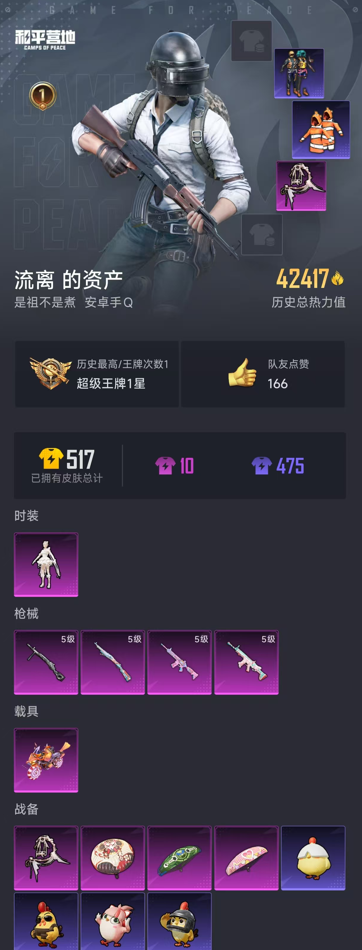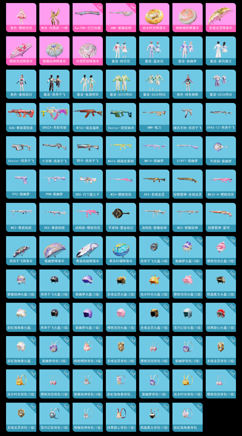 【和平精英】【lyhp20115】2粉装,3特效呛,0载具,历史最高段位:不朽星钻ⅴ 王牌印记-2次 热力值:16841,31套装,64呛械,83装备,30战备;套装:角色-樱桃泡泡,角色-凤凰座 一辉,套装-竞技名士,套装-海岛探路者,套装-旭日情侣,套装-魅力单车,套装-幻世战舞者,套装-龙魂突击队,套装-白糯汤圆,套装-战术大师,套装-漫游都市,套装-恋语绒绒,套装-新风雅兰,角色-绯色魅影,角色-蜜桃派对,套装-双彩圣灵,套装-ss31特训,套装-鱼渊荷华,套装-燕燕于飞,套装-紫幽梦,套装-粉恋花,套装-ss33特训,套装-巳巳如意,套装-ss32特训,套装-蓝冰羽,套装-大橘大利,套装-元气之梦,套装-ss34特训,套装-ss35特训,套装-ss36特训,套装-萌鸡速递;呛皮:m762-瑞龙福将,scar-l-炫彩节奏,scar-l-玉兔迎春,m416-蓝色火焰,m416-萌萌史莱姆,groza-异彩先驱,蜜獾-乌木金纹,aug-青春冒险家,aug-异域银装,aug-紫晶流影,m16a4-冰河战士,akm-破晓战魂,ac-val-天降萌叽,4级amr-智耀战神,amr-鬼刀,5级kar98k-巳巳如意,m24-樱桃泡泡,awm-黄金龙骨,m200-乌木金纹,win94-乌木金纹,slr-霓彩脉冲,sks-炫彩节奏,sks-圣域龙灵,sks-青瓷战姬,mk14-紫幽梦,mk20-h-樱桃泡泡,mk12-乌木金纹,uzi-冰河战士,汤姆逊-炫彩节奏,汤姆逊-天降萌叽,汤姆逊-樱桃泡泡,汤姆逊-智耀战神,ump45-生命誓言,ump45-海盐豹豹,aks-74u-乌木金纹,vect-突变脉冲,vect-燕燕于飞,p90-玩趣呆呆,p90-巳巳如意,野牛-燕燕于飞,s1897-紫幽梦,s1897-糯团青竹,dbs-月下星之子,dbs-乌木金纹,s12k-玩趣呆呆,spas-12-燕燕于飞,s686-巳巳如意,5级dp-28-豹影疾电,dp-28-彩虹符号,mg3-幻世战舞者,mg3-智耀战神,mg3-青瓷战姬,pkm-啾咪啾咪,pkm-紫幽梦,mg-36-薄荷星砂,短管霰弹-圣域龙灵,短管霰弹-星穹咏叹调,蝎式手呛-燕燕于飞,p92-紫幽梦,平底锅-墨金战记,平底锅-紫幽梦,十子怒-燕燕于飞,十子怒-异域银装,破片手留单-巳巳如意;降落伞:圣域金龙飞行器; 详情看图1粉装4特效呛1载具 小丑鱼 深海小丑鱼 满级m4玩具呛 满级死噶