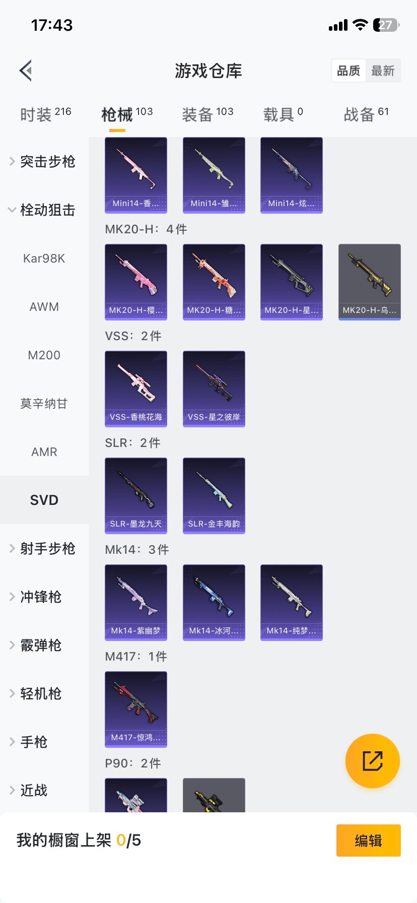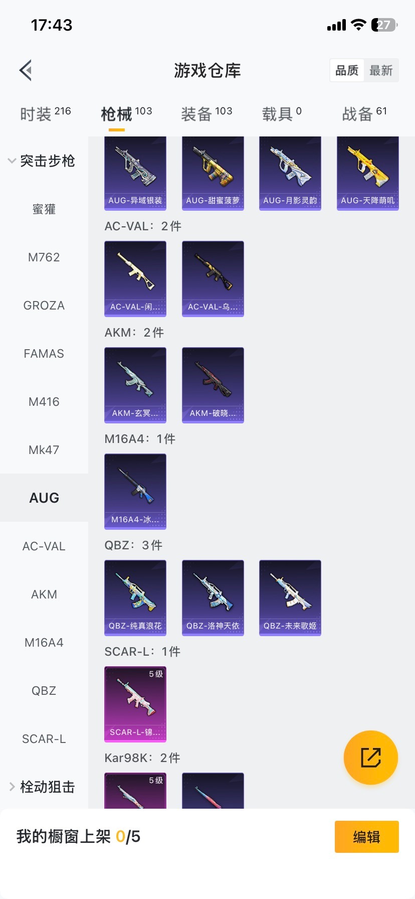 [15571145]4粉装 3特效呛 可二次 可修改实名 【热门装扮】星穹咏叹调憨憨奶龙风幻水境金丰海韵 【稀有呛皮】kar98k-巳巳如意m416风花雪月scar-l-锦绣绵绵 【六级特效呛】六级m416-风花雪月 【五级特效呛】五级kar98k-巳巳如意五级scar-l-锦绣绵绵