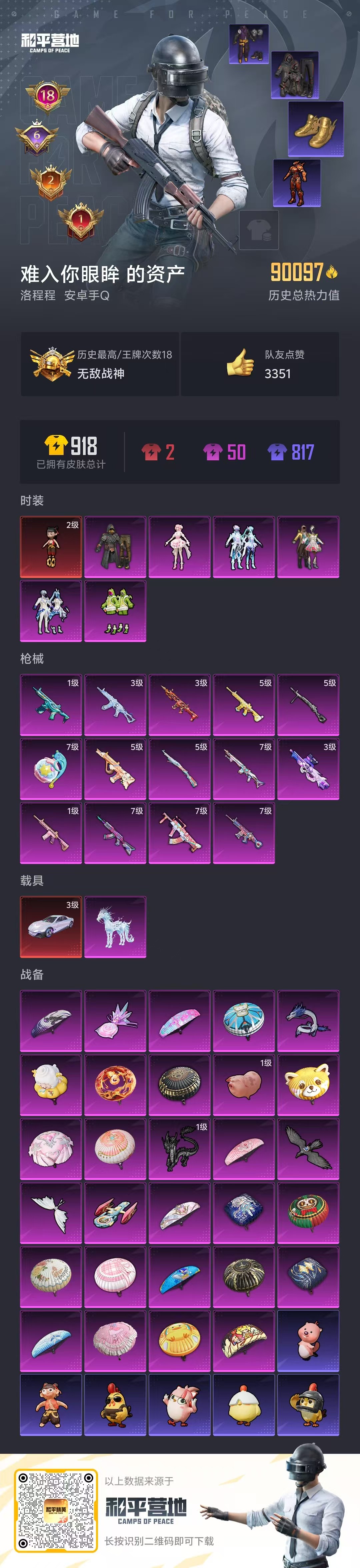 【和平精英】【txhp6193】6粉装,14特效呛,2载具,历史最高段位:无敌战神 王牌印记18次 热力值:90097,174套装,266呛械,302装备,143战备;套装:魔童闹海-哪吒,套装-极限特训,套装-蝶舞迷情,套装-恐龙拽拽,套装-未来歌姬,套装-幻彩电音,角色-奇迹舞步 美雪,套装-特训学院,套装-猎鹰,套装-青年教官,套装-橘黑制服,套装-红色运动,套装-黄色运动,套装-蓝色运动,套装-白色伏地魔,套装-黑色伏地魔,套装-冰川格斗者,套装-竞技名士,套装-深蓝色名流,套装-酒红色名流,套装-湖蓝色名流,套装-黄色名流,套装-猛禽,套装-长空猛禽,套装-黎明保卫者,套装-海岛探路者,套装-旭日情侣,套装-六六大吉,套装-冷焰舞者,套装-水银刺客,套装-浪漫假日,套装-特殊使命,套装-冷酷挑战者,套装-特战英豪,套装-魅力单车,套装-绮丽涂鸦,套装-竞技达人朋克,套装-野性战心,套装-森林游猎者,套装-荣耀,套装-派对舞王,套装-酷潮明星,套装-幻世战舞者,套装-甜蜜熊情侣,套装-青涩时光,套装-缤纷果语,套装-滨海厨神,套装-龙魂突击队,套装-青涩年华,套装-忍者信条,套装-格斗先锋,套装-麻辣教官,套装-粉红小猪,套装-破蛋小黄鸡,套装-玲珑飞花,套装-霓虹街区,套装-萌黄之夏,套装-夏日音浪,套装-顽皮玉兔,套装-探宝勇士,套装-牛气满满,套装-萌趣颜团子,套装-战术大师,套装-牛气冲天,套装-ss18特训,套装-曼妙人鱼,套装-热情海星,套装-纯真浪花,套装-ss14特训,套装-ss15特训,套装-ss16特训,套装-ss17特训,套装-瑞龙福将,套装-团圆交子,套装-福星高照,角色-军刀雅典娜,套装-ss19特训,套装-炫蓝之夏,套装-ss20特训,套装-软羊咩咩,套装-ss21特训,套装-萌趣咩咩,套装-娇憨猪猪,套装-玉兔迎春,套装-ss22特训,套装-和煦暖阳,套装-田园牧歌,套装-轻风白浪,套装-绚烂繁星,套装-光之冒险,套装-绯格组合,套装-ss23特训,套装-神气柴柴,套装-懵萌河马,套装-王牌教练,套装-柠萌假日,套装-ss24特训,套装-龟仙人,套装-ss25特训,套装-惊鸿侠骨,套装-锦衣飞扬,套装-元气发射,套装-龙的传人,套装-ss26特训,套装-快闪甜心,套装-春光漫游,套装-漫游都市,套装-空岛之星,玩偶服-超人强,套装-ss27特训,套装-恋语绒绒,套装-老实芭蕉,套装-ss28特训,角色-拉斐尔,角色-白光莹,角色-情公主,角色-冰公主,角色-银尘,套装-街头风暴,套装-海盐绵绵冰,套装-蝶变,套装-小熊娃娃,套装-ss29特训,套装-雏菊兔兔,套装-萝兰蝴蝶,角色-绯色魅影,套装-异域银装,角色-都市丽猫,套装-星途旅人,角色-糖霜甜心,角色-临安公主,套装-ss30特训,套装-青团波波,套装-棉花软糖,角色-夜瞳黯灵,套装-糖糖葫芦,套装-小鸟芋圆,套装-ss31特训,套装-鱼渊荷华,套装-燕燕于飞,套装-智谋强哥,套装-紫幽梦,套装-粉恋花,套装-ss33特训,套装-云朵鹅,套装-巳巳如意,套装-ss32特训,套装-彩虹兔,套装-青翼流星,套装-蓝冰羽,套装-顶瓜瓜,套装-雪绒豹,套装-狂鲨锋刃,套装-大橘大利,套装-炫彩糖果,角色-乐音,玩偶服-懒羊羊,玩偶服-喜羊羊,套装-元气之梦,套装-ss34特训,套装-擎苍青焰,套装-朱霞炽焰,套装-游乐,套装-凌霄紫焰,套装-薄荷星砂,套装-ss35特训,套装-午间小调,套装-秘语星愿,套装-风迹短诗,套装-琴音绮想,套装-画境星梦,套装-ss36特训,套装-雪国风尚,套装-萌鸡速递;呛皮:7级akm-炫紫旋律,akm-灼热熔岩,akm-奇异狩猎者,akm-夜灯,akm-涂鸦街区,akm-萌趣颜团子,akm-龙的传人,akm-霓彩脉冲,akm-绿洲时空,m16a4-幻世战舞者,m16a4-冰河战士,7级scar-l-童趣迷兔,3级scar-l-魔童闹海 哪吒,scar-l-红色方程式,scar-l-甜蜜誓约,scar-l-夜灯,scar-l-银碳小老虎,scar-l-玉兔迎春,scar-l-是爱神辣,scar-l-海盐豹豹,scar-l-小狗蛇点点,1级蜜獾-异瞳寒姬,蜜獾-娇憨猪猪,蜜獾-垂柳戏鸭,蜜獾-天降萌叽,蜜獾-精灵梦叶罗丽,蜜獾-糖糖葫芦,蜜獾-绯穹魔姬,蜜獾-鸡智如我,蜜獾-风迹短诗,蜜獾-冰澜龙吟,蜜獾-乌木金纹,famas-霓彩脉冲,famas-乌木金纹,ac-val-乌木金纹,ac-val-天降萌叽,ac-val-快闪甜心,m762-甜心宝贝,m762-瑞龙福将,m762-彩虹符号,m762-天降萌叽,m762-雏菊兔兔,m762-云朵鹅,q-彩虹符号,q-纯真浪花,g36c-懵萌河马,g36c-桃粉嫣然,g36c-星穹咏叹调,g36c-乌木金纹,5级aug-暖羊咩咩,aug-甜蜜菠萝,aug-耀粉歌者,aug-怪笑疯兔,aug-天降萌叽,aug-异域银装,aug-紫晶流影,1级m416-心之恋语,5级m416-暖熊萌萌,m416-红色方程式,m416-糯团青竹,mk47-乌木金纹,mk47-炫光之旅,mk47-风迹短诗,ace32-画境星梦,ace32-冰晶雪宝,7级groza-旋转彩虹,groza-春暖花开,groza-田园牧歌,groza-懵萌河马,arx-凌霄紫焰,amr-鸡智如我,amr-喜羊羊与灰太狼,amr-乌木金纹,m24-炫彩节奏,m24-乌木金纹,awm-垂柳戏鸭,awm-纯真浪花,awm-奇迹舞步,5级kar98k-巳巳如意,kar98k-影袭,kar98k-彩虹符号,kar98k-炫彩节奏,kar98k-乌木金纹,m200-惊鸿侠骨,m200-乌木金纹,莫辛纳甘-乌木金纹,莫辛纳甘-懵萌河马,莫辛纳甘-镭金极速,莫辛纳甘-风迹短诗,svd-冷漠罗丽,svd-云朵鹅,svd-霓彩脉冲,win94-瑞龙福将,win94-乌木金纹,7级mk14-精灵梦叶罗丽,mk14-乌木金纹,mk14-冰河战士,mk14-紫幽梦,mk14-薄荷星砂,mini14-金玉无双,mini14-春暖花开,mini14-炫彩节奏,mini14-海渊国主,mini14-香桃花海,mini14-雏菊兔兔,mini14-绯穹魔姬,mini14-鸡智如我,mk12-金蛇镇世,mk12-风迹短诗,mk12-乌木金纹,sks-金玉无双,sks-糯团青竹,m417-星兔领航员,m417-惊鸿侠骨,m417-玩趣呆呆,m1加兰德-画境星梦,slr-娇憨猪猪,slr-墨龙九天,slr-霓彩脉冲,vss-田园牧歌,vss-彩虹符号,vss-香桃花海,qbu-飒粉甜心,mk20-h-墨染幽兰,mk20-h-快闪甜