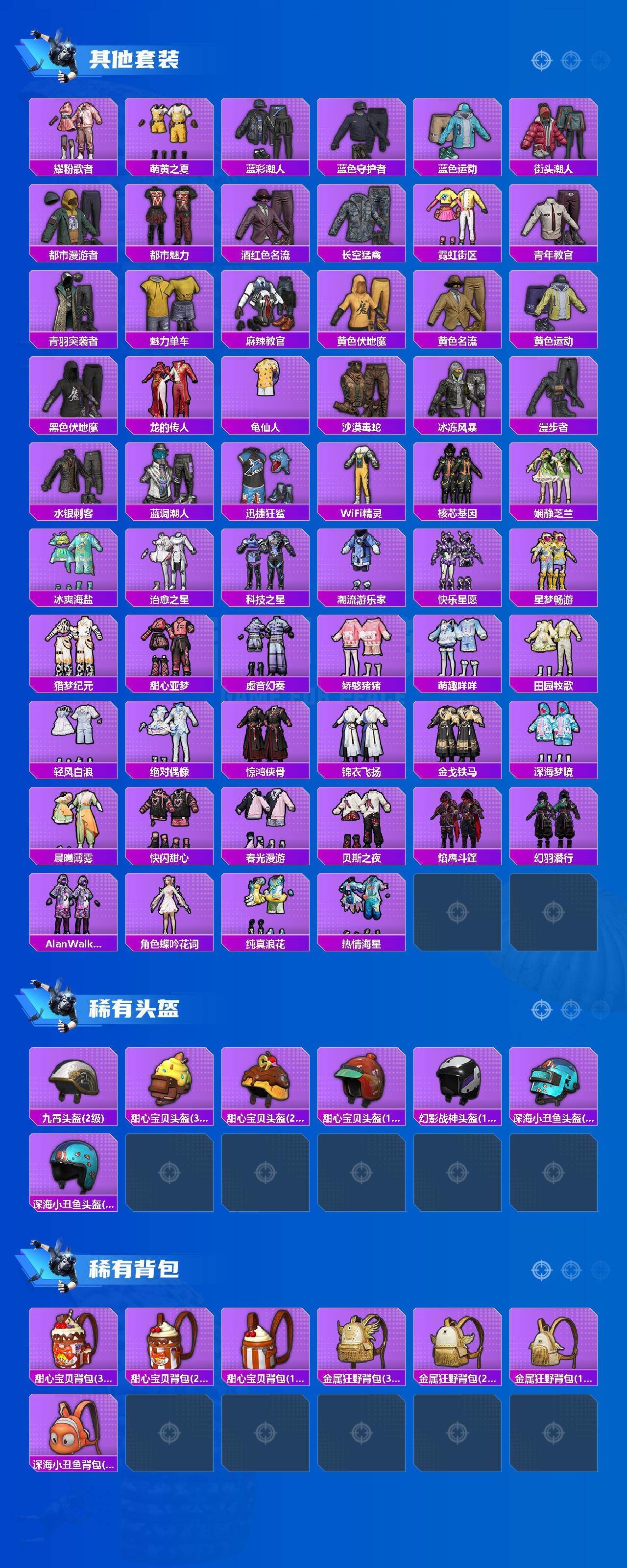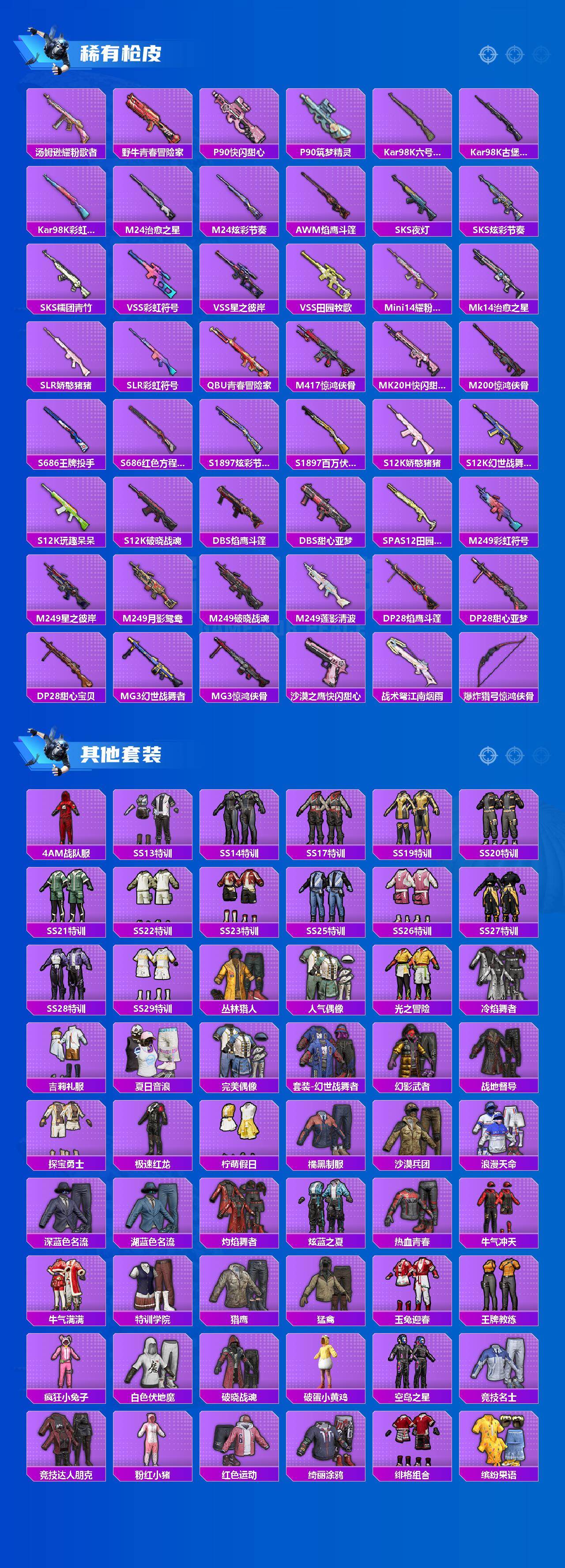 1载具-128套装-173呛皮-128套装/呛械7/装备216/载具1/战备116/王牌印记8/热力值53866/四级akm-炫紫旋律/四级scar-l-纯梦嫁纱/m416-五爪金龙/m416-心之恋语/五级m416-风花雪月/五级m416-电玩时刻/五级m762-青锋波束/粉装-繁龙极客/套装-浪漫天命/套装-龟仙人/套装-粉红小猪/宝贝奶油派/天使彩虹糖/幻影/圣堂之誓/繁龙极客/仰望u9赤霞丹朱/akm-炫紫旋律/