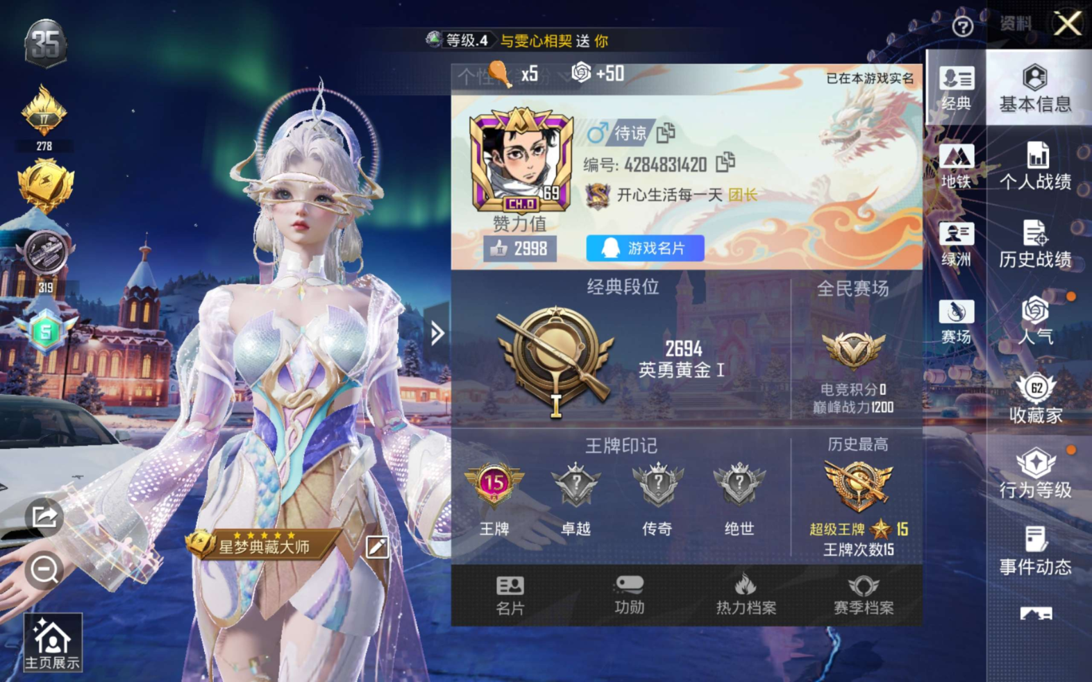 2393547-1载具-151套装-221呛皮1稀有1载具5粉装3特效呛21热门151套装221呛皮 70866热力值 15印记 历史超级王牌15星 【1稀有】 akm-缤纷海域 【1载具】 特斯拉3白色 【5粉装】 女娲灵识 翡翠骑士 银红美神 星之彼岸 暗星紫秘 【3特效呛】 m416-心之恋语 7级 kar98k-巳巳如意 5级 m24-暗星紫秘 7级 【21热门】 龟