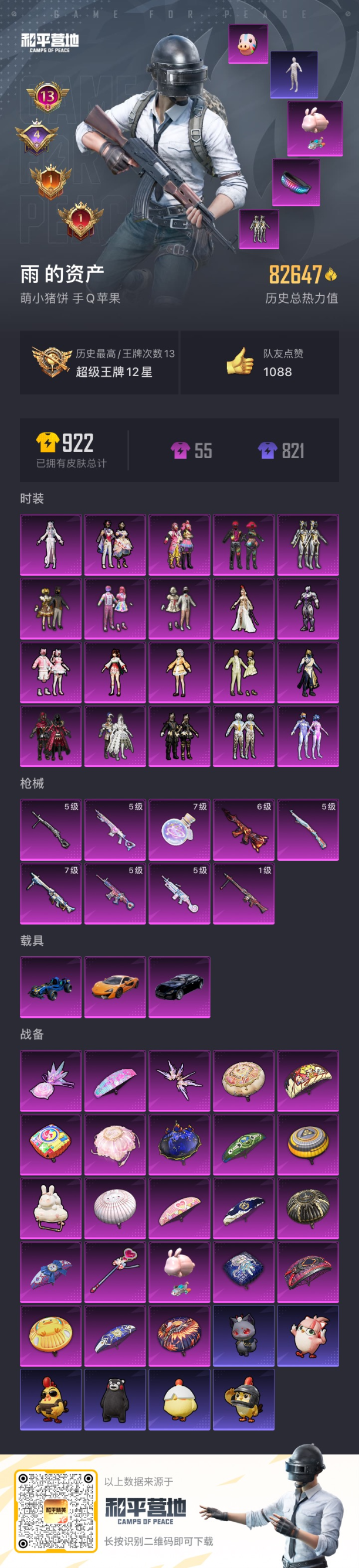 _2393820-3载具-183套装-251呛皮-木乃伊三姐妹猪妹放客2稀有4载具20粉装9特效呛16热门183套装251呛皮82647热力值13印记历史超级王牌12星【2稀有】木乃伊akm-缤纷海域【4载具】玛莎拉蒂q蓝色迈凯伦570s旭日黄合金龙骨蓝色萌兔起飞僚机【20粉装】梦幻火箭萨利娅宝贝奶油派天使彩虹糖甜心巧克力星穹咏叹调冷漠罗丽绿野邂逅呆萌星弥小可学妹黄族统领紫钛骑兵缤纷油彩放客神游千面幻镜暗夜鎏金绚金战神冰霜白皇炙焰红王彩虹甜喵【9特效呛】kar98k-巳巳如意5级dp-28-豹影疾电5级mk14-甜梦熊击5级scar-l-童趣迷兔5级m416-风花雪月6级mg3-洛神天依7级m249-彩虹甜喵5级mg3-炙焰牛王1级破片手留单-瓶中星球7级【16热门】8号机龟仙人红熊茄茄兔兔小魔女软软马卡龙晶辉守护鹰眼刺客迅捷狂鲨深海小丑鱼暗影哥特团圆交子瑞龙福将粉红小猪破蛋小黄鸡弄潮海豚m762-瑞龙福将【2飞行器】童趣迷兔飞行器白勺歌姬飞行器【3头盔】童趣迷兔头盔梦幻火箭头盔甜心宝贝头盔【3背包】梦幻火箭背包甜心宝贝背包深海小丑鱼背包营地id: