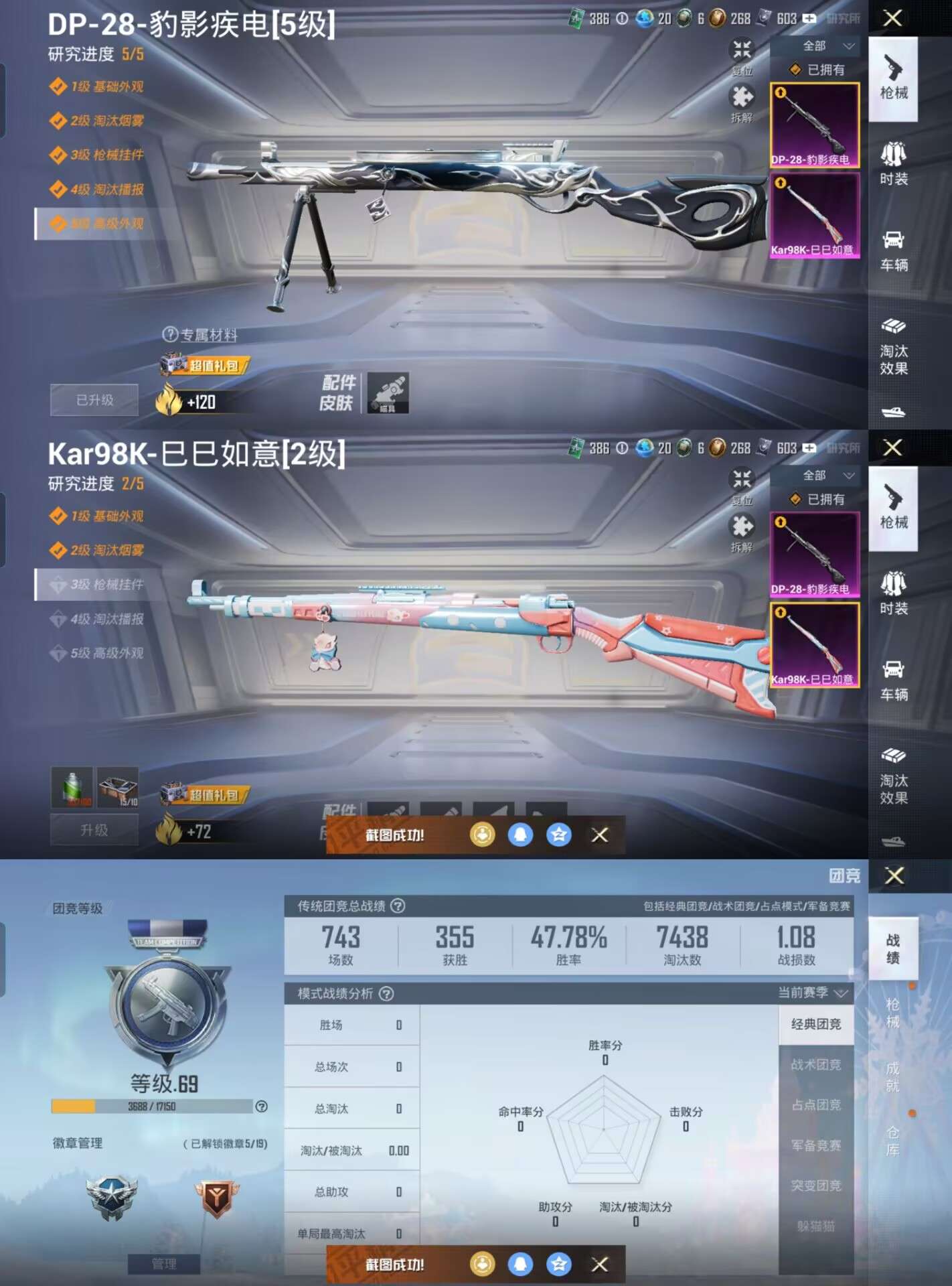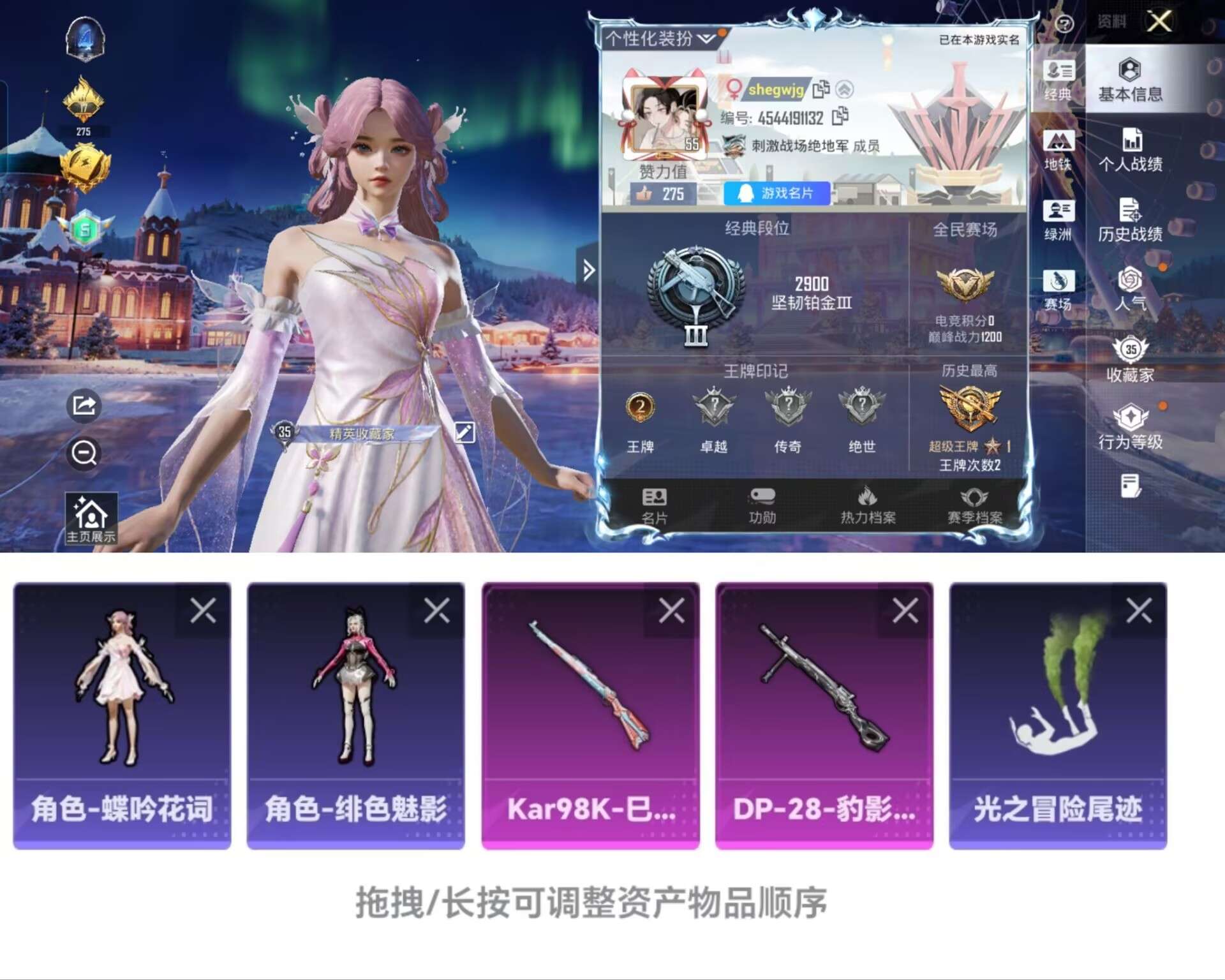 0载具-71套装-110呛皮-t261身法素材角色蝶吟花词-地铁天赋点38-2特效呛-28222热力值-2王牌印记q12级-71套装-110呛皮【特效呛等级】:kar98k-巳巳如意二级kar98k-巳巳如意【优质武器皮肤】: kar98k-巳巳如意【稀有武器皮肤】: kar98k-巳巳如意 野牛-雏菊兔兔 蜜獾-乌木金纹 m416-红色方程式 m416-蓝色火焰 m416-糯团青竹 akm-彩虹符