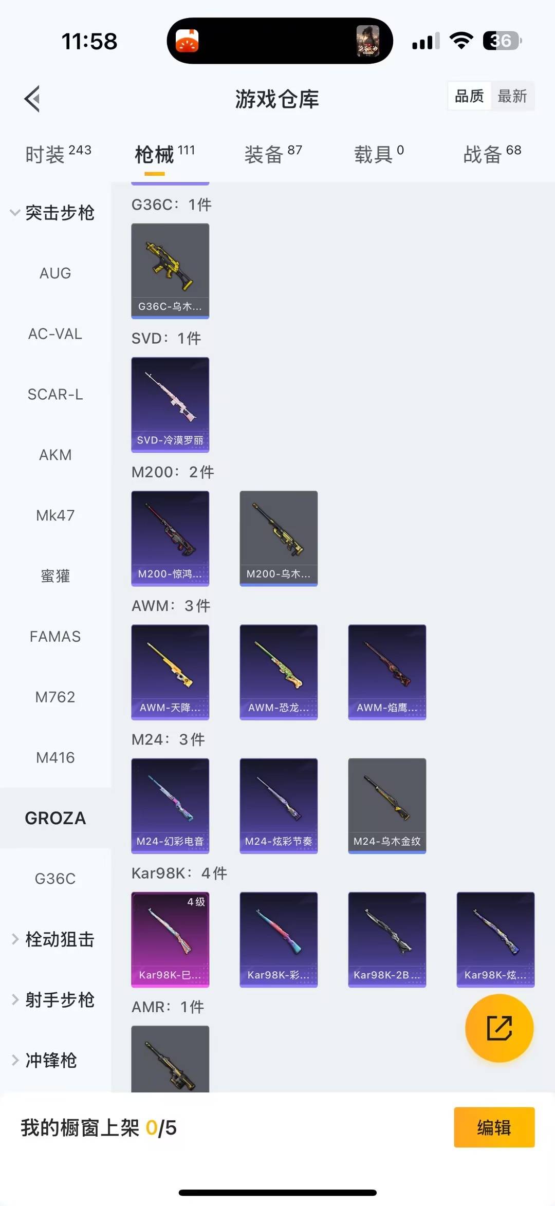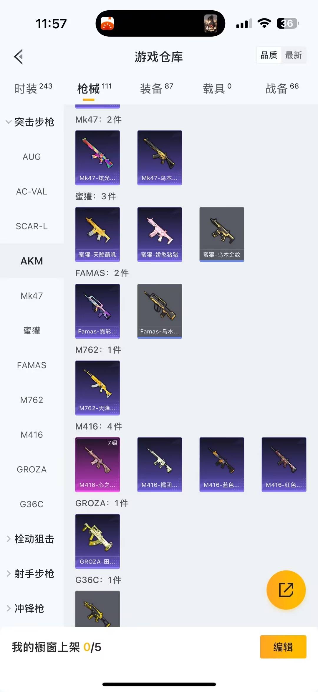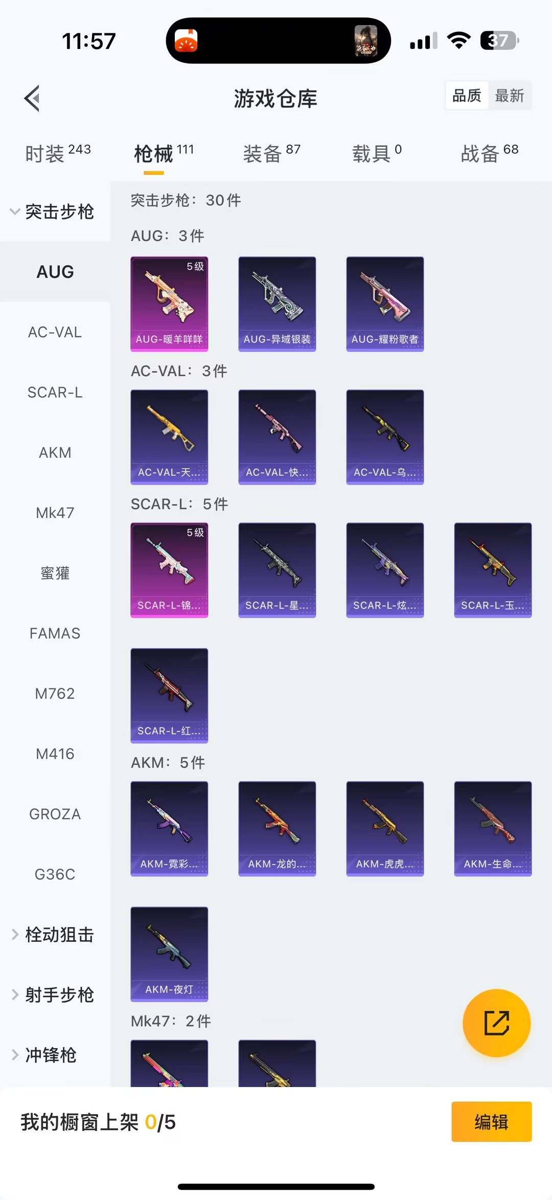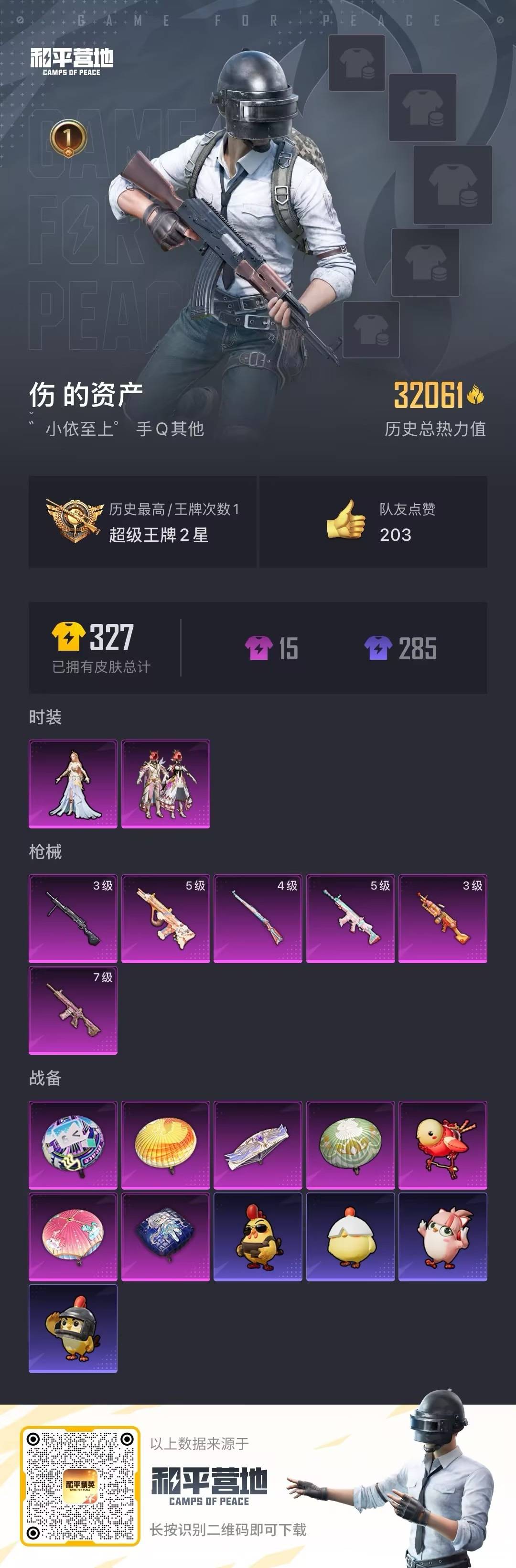 2粉装 6特效呛 0.0载具 1印记 可二次 【热门装扮】心之恋语智耀战神 【稀有呛皮】m416心之恋语aug-暖羊咩咩scar-l-锦绣绵绵kar98k-巳巳如意dp-28-豹影疾电m249猪猪侠 【七级特效呛】七级m416-心之恋语 【五级特效呛】五级aug-暖羊咩咩五级s