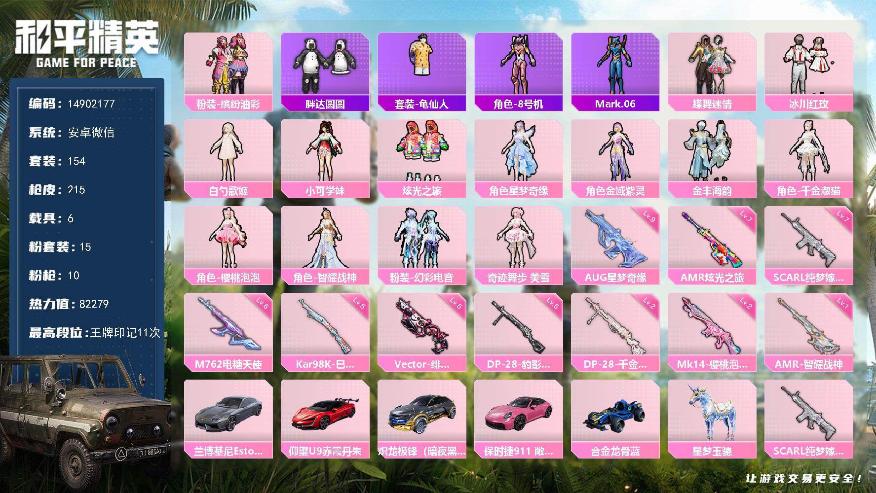 [15669943]"das9058 可二次 安卓v-6载具15粉装10特效呛10热门154套装215呛皮 82279热力值 11印记 历史绝世王牌24星 aug-星梦奇缘 9级 【6载具】 保时捷911敞篷版星珀红 仰望u9赤霞丹朱 兰博轿车灰色 合金龙骨蓝色 炽龙极锋暗夜黑 星梦玉骢 【15粉装】 蝶舞迷情 奇迹舞步美雪 时空协奏·心弦 千金淑猫 金丰海韵 樱桃泡泡 炫光之旅 金域紫灵 星梦奇缘 白勺歌姬 小可学妹 智耀战神 幻彩电音 缤纷油彩 冰川红玫 【10特效呛】 scar-l-纯梦嫁纱 7级 kar98k-巳巳如意 5级 vect-绯穹魔姬 5级 m762-电糖天使 6级 dp-28-千金淑猫 2级 dp-28-豹影疾电 5级 aug-星梦奇缘 9级 mk14-樱桃泡泡 2级 amr-智耀战神 1级 amr-炫光之旅 7级 【10热门】 8号机 mark.06 龟仙人 浪漫假日 雪山精英 晶辉守护 小狗蛇点点 胖达圆圆 wbg追光队服 破蛋小黄鸡 【2飞行器】 齐天大圣飞行器 鎏金朋克飞行器"