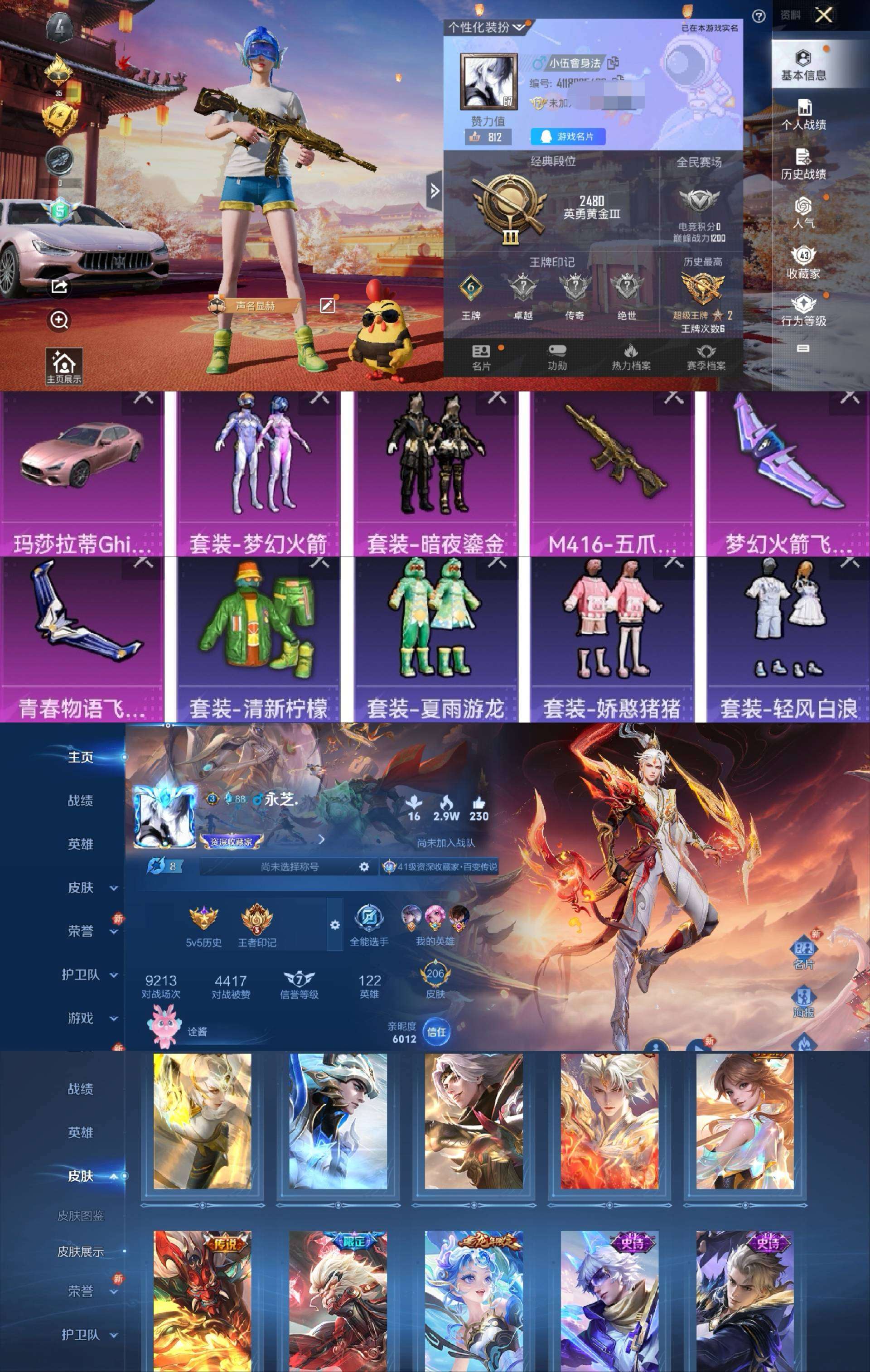 1载具-108套装-120呛皮-"h5629和平粉玛莎火箭五爪连体王者v7-206皮8传说 有二次 安卓q-段位黄金 6印记 108