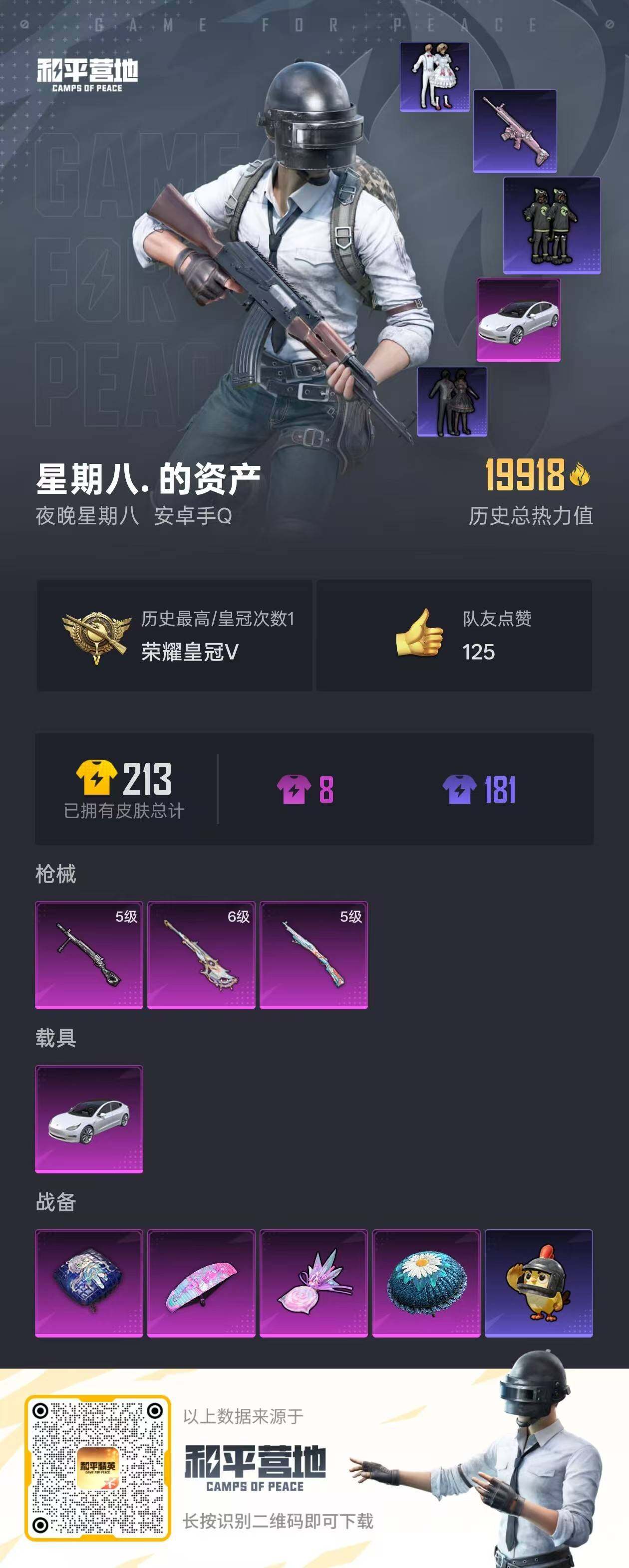 [15723462]【特价出售/店主推荐】安卓 手q-0粉装-3特效呛-1载具-1粉色飞行器-19918热力值-1王牌印记-44套装-60呛皮【粉色呛皮等级】:kar98k-巳巳如意五级,amr-智耀战神六级,dp-28-豹影疾电五级【粉色载具】:特斯拉model 3(珍珠白)【粉色呛皮】:kar98k-巳巳如意,amr-智耀战神,dp-28-豹影疾电