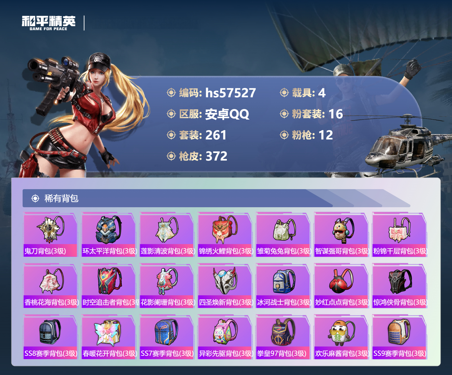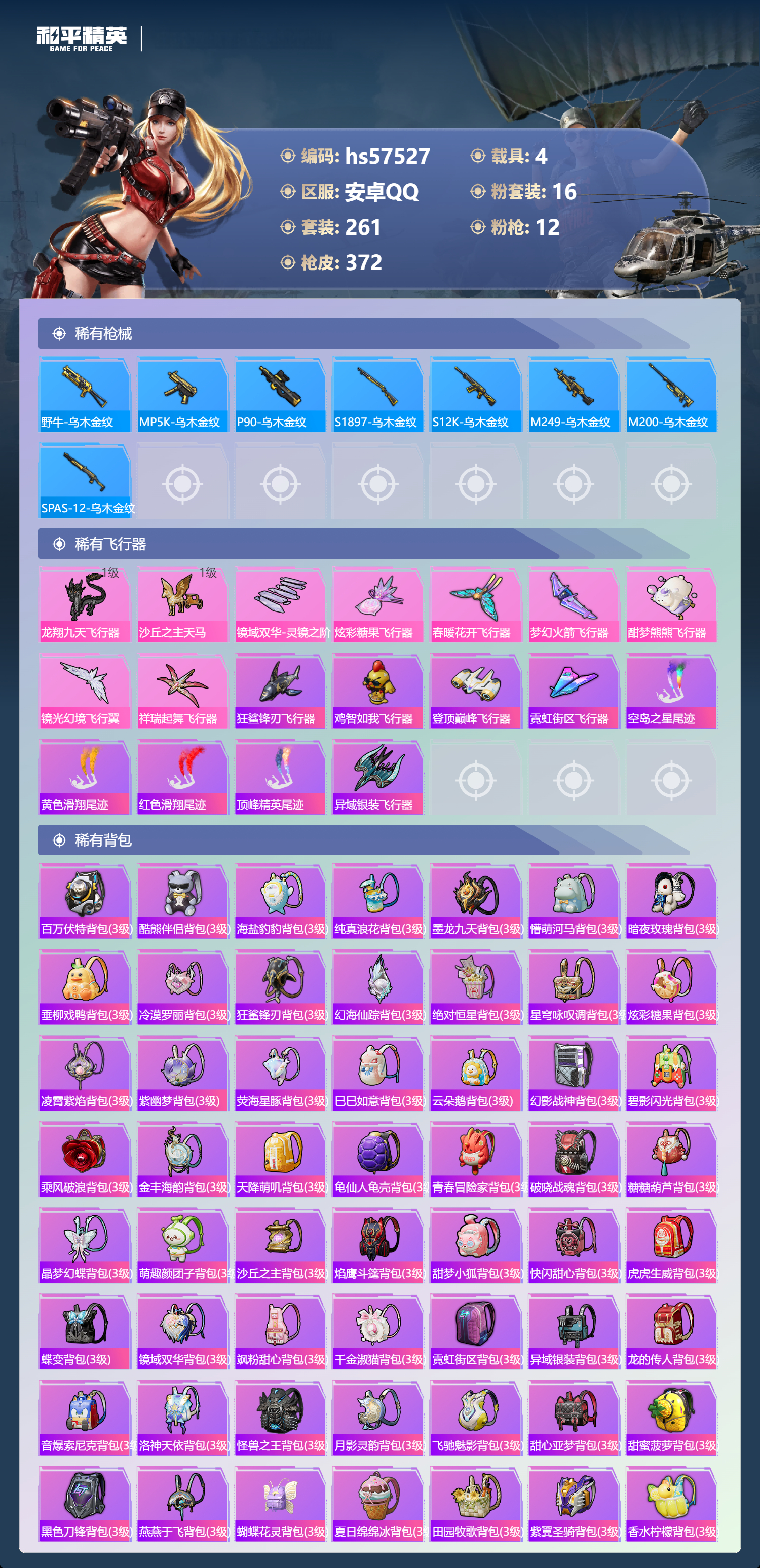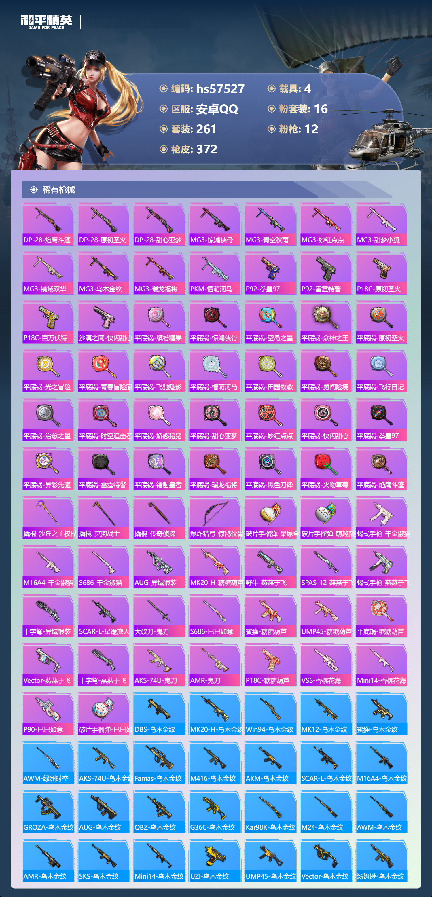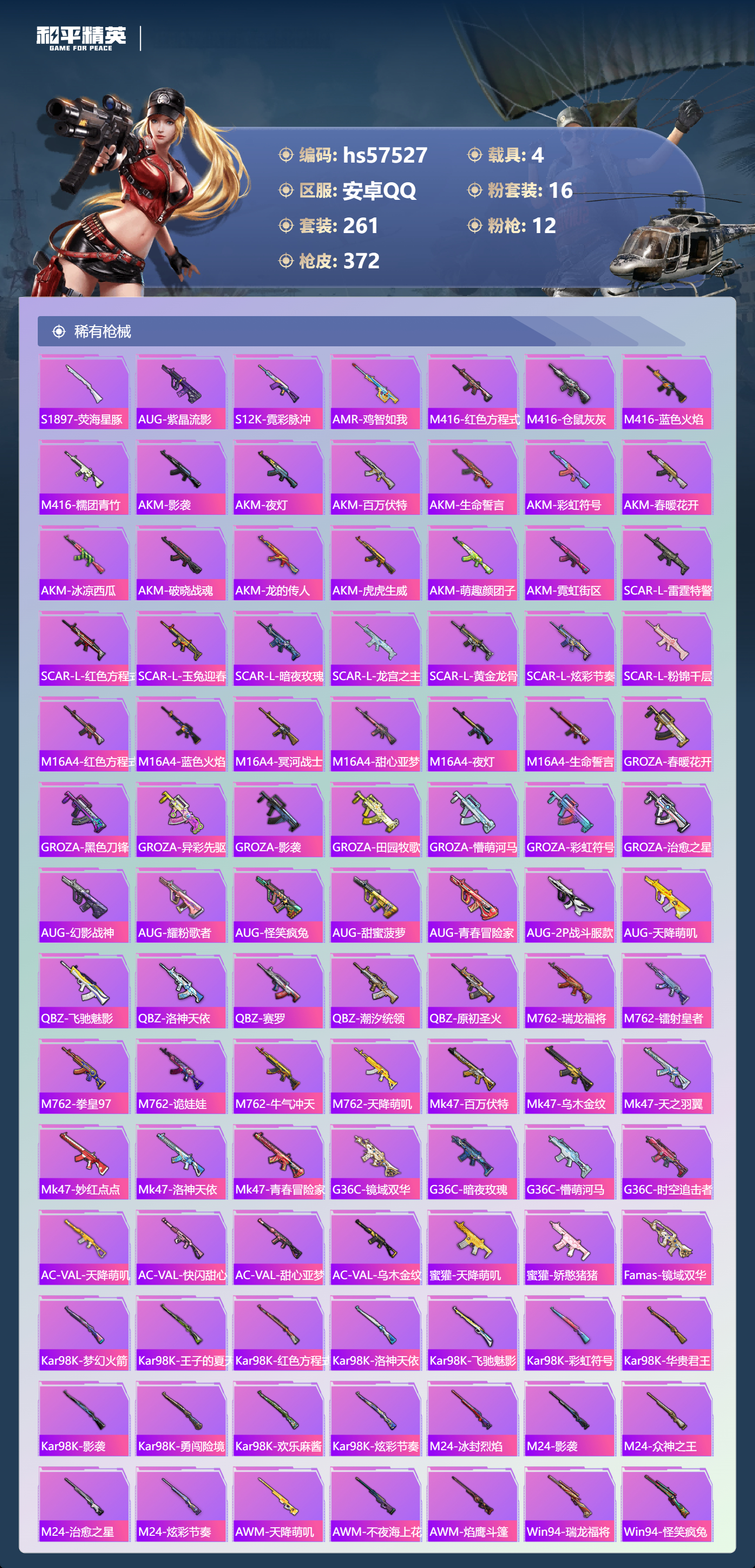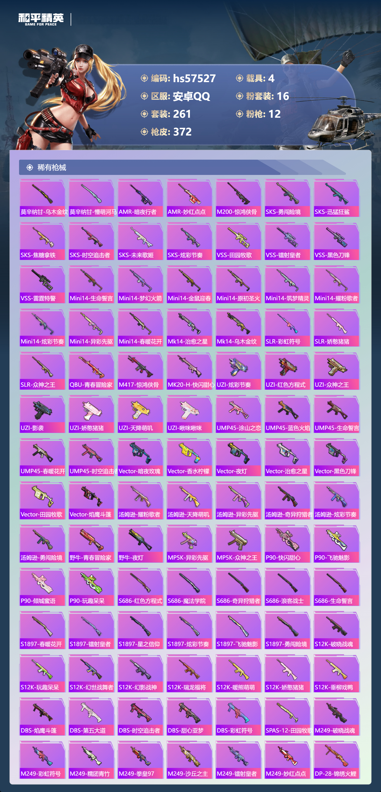 hs57527 安卓手q-19王牌印记-1红装-16粉装-12特效呛-4载具-热力值-261套装-372呛皮-6卓越印记-3传奇印记【1红装】沙丘之主-图卡盟/1级【16粉装】套装-金丰海韵角色-洛天依套装-蝶舞迷情套装-梦幻火箭套装-星穹咏叹调角色-千金淑猫套装-莲影清波角色-荧海星豚套装-智能音符套装-甜梦小狐套装-极意拳锋角色-冷漠罗丽角色-小叽联名款