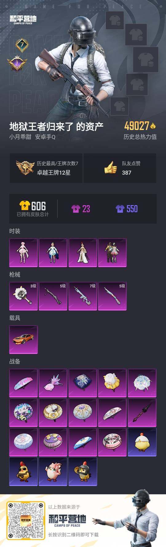 [15739454]安卓 手q-4粉装-4特效呛-1载具-2粉色飞行器-49027热力值-7王牌印记-119套装-160呛皮 【热门品类】:套装-龟仙人 【粉色载具】:天马凌跃(星芒橙) 【粉色套装】:粉装-蝶舞迷情,角色-洛天依,角色-萨利娅,角色-奇迹舞步 美雪 【粉色呛皮等级】:kar98k-巳巳如意五级,mk12-雪月幻音七级,dp-28-豹影疾电五级,平底锅-喜羊羊与灰太狼三级 【粉色呛皮】:kar98k-巳巳如意,mk12-雪月幻音,dp-28-豹影疾电,平底锅-喜羊羊与灰太狼 【粉色飞行器】:夜幕颂歌飞行器 【粉色降落伞】:梦幻火箭降落伞,洛神天依降落伞,灵感创作师降落伞,未来歌姬降落伞,萌物绒绒降落伞,精灵梦叶罗丽降落伞,智耀战神降落伞,幻彩电音降落伞,时光之吻降落伞,无垠阁降落伞,喜羊羊与灰太狼降落伞 【稀有套装】:套装-龟仙人,套装-巳巳如意,套装-燕燕于飞,套装-鱼渊荷华,套装-紫幽梦,套装-蓝冰羽,套装-云朵鹅,套装-雪绒豹,角色-乐音,套装-朱霞炽焰,套装-凌霄紫焰,套装-擎苍青焰,玩偶服-喜羊羊,角色-紫俏灵猫,套装-炫彩糖果 【稀有呛皮】:akm-影袭,akm-破晓战魂,akm-胡桃卫兵,akm-龙的传人,m16a4-最终圣卫者,scar-l-夜灯,scar-l-炫彩节奏,scar-l-玉兔迎春,scar-l-冷漠罗丽,m416-糯团青竹,m416-红色方程式,m416-蓝色火焰,groza-异彩先驱,groza-彩虹符号,groza-影袭,groza-恐龙拽拽,aug-天降萌叽,aug-耀粉歌者,q-彩虹符号,m762-天降萌叽,m762-彩虹符号,m762-云朵鹅,mk47-洛神天依,g36c-炙焰牛王,ac-val-天降萌叽,ac-val-快闪甜心,ac-val-闲梦青缨,蜜獾-天降萌叽,蜜獾-娇憨猪猪,arx-凌霄紫焰,uzi-啾咪啾咪,uzi-天降萌叽,uzi-娇憨猪猪,uzi-影袭,ump45-生命誓言,ump45-蓝色火焰,ump45-圣穹绘梦,vect-彩虹符号,汤姆逊-天降萌叽,汤姆逊-耀粉歌者,js9-凌霄紫焰,p90-快闪甜心,p90-巳巳如意,kar98k-彩虹符号,kar98k-王子的夏天,m24-影袭,awm-圣堂之誓,awm-音爆索尼克,sks-炫彩节奏,mini14-旋转彩虹,mini14-耀粉歌者