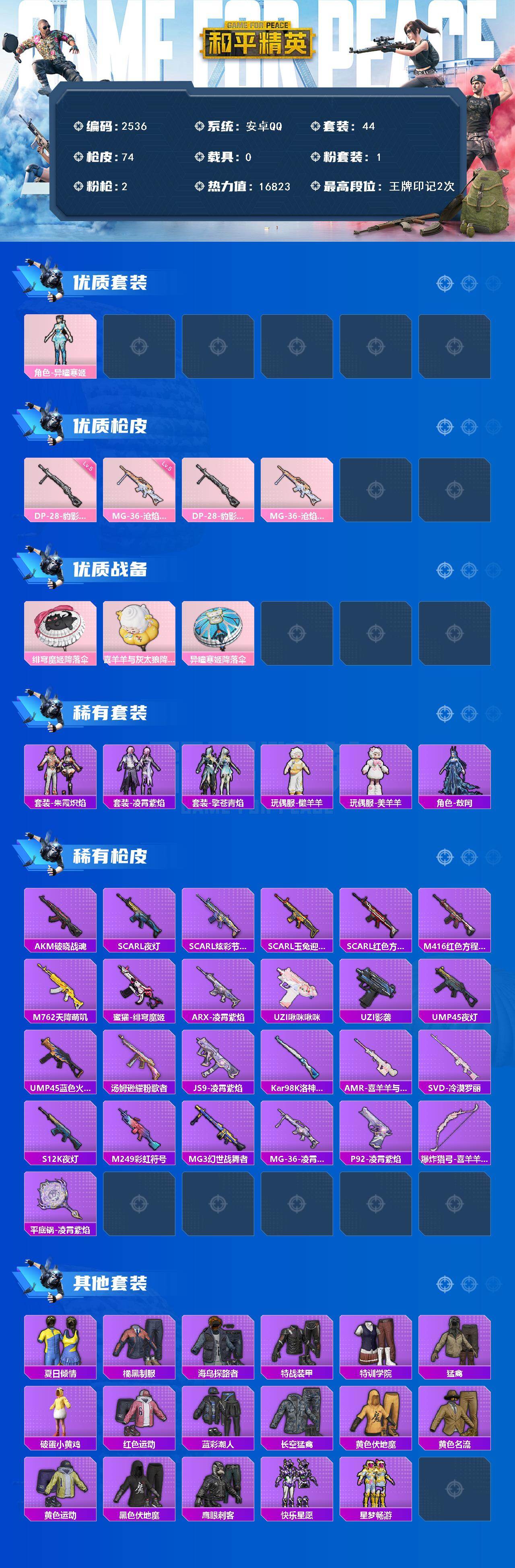0载具-44套装-74呛皮-44套装/呛械2/装备77/战备42/王牌印记2/热力值16823/五级dp-28-豹影疾电/五级mg-36-沧焰双生/角色-异瞳寒姬/dp-28-豹影疾电/mg-36-沧焰双生/绯穹魔姬降落伞/喜羊羊与灰太狼降落伞/异瞳寒姬降落伞/炫彩糖果降落伞/套装-雪国风尚/套装-朱霞炽焰/套装-凌霄紫焰/套装-擎苍青焰/玩偶服-懒羊羊/玩偶服-美羊羊/角色-敖闰/套装-炫彩糖果/aug-冰晶雪宝/ak