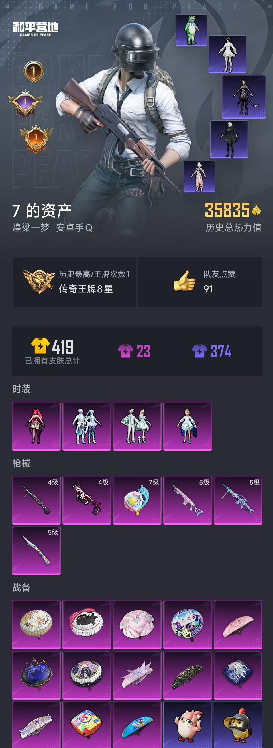 【和平精英】【lyhp19353】地铁满天赋 4粉装6特效呛 洛天依 绯红魔姬 满级手蕾 4粉装,6特效呛,0载具,历史最高段位:传奇王牌8星 王牌印记1次 热力值:35835,77套装,122呛械,145装备,62战备;套装:角色-洛天依,角色-绯穹魔姬,套装-雪月幻音,套装-幻彩电音,套装-特训学院,套装-竞技名士,套装-湖蓝色名流,套装-猛禽,套装-长空猛禽,套装-魅力单车,套装-破晓战魂,套装-滨海厨神,套装-龙魂突击队,套装-元素星魂,套装-极速红龙,套装-破蛋小黄鸡,套装-淡雅花蕊,套装-霓虹街区,套装-战术大师,套装-耀粉歌者,套装-热情海星,套装-纯真浪花,套装-天籁歌者,套装-星梦畅游,套装-光之冒险,套装-绯格组合,套装-ss23特训,套装-香榭午后,套装-王牌教练,套装-柠萌假日,套装-ss24特训,套装-ss25特训,套装-惊鸿侠骨,套装-锦衣飞扬,角色-2b战斗服款,角色-2p战斗服款,套装-龙的传人,套装-冰河战士,套装-ss26特训,套装-快闪甜心,套装-春光漫游,套装-漫游都市,套装-空岛之星,套装-ss28特训,套装暗影刺翼,玩偶服-卖崽青蛙,角色-银尘,套装-海盐绵绵冰,套装-创世·追猎,角色-无面战甲,套装-先驱飞行员,角色-俏兔智灵,角色-夜瞳黯灵,角色-绛羽幽主,套装-ss31特训,套装-鱼渊荷华,套装-燕燕于飞,套装-智谋强哥,套装-ss33特训,套装-云朵鹅,套装-巳巳如意,套装-ss32特训,套装-彩虹兔,套装-顶瓜瓜,套装-雪绒豹,角色-蛇蝎美人,套装-极速光影,角色-灵公主,套装-霓虹热舞,套装-元气之梦,套装-ss34特训,套装-擎苍青焰,套装-朱霞炽焰,套装-游乐,套装-凌霄紫焰,套装-薄荷星砂,套装-ss35特训;呛皮:m416-糯团青竹,m416-璀璨流光,m762-天降萌叽,m762-云朵鹅,akm-破晓战魂,akm-春暖花开,akm-涂鸦街区,akm-龙的传人,蜜獾-天降萌叽,蜜獾-精灵梦叶罗丽,蜜獾-绯穹魔姬,arx-凌霄紫焰,q-彩虹符号,q-纯真浪花,groza-春暖花开,groza-2b战斗服款,groza-无面战甲,ac-val-乌木金纹,ac-val-快闪甜心,g36c-蛇蝎美人,scar-l-夜灯,scar-l-海盐豹豹,famas-突变脉冲,famas-乌木金纹,aug-耀粉歌者,m200-惊鸿侠骨,m200-乌木金纹,win94-拳皇·狂花道,5级kar98k-巳巳如意,kar98k-星穹咏叹调,莫辛纳甘-乌木金纹,amr-鸡智如我,amr-乌木金纹,m24-幻彩电音,svd-冷漠罗丽,svd-云朵鹅,awm-天降萌叽,awm-纯真浪花,5级mk14-甜梦熊击,mk14-冰河战士,mk14-薄荷星砂,mk14-紫晶流影,mk20-h-莲影清波,mk20-h-快闪甜心,mk20-h-蛇蝎美人,mk20-h-乌木金纹,vss-香桃花海,m417-惊鸿侠骨,m417-玩趣呆呆,slr-霓彩脉冲,mini14-绯穹魔姬,sks-炫彩节奏,汤姆逊-天降萌叽,汤姆逊-纯真浪花,ump45-蓝色火焰,ump45-生命誓言,ump45-春暖花开,uzi-天降萌叽,uzi-冰河战士,4级vect-绯穹魔姬,vect-突变脉冲,vect-创世·救赎,vect-燕燕于飞,p90-快闪甜心,p90-巳巳如意,p90-乌木金纹,野牛-燕燕于飞,野牛-魔童闹海 敖闰,aks-74u-鬼刀,aks-74u-鸡智如我,aks-74u-乌木金纹,mp5k-乌木金纹,js9-凌霄紫焰,dbs-彩虹符号,dbs-圣堂之誓,dbs-创世·救赎,dbs-幻彩电音,dbs-荧海星豚,dbs-乌木金纹,spas-12-燕燕于飞,spas-12-云朵鹅,s12k-玩趣呆呆,aa12-g-炫光之旅,aa12-g-纯真浪花,s686-巳巳如意,m249-破晓战魂,m249-糯团青竹,m249-无面战甲,m249-绯穹魔姬,mg3-乌木金纹,mg3-第五大道,mg3-惊鸿侠骨,4级dp-28-豹影疾电,5级mg-36-幻彩电音,mg-36-凌霄紫焰,电击呛-喜羊羊与灰太狼,沙墨之鹦-快闪甜心,沙墨之鹦-云朵鹅,r45-幻彩电音,p1911-无面战甲,蝎式手呛-燕燕于飞,蝎式手呛-蛇蝎美人,p92-凌霄紫焰,短管霰弹2b战斗服款,tmp-9-未来歌姬,平底锅-惊鸿侠骨,平底锅-快闪甜心,平底锅-空岛之星,平底锅-花傲天,平底锅-纯真浪花,平底锅-凌霄紫焰,大砍刀-云朵鹅,大砍刀-咒蚀之裁,十子怒-燕燕于飞,十子怒-异域银装,盐雾蛋-咒蚀之裁,盐雾蛋-冰氧夏日,7级破片手留单-美味星星糖,破片手留单-呆爆全场,破片手留单-拽到爆炸,破片手留单-巳巳如意,爆炸猎弓-惊鸿侠骨; 详情看图