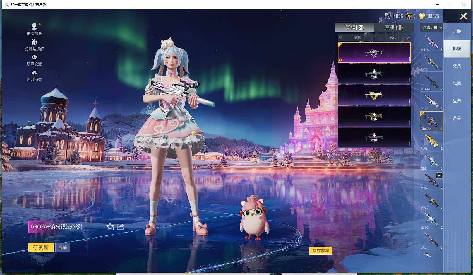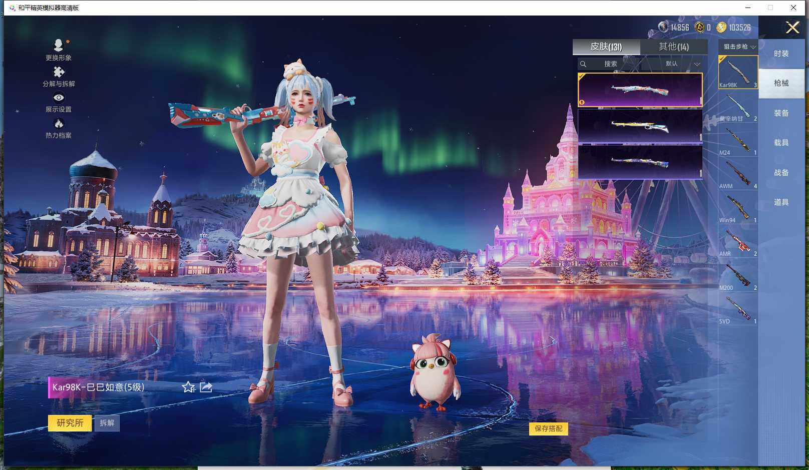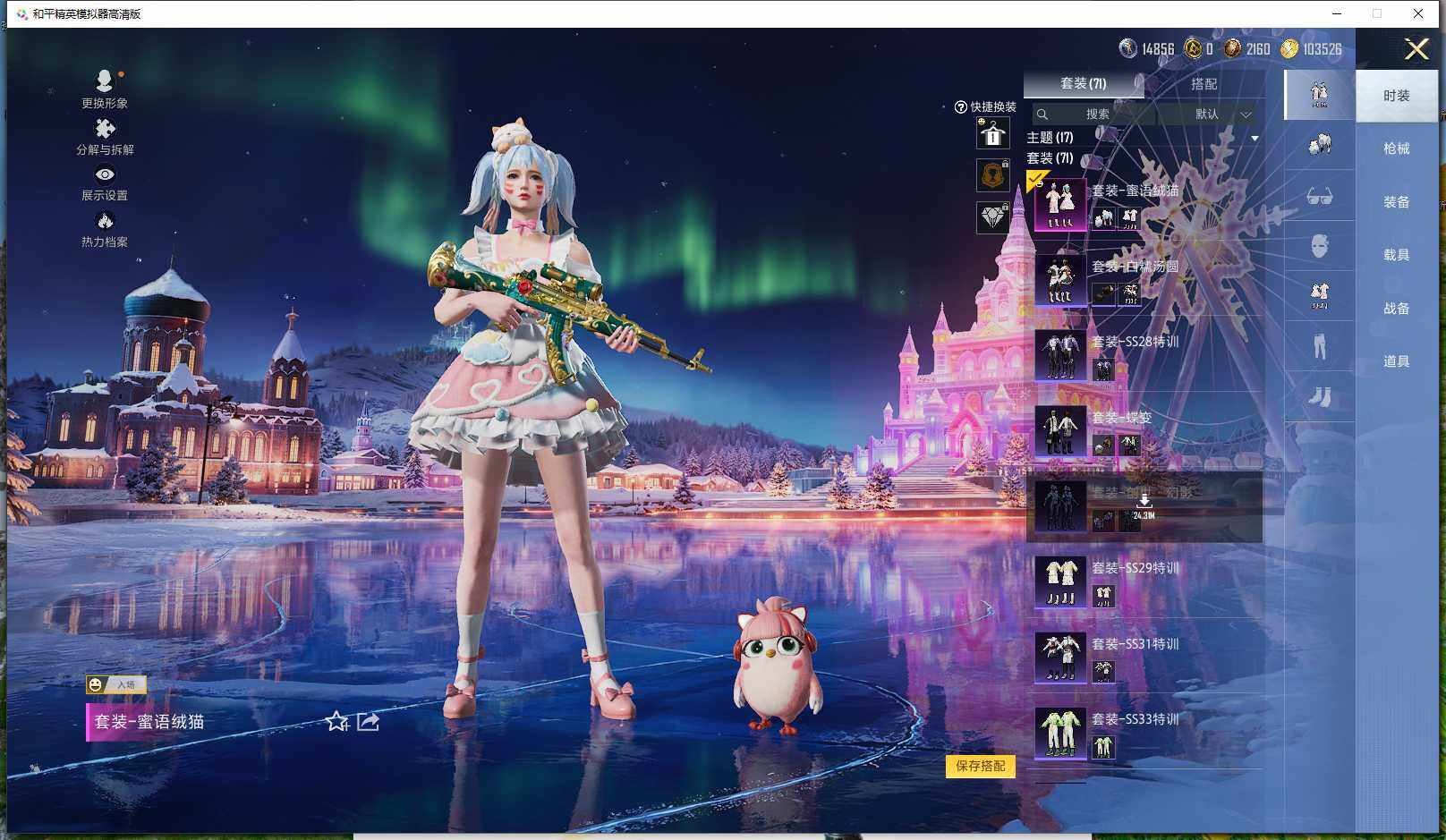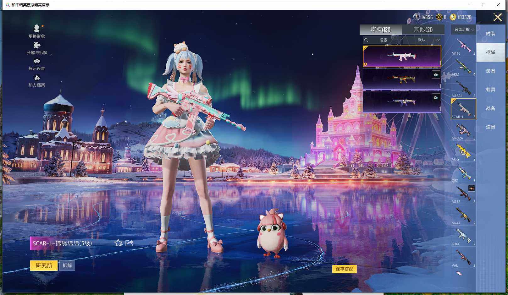 0载具-261套装-131呛皮-实名: 可修改 时装数: 71 呛械数: 131 战备数: 82 热门装扮: 蜜语绒猫 稀有呛皮: 五级m416-电玩时刻五级scar-l-锦绣绵绵五级akm-绿萝繁花五级spas-12-音爆索尼克五级groza-镜光银凌五级kar98k-巳巳如意