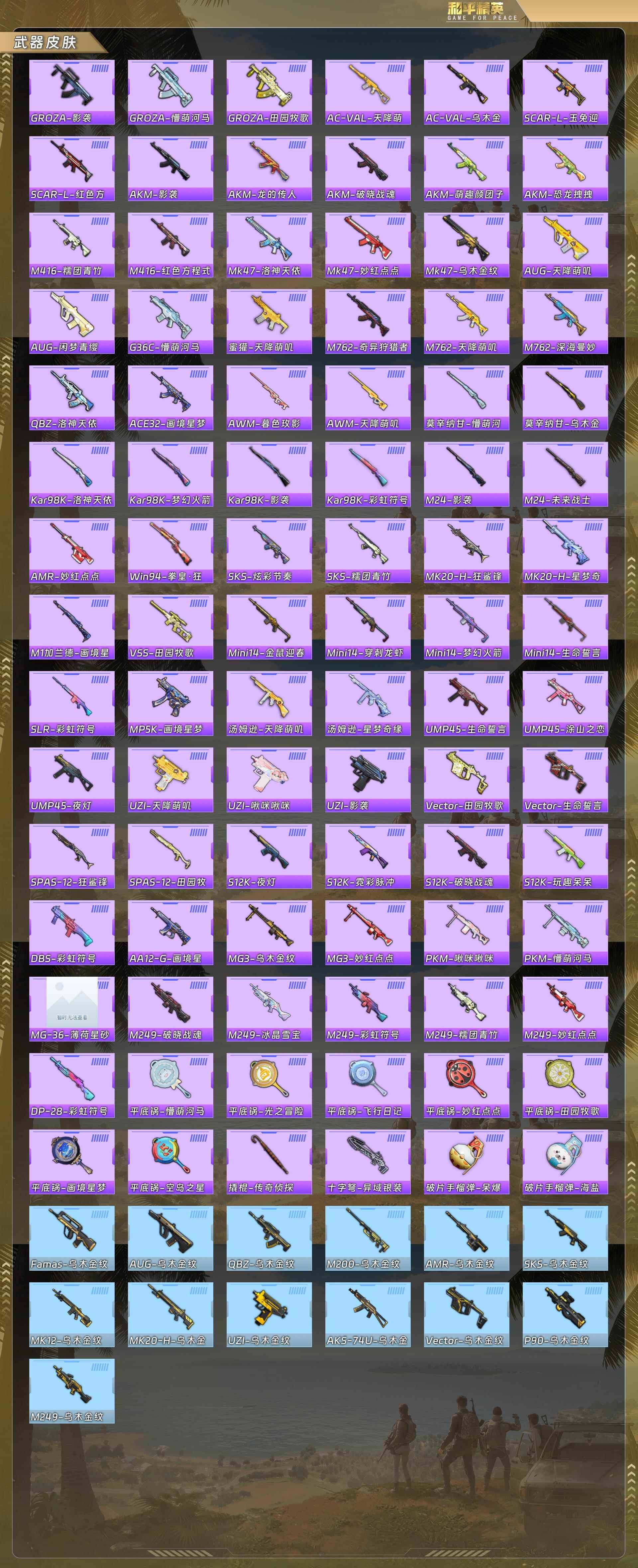身法号-玛莎拉蒂幻星粉[5级]/紫螳螂/第五大道/深海小丑鱼/都市猎人/浪漫天命/兔兔白日梦/奇迹天团/粉雾星云/梦幻火箭/苍蓝魅影/洛天依/光明术士/震天雷神/m416-五爪金龙[7级]/akm-梦之光华[4级]/dp-28-豹影疾电[5级]/aks-74u-森灵之息[4级]/合金龙骨(绿)/兰博基尼aventad svj翡翠绿没战神框 hp5124 【红色载具】:玛莎拉蒂quattropte(幻星粉)五级 【热门品类】:粉装-梦幻火箭,套装-浪漫天命,套装-都市猎人,套装-深海小丑鱼,套装-龟仙人 【粉色套装】:粉装-梦幻火箭,粉装-苍蓝魅影,角色-洛天依,角色-初号机款机体服,粉装-光明术士,粉装-第五大道,角色-震天雷神 【粉色呛皮等级】:akm-梦之光华四级,m416-五爪金龙七级,aks-74u-森灵之息四级,dp-28-豹影疾电五级 【粉色载具】:兰博基尼aventad svj(翡翠绿),玛莎拉蒂quattropte(幻星粉),合金龙骨(绿) 【粉色呛皮】:akm-梦之光华,m416-五爪金龙,aks-74u-森灵之息,dp-28-豹影疾电 【粉色降落伞】:银河战甲降落伞,梦幻火箭降落伞,洛神天依降落伞,第五大道降落伞,莲影清波降落伞,星梦奇缘降落伞,樱桃泡泡降落伞 【稀有套装】:套装-龟仙人,套装-雪国风尚,套装-霓虹热舞,套装-书海巡游,套装-画境星梦,套装-琴音绮想 【稀有呛皮】:akm-影袭,akm-恐龙拽拽,akm-破晓战魂,akm-萌趣颜团子,akm-龙的传人,scar-l-玉兔迎春,scar-l-红色方程式,m416-糯团青竹,m416-红色方程式,groza-影袭,groza-懵萌河马,groza-田园牧歌,aug-天降萌叽,aug-闲梦青缨,q-洛神天依,m762-天降萌叽,m762-奇异狩猎者,m762-深海曼妙,mk47-妙红点点,mk47-洛神天依,g36c-懵萌河马,ac-val-天降萌叽,蜜獾-天降萌叽,ace32-画境星梦,uzi-啾咪啾咪,uzi-天降萌叽,uzi-影袭,ump45-夜灯,ump45-涂山之恋,ump45-生命誓言,vect-生命誓言,vect-田园牧歌,汤姆逊-天降萌叽,mp5k-画境星梦,kar98k-彩虹符号,kar98k-影袭,kar98k-梦幻火箭,kar98k-洛神天依,m24-影袭,m24-未来战士,awm-暮色玫影,sks-炫彩节奏,sks-糯团青竹,vss-田园牧歌,mini14-梦幻火箭,mini14-生命誓言,mini14-穿刺龙虾,mini14-金鼠迎春,slr-彩虹符号,莫辛纳甘-懵萌河马,amr-妙红点点,m1加兰德-画境星梦,s12k-玩趣呆呆,s12k-破晓战魂,s12k-夜灯,dbs-彩虹符号,aa12-g-画境星梦,spas-12-田园牧歌,m249-妙红点点,m249-彩虹符号,m249-破晓战魂,m249-糯团青竹,dp-28-彩虹符号,mg3-妙红点点,pkm-懵萌河马,平底锅-画境星梦 【其他套装】:套装-ss3特训,套装-ss6特训,套装-ss9特训,套装-ss14特训,套装-ss22特训,套装-ss24特训,套装-ss25特训,套装-ss26特训,套装-传奇侦探,套装-光之冒险,套装-冷焰舞者,套装-北国孤狼,套装-奇迹天团,套装-幻影武者,套装-星光纪元,套装-柠萌假日,套装-浪漫天命,套装-海滨突袭者,套装-涂山之恋,套装-王牌教练,套装-疯狂小兔子,套装-白色伏地魔,套装-破蛋小黄鸡,套装-空岛之星,套装-竞技勇士朋克,套装-竞技名士,套装-竞技达人朋克,套装-绯格组合,套装-缤纷果语,套装-萌黄之夏,套装-蓝色运动,套装-跃动心情,套装-迎春赐吉,套装-长空猛禽,套装-霓虹街区,套装-青春校园,套装-飞行日记,套装-骑行爱好者,套装-黑色伏地魔,套装-龙的传人,套装-龟仙人,套装-鹰眼刺客,套装-冰冻风暴,套装-漫步者,套装-深海小丑鱼,套装-夜莺强袭者,套装-雪山精英,套装-诡谋托雷基亚,套装-电音精灵,套装-天籁歌者,角色-明日香款战斗服,角色-真嗣款战斗服,套装-豚鼠丹丹,套装-兔兔白日梦,套装-俏皮奶喵,套装-田园牧歌,套装-轻风白浪,套装-和煦暖阳,套装-妙红点点,套装-幻彩翩翩,套装-龙舌兰冰茶,套装-懵萌河马,套装-神气柴柴,角色-粉雾星云,角色-极地流光 【稀有头盔】:梦幻火箭头盔3级,梦幻火箭头盔2级,梦幻火箭头盔1级 【稀有背包】:梦幻火箭背包3级,梦幻火箭背包2级,梦幻火箭背包1级,深海小丑鱼背包3级 【营地id】:932372046
