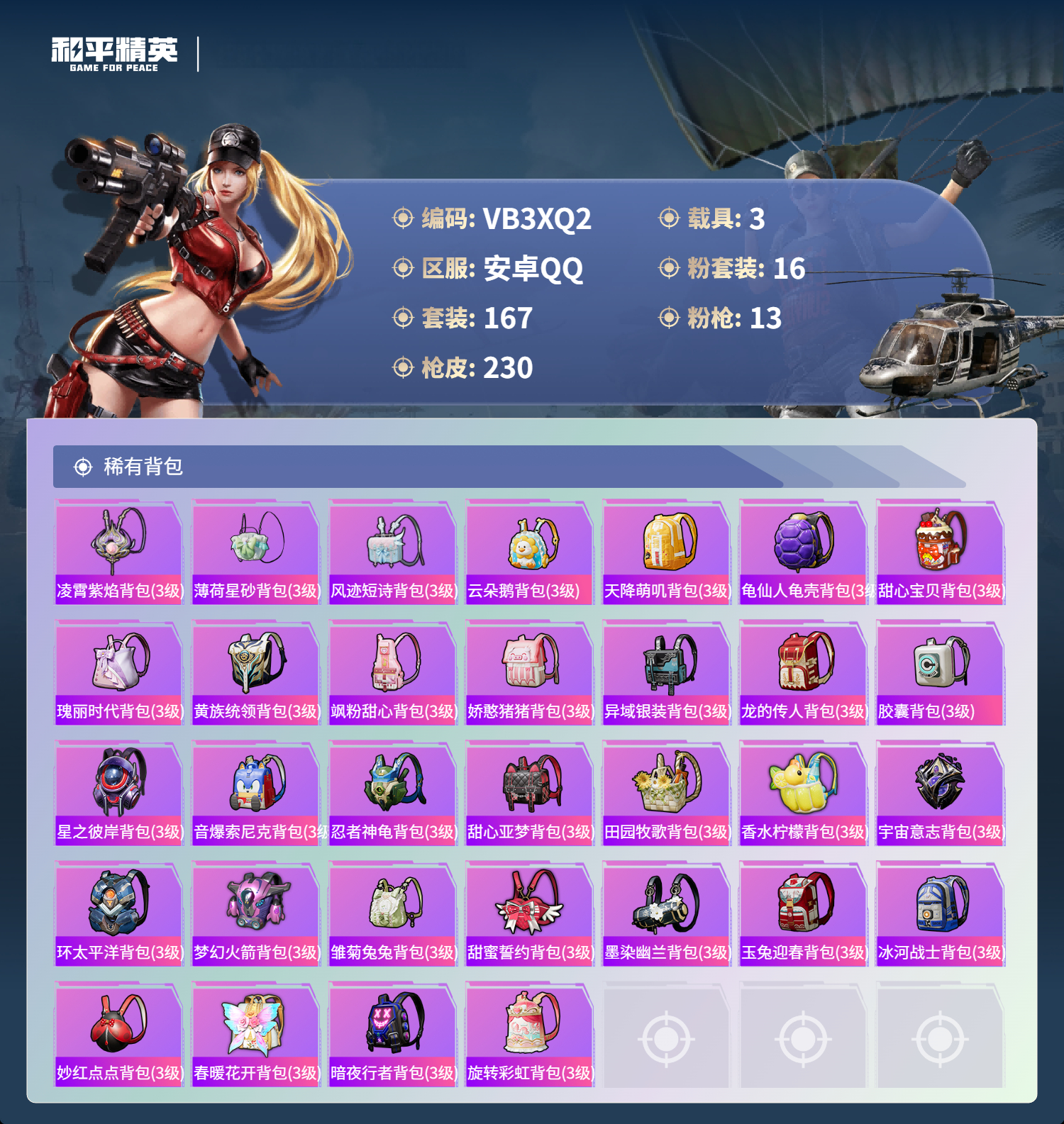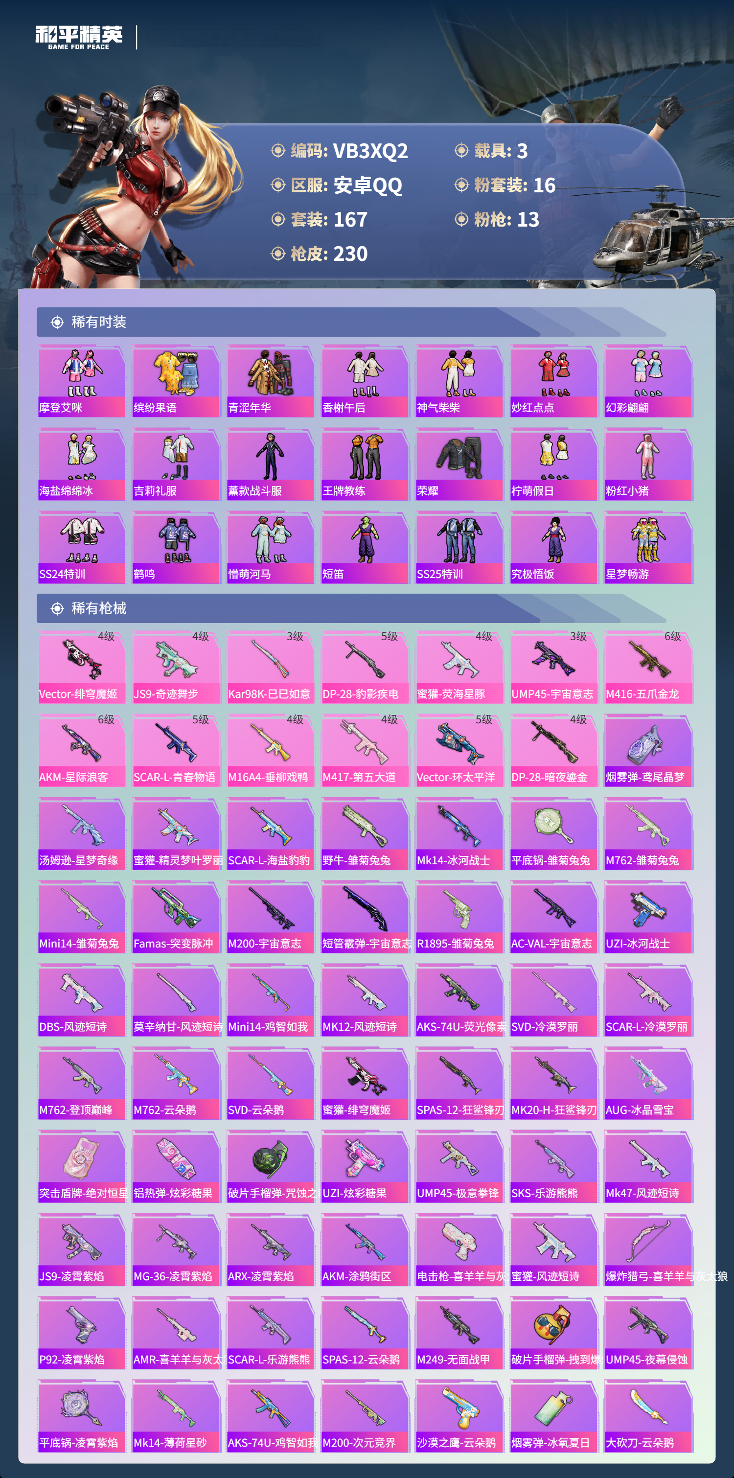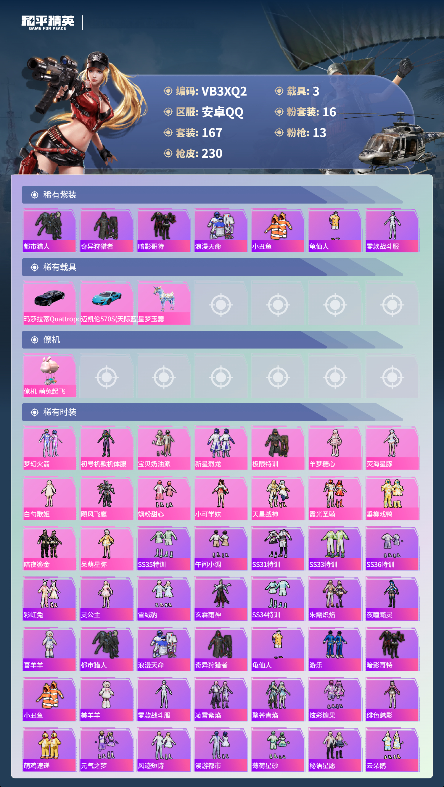 3载具-167套装-230呛皮-精氪号-极限特训-螳螂-火箭少女-都市-番茄-浪漫天命-红眼罩-战队服-星空马-16粉3特3车-地铁满天赋