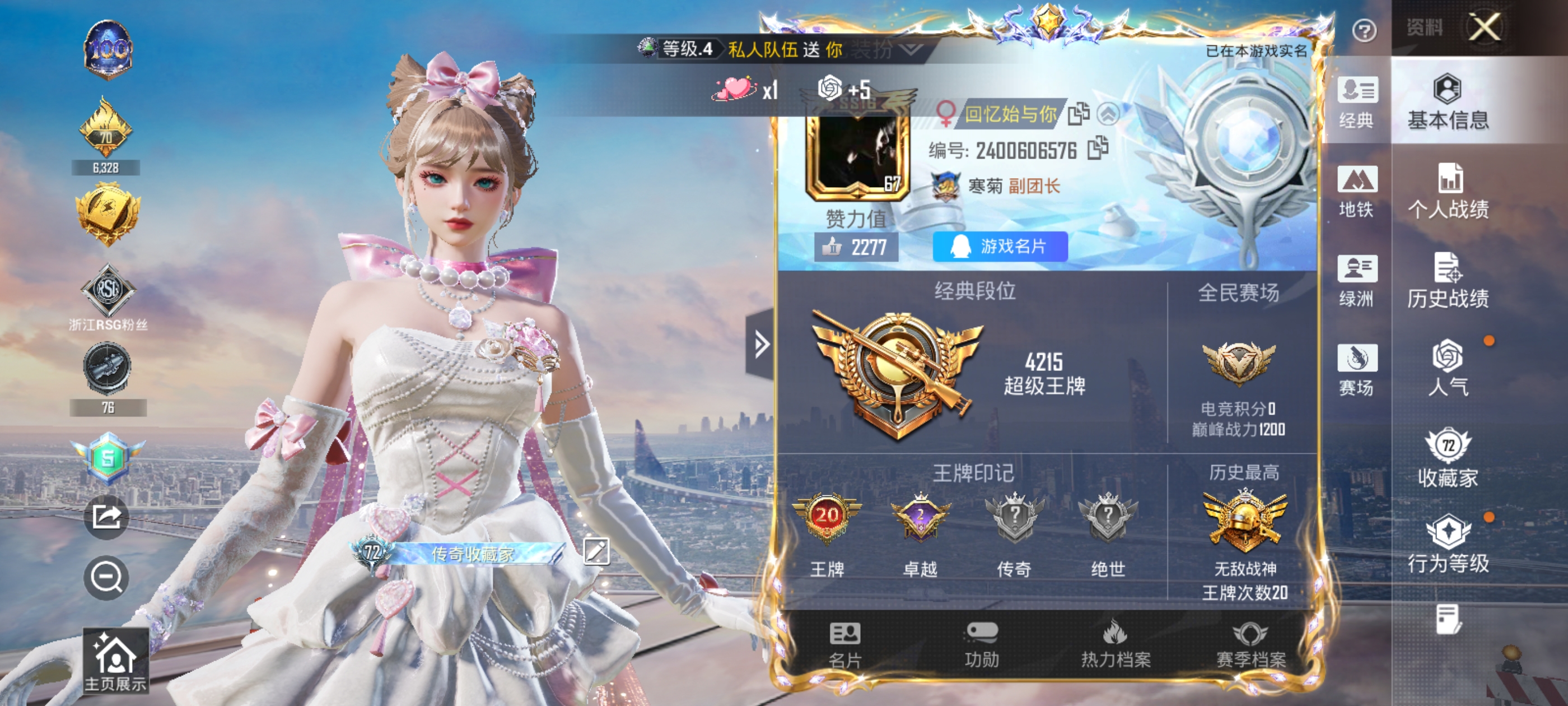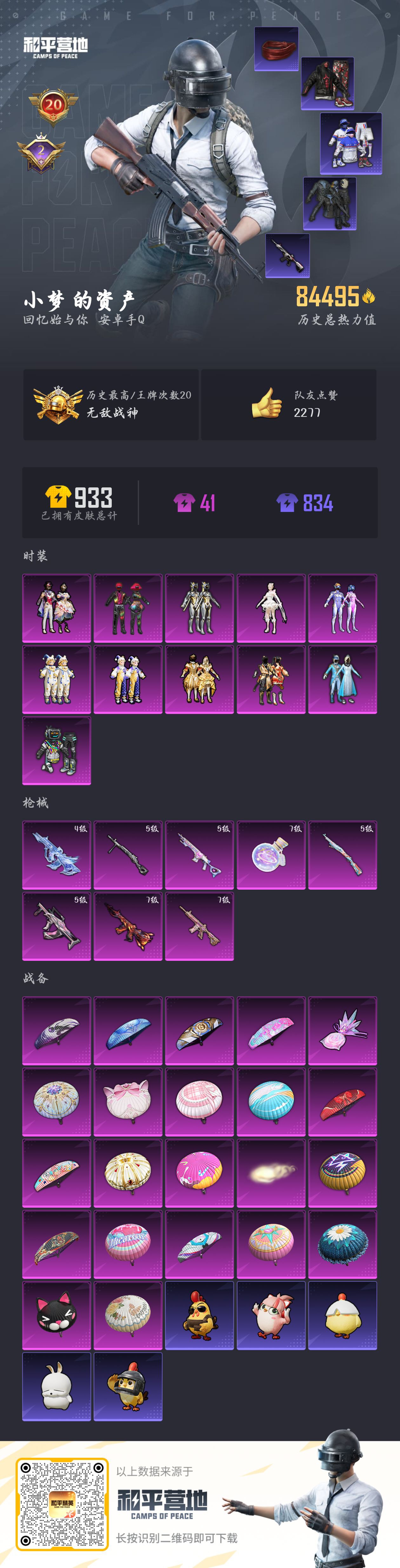 【和平精英】【txhp6289】11粉装,8特效呛,0载具,历史最高段位:无敌战神 王牌印记20次 热力值:84495,182套装,286呛械,292装备,144战备;套装:套装-快乐主宰,套装-雪国幻梦,套装-梦幻火箭,套装-放客神游,套装-绚金战神,套装-葫芦兄弟,套装-精灵娃娃,套装-酣梦娃娃,套装-绚金瑰梦,角色-千金淑猫,套装-星穹咏叹调,套装-白色伏地魔,套装-黑色伏地魔,套装-竞技名士,套装-猛禽,套装-长空猛禽,套装-沙漠雄狮,套装-漫步者,套装-竞技勇士朋克,套装-海岛探路者,套装-雨林探路者,套装-赤蝎幽灵,套装-都市猎人,套装-浪漫天命,套装-特战装甲,套装-缤纷假日,套装-特殊使命,套装-灰色格斗者,套装-甜蜜告白,套装-春日漫步,套装-龙腾端午,套装-鹰眼刺客,套装-冰冻风暴,套装-幻影武者,套装-千禧之恋,套装-魅力单车,套装-绮丽涂鸦,套装-坚韧舞者,套装-竞技达人朋克,套装-野性战心,套装-野性战魂,套装-金羽特工,套装-狂沙舞者,套装-沙漠兵团,套装-丛林猎人,套装-雪山精英,套装-酷潮明星,套装-传奇侦探,套装-金耀舞者,套装-暗影哥特,套装-夏日倾情,套装-甜蜜熊情侣,套装-缤纷果语,套装-冰川特警,套装-格斗先锋,套装-海上生明月,套装-东方飞龙,套装-萌神柯基,套装-破蛋小黄鸡,套装-舞夜骑士,套装-深蓝冒险家,套装-迷域探索者,套装-机械英豪,套装-机械征服者,套装-浪漫波比,套装-北国孤狼,套装-ss6特训,套装-拳皇97草薙京,套装-炽焰拳师,套装-格斗专家,套装-奇迹天团,套装-跃动心情,套装-ss7特训,套装-黑色刀锋,套装-核芯基因,套装-精神漫游,套装-鹤鸣,套装-霓虹街区,套装-五号元素,套装-清香五月粽,套装-ss10特训,套装-ss8特训,套装-众神之王,套装-智慧之神,套装-大橘为重,套装-白熊同盟,套装-萌黄之夏,套装-pel躁动竞梦者,套装-夏日音浪,套装-ss9特训,套装-风华少年志,套装-白月香洋装,套装-不夜海上花,套装-荷鲁斯之眼,套装-探宝勇士,套装-牛气满满,套装-白糯汤圆,套装-ss11特训,套装-青春冒险家,套装-潮流游乐家,套装-朱雀圣者,套装-原初圣火,套装-逆风勇士,套装-娴静芝兰,套装-萌趣颜团子,套装-特种颜团子,套装-战术大师,套装-ss12特训,套装-牛气冲天,套装-ss18特训,套装-镭射皇者,套装-银白舞王,套装-飞行日记,套装-ss13特训,套装-ss14特训,角色-赛罗奥特曼,套装-蝎王蛇后,套装-ss15特训,套装-rsg追光队服,套装-ss16特训,套装-暴风机械师,套装-时空追击者,套装-ss17特训,套装-瑞龙福将,套装-团圆交子,套装-冰爽风暴,套装-福星高照,套装-虎虎生威吉莉,套装-缤纷焰火,套装-异彩先驱,套装-霓虹极客,套装-绿翡凌光,套装-空投萌叽,套装-ss22特训,套装-田园牧歌,套装-轻风白浪,套装-熠彩粉晶,套装-ss23特训,套装-摩登艾咪,套装-妙红点点,套装-幻彩翩翩,套装-王牌教练,套装-柠萌假日,套装-云魄琉璃,角色-极地流光,角色-粉雾星云,套装-异域银装,角色-都市丽猫,套装-ss30特训,套装-青团波波,套装-糖糖葫芦,套装-小鸟芋圆,角色-馥郁金蕊,套装-ss31特训,套装-紫幽梦,套装-粉恋花,套装-ss33特训,套装-云朵鹅,套装-巳巳如意,套装-ss32特训,套装-彩虹兔,套装-青翼流星,套装-蓝冰羽,套装-顶瓜瓜,套装-雪绒豹,套装-狂鲨锋刃,套装-大橘大利,套装-星渊小夜曲,套装-炫彩糖果,套装-星影赞美诗,套装-元气之梦,套装-ss34特训,套装-擎苍青焰,套装-朱霞炽焰,套装-游乐,套装-凌霄紫焰,套装-薄荷星砂,套装-ss35特训,套装-琴音绮想,套装-画境星梦,套装-ss36特训,套装-萌鸡速递;呛皮:5级groza-镜光银凌,groza-影袭,groza-春暖花开,groza-黑色刀锋,groza-彩虹符号,groza-蓝莓炮弹,groza-异彩先驱,groza-田园牧歌,groza-荧海星豚,groza-乌木金纹,4级aug-星梦奇缘,aug-青春冒险家,aug-天降萌叽,aug-异域银装,aug-紫晶流影,famas-霓彩脉冲,famas-乌木金纹,7级m416-心之恋语,7级m416-风花雪月,m416-蓝色火焰,m416-绯红前夜,m416-红色方程式,m416-星际漫游,m416-罗小黑,m416-神秘黑猫,m416-糯团青竹,m416-绿野极光,m416-乌木金纹,q-神秘黑猫,q-原初圣火,q-彩虹符号,q-绚金瑰梦,q-乌木金纹,m16a4-星际漫游,m16a4-夜灯,m16a4-机械英豪,m16a4-乌木金纹,m762-绯红前夜,m762-拳皇97,m762-深海曼妙,m762-牛气冲天,m762-镭射皇者,m762-瑞龙福将,m762-暗夜鎏金,m762-天降萌叽,m762-云朵鹅,g36c-星际漫游,g36c-不夜海上花,g36c-时空追击者,g36c-暗夜玫瑰,g36c-星穹咏叹调,g36c-乌木金纹,arx-凌霄紫焰,akm-灼热熔岩,akm-生命誓言,akm-影袭,akm-玉龙,akm-冰凉西瓜,akm-破晓战魂,akm-霓虹街区,akm-涂鸦街区,akm-彩虹符号,akm-萌趣颜团子,akm-虎虎生威,akm-霓彩脉冲,akm-乌木金纹,mk47-青春冒险家,mk47-妙红点点,scar-l-黄金龙骨,scar-l-夜灯,scar-l-炫彩节奏,scar-l-乌木金纹,蜜獾-糖糖葫芦,蜜獾-鸡智如我,蜜獾-绿洲时空,蜜獾-乌木金纹,ace32-画境星梦,ace32-冰晶雪宝,5级kar98k-巳巳如意,kar98k-红色方程式,kar98k-影袭,kar98k-古堡领主,kar98k-梦幻火箭,kar98k-勇闯险境,kar98k-彩虹符号,kar98k-蓝莓炮弹,kar98k-星穹咏叹调,kar98k-乌木金纹,莫辛纳甘-乌木金纹,awm-不夜海上花,awm-乌木金纹,awm-绿洲时空,win94-机械英豪,win94-瑞龙福将,win94-乌木金纹,amr-妙红点点,amr-鸡智如我,amr-喜羊羊与灰太狼,m24-影袭,m24-众神之王,svd-云朵鹅,m200-乌木金纹,mini14-星际漫游,mini14-金鼠迎春,mini14-原初圣火,mini14-耀粉歌者,mini14-异彩先驱,mini14-甜心娃娃,mini14-乌木金纹,mk20-h-星梦奇缘,mk20-h-糖糖葫芦,mk20-h-狂鲨锋刃,sks-金玉无双,sks-迅猛狂鲨,sks-夜灯,sks-勇闯险境,sks-炫彩节奏,sks-时空追击者