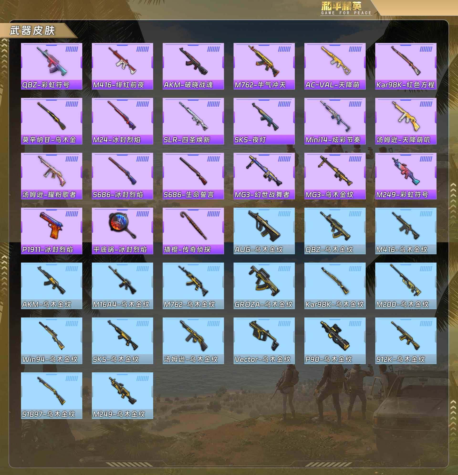 (1载具)玛莎拉蒂蓝没战神框hp5128-0粉色飞行器-14025热力值-1王牌印记-45套装-39呛皮 【粉色呛皮等级】:kar98k-巳巳如意一级 【粉色载具】:玛莎拉蒂ghibli(蓝) 【粉色呛皮】:kar98k-巳巳如意 【稀有呛皮】:akm-破晓战魂,m416-绯红前夜,q-彩虹符号,m762-牛气冲天,ac-val-天降萌叽,汤姆逊-天降萌叽,汤姆逊-耀粉歌者,kar98k-红色方程式,m24-冰封烈焰,sks-夜灯,mini14-炫彩节奏,slr-四圣焕新,s686-冰封烈焰,s686-生命誓言,m249-彩虹符号,mg3-幻世战舞者,p1911-冰封烈焰 【其他套装】:套装-ss2特训,套装-ss5特训,套装-ss6特训,套装-ss7特训,套装-ss9特训,套装-ss12特训,套装-ss14特训,套装-ss15特训,套装-ss18特训,套装-ss22特训,套装-丛林猎人,套装-传奇侦探,套装-决胜时刻,套装-北国孤狼,套装-战地督导,套装-橘黑制服,套装-灼焰舞者,套装-牛气冲天,套装-牛气满满,套装-猛禽,套装-甜蜜告白,套装-疯狂小兔子,套装-破蛋小黄鸡,套装-竞技勇士朋克,套装-竞技名士,套装-蓝色运动,套装-跃动心情,套装-迎春赐吉,套装-长空猛禽,套装-霓虹街区,套装-青涩时光,套装-魅力单车,套装-黄色伏地魔,套装-黄色运动,套装-黑色伏地魔,套装-龙的传人,套装-战地菁英,套装-夜莺强袭者,套装-凛冬战士,套装-雪山精英,套装-雪山征服者,套装-熔岩使者,套装-圣诞大吉 【稀有背包】:折纸暴龙背包1级,金风玉露背包2级,深海小丑鱼背包3级,神秘黑猫背包3级 【营地id】:944798233