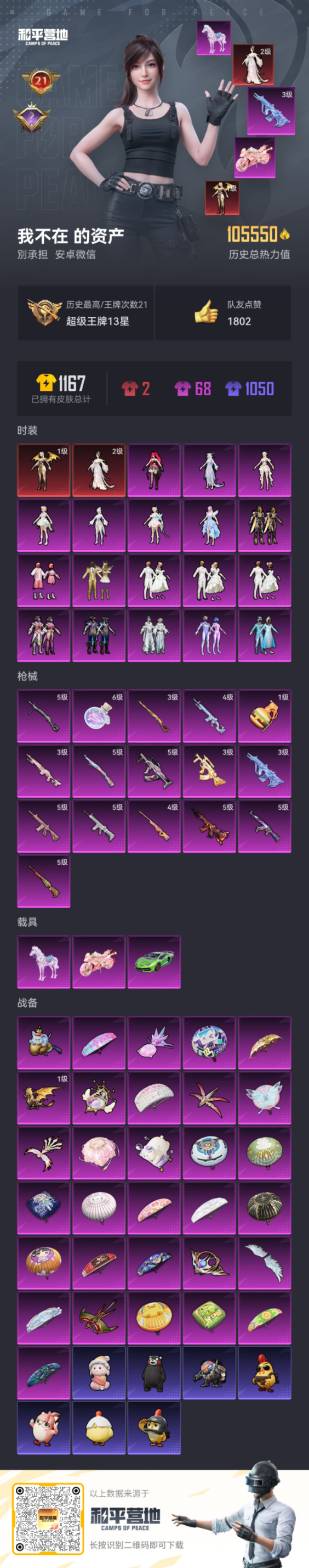 _2398903-3载具-199套装-319呛皮-瑞拉云鸾雪国aug星梦奇缘3级2红装3载具18粉装16特效呛12热门199套装319呛皮热力值21印记历史超级王牌13星【2红装】圣域龙灵-瑞拉1级盛世惊鸿-云鸾2级【3载具】兰博svj绿色晶梦灵驹盛世惊鸿摩托车【18粉装】梦幻火箭雪国幻梦女娲灵识绯穹魔姬彩虹独角兽星梦奇缘创世救赎飒粉甜心幻海仙踪金属狂野晶梦幻蝶翎光蝶翼碧穹智者挚爱序曲纯珍童话心之回忆银红美神相思残雪【16特效呛】scar-l-纯梦嫁纱5级m416-心之恋语5级kar98k-圣域龙灵3级kar98k-巳巳如意5级dp-28-豹影疾电5级aug-星梦奇缘3级awm-花间之火4级mk14-盛世惊鸿3级mk12-雪月幻音4级groza-镜光银凌5级groza-精灵之光3级akm-星际浪客5级m24-翩跹演武5级m416-风花雪月5级破片手留单-瓶中星球6级破片手留单-热量炸弹1级【12热门】龟仙人晶辉守护软萌银虎兔兔白日梦激萌罗小黑暗影哥特赛罗奥特曼团圆交子瑞龙福将破蛋小黄鸡军刀雅典娜m762-瑞龙福将【3飞行器】相思残雪飞行器星际浪客飞行器翩跹演武飞行器【3头盔】雪国精灵头盔百万伏特头盔花间之火头盔【1背包】雪国精灵背包营地id: