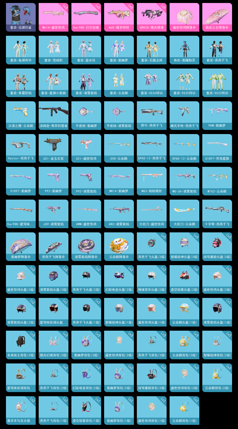 【和平精英】【lyhp18862】5特效呛 3级妹控盛世惊鸿 满级aug 满级狗杂(地铁满天赋) 0粉装,5特效呛,0载具,历史最高段位:荣耀皇冠ⅲ 王牌印记-1次 热力值:17161,34套装,58呛械,74装备,23战备;套装:套装-白色伏地魔,套装-竞技名士,套装-海岛探路者,套装-旭日情侣,套装-魅力单车,套装-迅捷狂鲨,套装-缤纷果语,套装-破蛋小黄鸡,套装-疯狂小兔子,套装-战术大师,套装-漫游都市,角色-夜瞳黯灵,套装-ss31特训,套装-鱼渊荷华,套装-石蕴玉辉,套装-燕燕于飞,套装-智谋强哥,角色-风玲,套装-紫幽梦,套装-ss33特训,套装-云朵鹅,套装-巳巳如意,套装-ss32特训,套装-蓝冰羽,套装-雪绒豹,套装-大橘大利,套装-星渊小夜曲,套装-ss34特训,套装-朱霞炽焰,套装-凌霄紫焰,套装-薄荷星砂,套装-ss35特训,套装-阳光菠萝,套装-ss36特训;呛皮:arx-凌霄紫焰,scar-l-玉兔迎春,5级aug-暖羊咩咩,aug-紫晶流影,5级groza-镜光银凌,m416-红色方程式,famas-乌木金纹,m762-云朵鹅,蜜獾-乌木金纹,m200-乌木金纹,5级kar98k-巳巳如意,kar98k-星穹咏叹调,awm-盛世惊鸿,m24-蓝晶绮麟,amr-鸡智如我,svd-云朵鹅,sks-炫彩节奏,sks-糯团青竹,3级mk14-盛世惊鸿,mk14-紫幽梦,mk14-薄荷星砂,mk12-乌木金纹,汤姆逊-奇异狩猎者,汤姆逊-天降萌叽,js9-凌霄紫焰,p90-巳巳如意,aks-74u-鸡智如我,aks-74u-乌木金纹,uzi-金玉无双,uzi-盛世惊鸿,vect-燕燕于飞,野牛-燕燕于飞,s686-巳巳如意,s1897-紫幽梦,s1897-荧海星豚,spas-12-燕燕于飞,spas-12-云朵鹅,spas-12-乌木金纹,pkm-啾咪啾咪,pkm-紫幽梦,mg-36-凌霄紫焰,mg3-幻世战舞者,mg3-桃粉嫣然,mg3-霓彩脉冲,5级dp-28-豹影疾电,p92-紫幽梦,p92-凌霄紫焰,短管霰弹-竹节火铳,蝎式手呛-燕燕于飞,沙墨之鹦-云朵鹅,大砍刀-盛世惊鸿,大砍刀-云朵鹅,平底锅-许七安,平底锅-紫幽梦,平底锅-凌霄紫焰,十子怒-燕燕于飞,破片手留单-拽到爆炸,破片手留单-巳巳如意;降落伞:凤舞九天飞行器,破刃行动尾迹; 详情看图