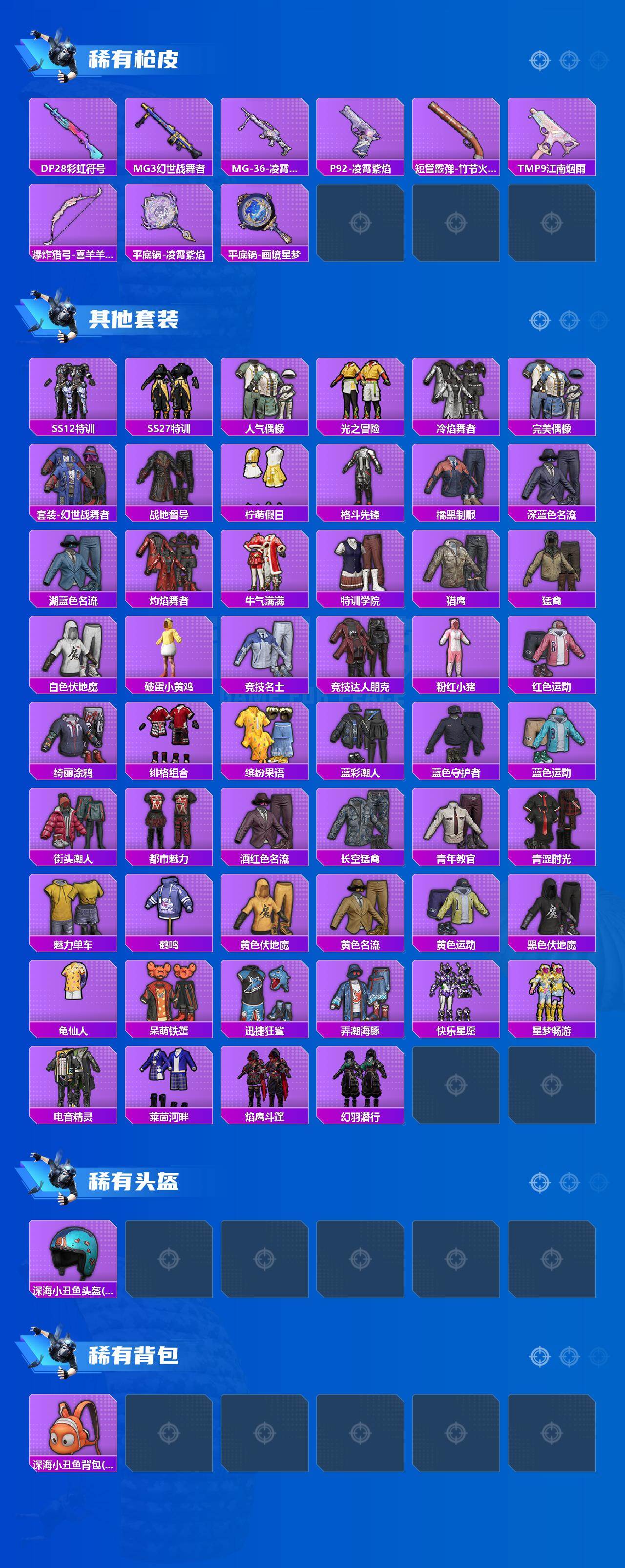 安卓q-4王牌印记-4粉装-5特效呛-102呛皮-91套装-4载具 【4载具】 保时捷cayenne橄榄绿 保时捷918 sper液态银 冰绡玉鳞 保时捷panamera星辰紫 【4粉装】 异瞳寒姬 冰魄 羊梦糖心 千金淑猫 【5特效呛】 蜜獾-异瞳寒姬 dp-28-豹影疾电 kar98k-巳巳如意 mg-36-沧焰双生 aug-星之彼岸 【6飞行器】 鸡智如