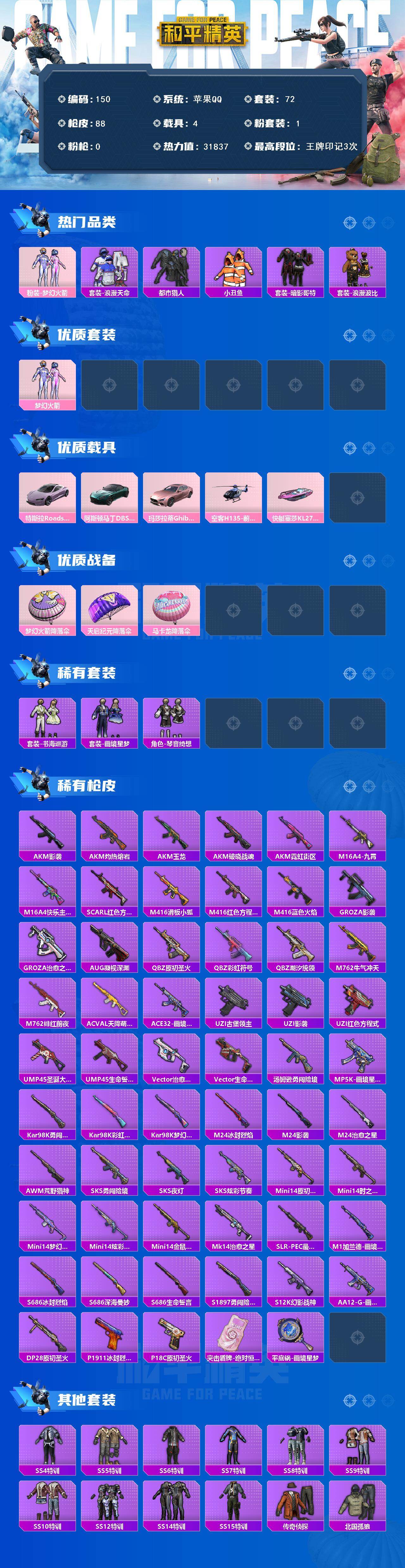 【梦幻火箭 暗影哥特 都市猎人】苹果q-3王牌印记-1粉装-88呛皮-72套装-4载具 【4载具】 玛莎拉蒂粉色 阿斯顿马丁s绿色 特斯拉r沁心粉 塞莎霓虹粉 【1粉装】 梦幻火箭 【2飞行器】 粉色滑翔尾迹 勇闯险境飞行服 【7头盔】 天启纪元头盔3级 冰封烈焰头盔3级 勇闯险境头盔3级 时之沙漏头盔3级 画境星梦头盔3级 雪国风尚头盔3级 原初圣火