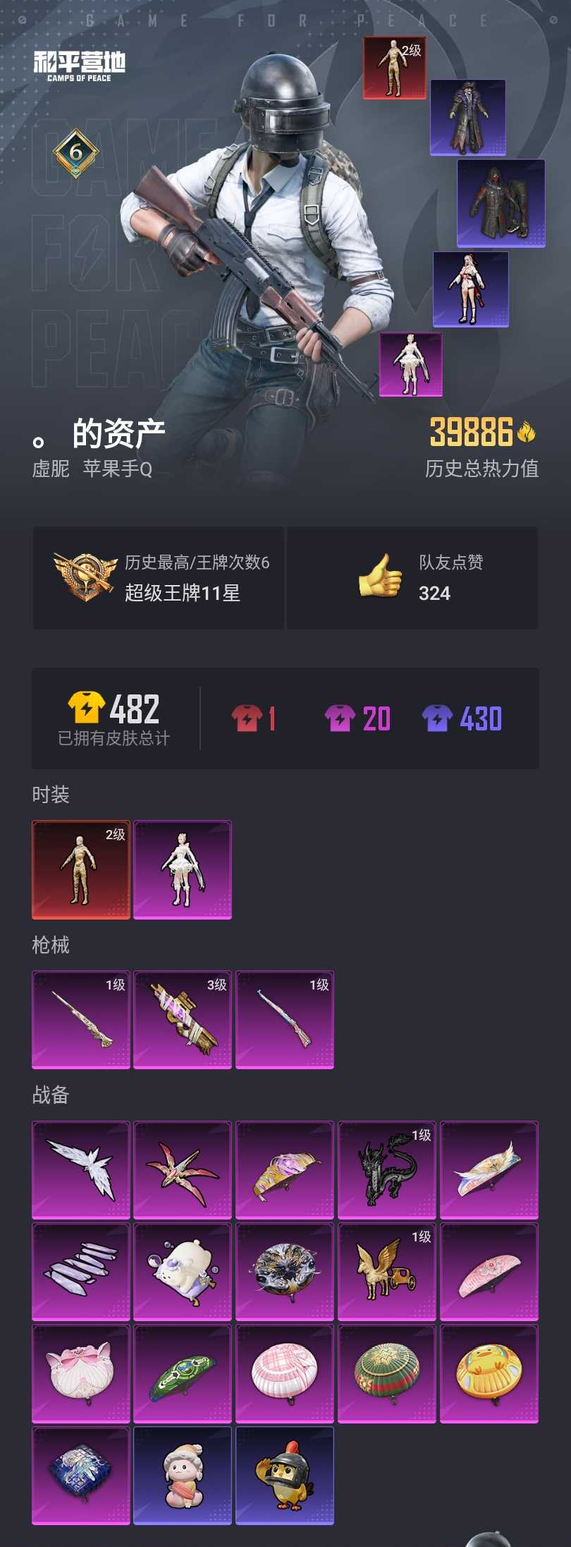 【和平精英】【lyhp20336】1粉装,3特效呛,0载具,历史最高段位:超级王牌11星 王牌印记6次 热力值:39886,100套装,122呛械,150装备,88战备;套装:沙丘之主-图卡盟,角色-千金淑猫,套装-黄色运动,套装-蓝色运动,套装-黑色伏地魔,套装-竞技名士,套装-深蓝色名流,套装-酒红色名流,套装-湖蓝色名流,套装-黄色名流,套装-猛禽,套装-长空猛禽,套装-冷焰舞者,套装-灼焰舞者,套装-贵族骑装,套装-春日漫步,套装-沙漠毒蛇,套装-完美偶像,套装-人气偶像,套装-幻影武者,套装-怒火燎原,套装-魅力单车,套装-绮丽涂鸦,套装-竞技达人朋克,套装-金羽特工,套装-都市魅力,套装-极地朋克,套装-奇异狩猎者,套装-金耀舞者,套装-蓝调潮人,套装-甜蜜熊情侣,套装-缤纷果语,套装-龙魂突击队,套装-冰川特警,套装-元素星魂,套装-格斗先锋,套装-麻辣教官,套装-梦魇先生,套装-粉红小猪,套装-破蛋小黄鸡,套装-萌趣颜团子,套装-战术大师,套装-牛气冲天,套装-ss18特训,套装-耀粉歌者,套装-ss17特训,套装-瑞龙福将,套装-团圆交子,套装-炫光向阳,套装-福星高照,套装-虎虎生威吉莉,角色-军刀雅典娜,套装-异彩先驱,套装-霓虹极客,套装-空投萌叽,套装-ss19特训,套装-ss20特训,套装-甜心亚梦,套装-虚音幻奏,套装-ss21特训,套装-萌趣咩咩,套装-娇憨猪猪,套装-玉兔迎春,角色-孙悟空,套装-飞狐塔尔斯,套装-香桃花海,套装-冰河战士,角色-拉斐尔,角色-极地流光,角色-粉雾星云,套装-街头风暴,套装-蝶变,套装-ss29特训,套装-雏菊兔兔,角色-狂花道·娜可露露,套装-萝兰蝴蝶,角色-摩登魅猫,角色-都市丽猫,角色-许七安,套装-焰舞炽心,套装-ss30特训,套装-青团波波,套装-棉花软糖,套装-糖糖葫芦,玩偶服-憨乐熊二,套装-ss31特训,套装-鱼渊荷华,套装-燕燕于飞,套装-智谋强哥,角色-风玲,套装-紫幽梦,套装-粉恋花,套装-ss33特训,套装-巳巳如意,套装-ss32特训,套装-蓝冰羽,套装-大橘大利,套装-星渊小夜曲,套装-霓虹热舞,套装-ss35特训;呛皮:m16a4-甜心亚梦,m16a4-冰河战士,m16a4-千金淑猫,scar-l-红色方程式,scar-l-炫彩节奏,scar-l-玉兔迎春,scar-l-星途旅人,akm-灼热熔岩,akm-生命誓言,akm-奇异狩猎者,akm-破晓战魂,akm-虎虎生威,aug-甜蜜菠萝,aug-异域银装,m762-奇异狩猎者,m762-瑞龙福将,m762-天降萌叽,m762-雏菊兔兔,蜜獾-娇憨猪猪,蜜獾-糖糖葫芦,蜜獾-乌木金纹,q-洛神天依,m416-蓝色火焰,m416-红色方程式,groza-异彩先驱,g36c-镜域双华,g36c-星穹咏叹调,g36c-乌木金纹,ac-val-甜心亚梦,ac-val-天降萌叽,mk47-乌木金纹,famas-墨龙九天,famas-镜域双华,famas-乌木金纹,1级kar98k-巳巳如意,kar98k-顶峰精英,kar98k-星穹咏叹调,1级m24-镜域双华,m24-奇异狩猎者,m24-香水柠檬,m24-乌木金纹,win94-瑞龙福将,amr-暗夜行者,amr-墨龙九天,m200-乌木金纹,awm-垂柳戏鸭,mk20-h-糖糖葫芦,mk20-h-乌木金纹,slr-娇憨猪猪,slr-墨龙九天,mini14-炫彩节奏,mini14-异彩先驱,mini14-香桃花海,mini14-雏菊兔兔,mk12-游龙飞鱼,vss-香桃花海,mk14-乌木金纹,mk14-冰河战士,mk14-紫幽梦,3级p90-沙丘之主,p90-巳巳如意,野牛-沙丘之主,野牛-雏菊兔兔,野牛-燕燕于飞,野牛-乌木金纹,ump45-蓝色火焰,ump45-生命誓言,ump45-糖糖葫芦,汤姆逊-奇异狩猎者,汤姆逊-炫彩节奏,汤姆逊-异彩先驱,vect-彩虹符号,vect-突变脉冲,vect-燕燕于飞,mp5k-异彩先驱,mp5k-未来领航者,uzi-炫彩节奏,uzi-娇憨猪猪,uzi-冰河战士,s12k-破晓战魂,s12k-瑞龙福将,s12k-娇憨猪猪,s12k-智耀战神,dbs-甜心亚梦,dbs-月影灵韵,dbs-乌木金纹,spas-12-燕燕于飞,spas-12-乌木金纹,s686-英伦信使,s686-千金淑猫,s1897-春暖花开,s1897-紫幽梦,mg3-瑞龙福将,mg3-幻世战舞者,mg3-第五大道,mg3-镜域双华,pkm-紫幽梦,dp-28-甜心亚梦,dp-28-旋转彩虹,m249-沙丘之主,p18c-糖糖葫芦,r1895-雏菊兔兔,p92-紫幽梦,蝎式手呛-千金淑猫,蝎式手呛-燕燕于飞,短管霰弹-星穹咏叹调,平底锅-瑞龙福将,平底锅-异彩先驱,平底锅-甜心亚梦,平底锅-娇憨猪猪,平底锅-雏菊兔兔,平底锅-糖糖葫芦,平底锅-许七安,平底锅-紫幽梦,撬棍-环太平洋,撬棍-幻世战舞者,撬棍-沙丘之主权杖,撬棍-朗基努斯之呛,十子怒-燕燕于飞,破片手留单-星途旅人,破片手留单-巳巳如意,盐雾蛋-炽纹蛇影;降落伞:镜光幻境飞行翼,镜域双华-灵镜之阶,酣梦熊熊飞行器,祥瑞起舞飞行器,沙丘之主天马,龙翔九天飞行器,粉色滑翔尾迹,异域银装飞行器,招财竹蜻蜓飞行器,顶峰精英尾迹,破刃行动尾迹; 详情看图1红装1粉装3特效呛 2级图卡盟 千金淑猫 奇异狩猎者