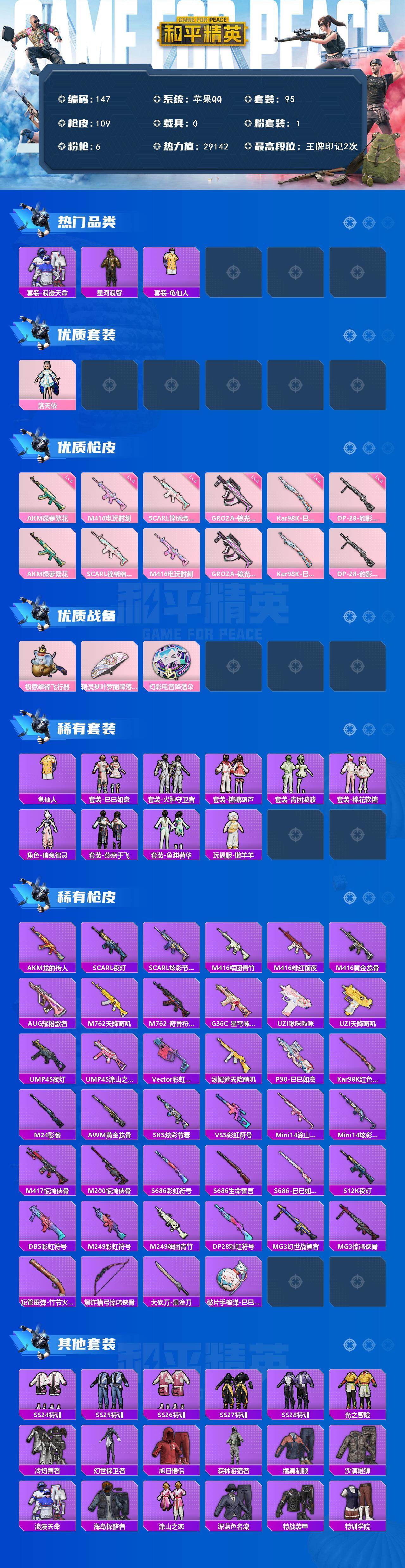 【洛天依】2王牌印记-1粉装-6特效呛-109呛皮-95套装 【1粉装】 洛天依 【6特效呛】 groza-镜光银凌 dp-28-豹影疾电 kar98k-巳巳如意 m416-电玩时刻 akm-绿萝繁花 scar-l-锦绣绵绵 【6飞行器】 鸡智如我飞行器 炫彩糖果飞行器 极意拳锋飞行器 狂鲨锋刃飞行器 顶峰精英尾迹 冰柠泡泡飞行器 【15头盔】 圣堂之誓头盔3级 萌鸡速