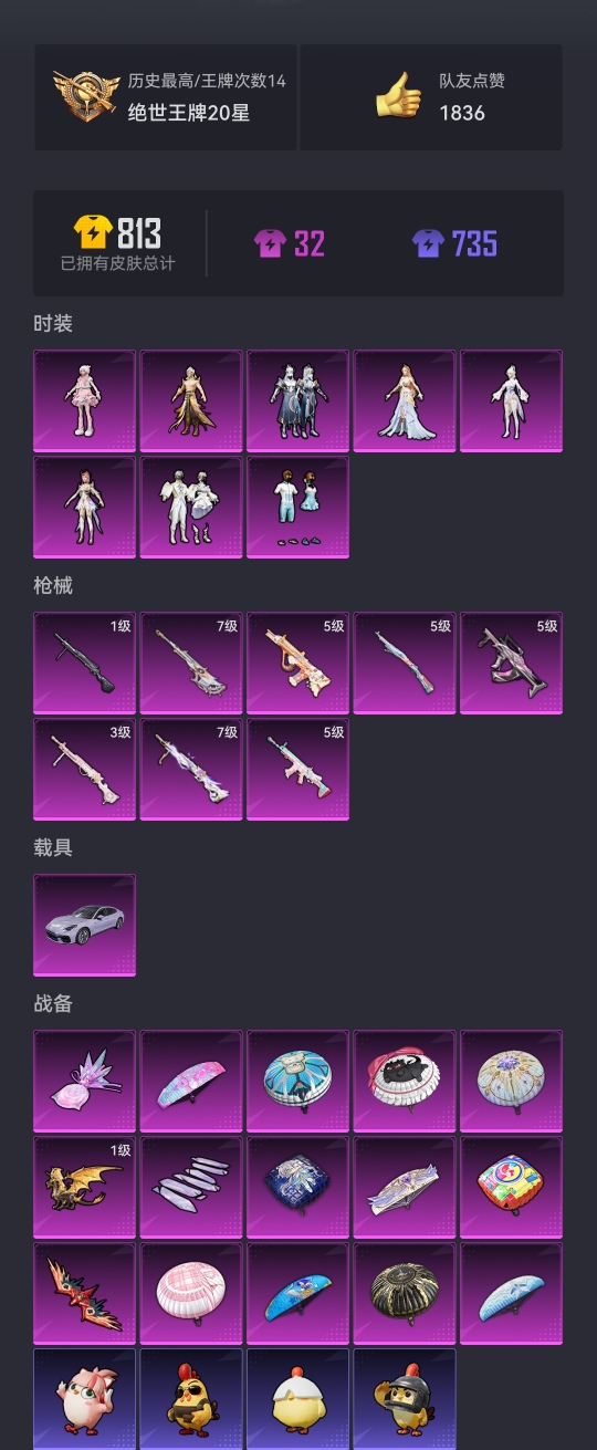 【7粉装8特效呛1载具 v社交 游戏正常】 安卓v区-66546热力值-14印记-144套装-227呛皮 【1载具】 保时捷panamera星辰紫【1稀有】 奇异狩猎者【7粉装】 寒光使者 吟月归客 仲夏莫吉托 角色-罗征 角色-智耀战神 角色-女娲灵识 角色-羊梦糖心【8特效呛】 scar-l-锦绣绵绵5级 dp-28-圣堂之誓7级 dp-28-千金淑猫3级 amr-智耀战神7级 kar98k-巳巳如意5级 aug-暖羊咩咩5级 groza-镜光银凌5级 dp-28-豹影疾电1级【211热门】 浪漫天命 破蛋小黄鸡 狂沙舞者 ss27特训 ss26特训 ss25特训 ss24特训 ss23特训 ss22特训 mk47-洛神天依 scar-l-玉兔迎春 groza-田园牧歌 m762-天降萌叽 mk47-乌木金纹 sks-糯团青竹 uzi-娇憨猪猪 ump45-蓝色火焰 m249-彩虹符号 mg3-幻世战舞者 akm-星之彼岸 groza-异彩先驱 aug-圣光天使 长空猛禽 虚音幻奏 甜心亚梦 圣堂之誓 青涩时光 牛气冲天 霓虹街区 妙红点点 懵萌河马 魅力单车 六六大吉 猎鹰 蓝色运动 坚韧舞者 s686-奇异狩猎者 黑色伏地魔 和煦暖阳 海岛探路者 风暴特警 春日漫步 m24-奇异狩猎者 akm-奇异狩猎者 汤姆逊-智耀战神 s1897-糯团青竹 海琴烟 m24-香水柠檬 顶瓜瓜 蝶吟花词 恋语绒绒 ss34特训 朱霞炽焰 星渊小夜曲 时希公主 ss12特训 大橘大利 ss14特训 彩虹兔 ss19特训 ss20特训 ss21特训 凌霄紫焰 蓝冰羽 ss29特训 ss30特训 青团波波 鱼渊荷华 擎苍青焰 糖糖葫芦 ss28特训 pkm-啾咪啾咪 海盐绵绵冰 燕燕于飞 ss31特训 大砍刀-2p战斗服款 镰刀-咒蚀之裁 ss33特训 ss32特训 紫幽梦 雪绒豹 mg3-霓彩脉冲 焰鹰斗篷 粉黛兰香 狂鲨锋刃 老实芭蕉 异域银装 智谋强哥 g36c-桃粉嫣然 粉恋花 战术大师 js9-凌霄紫焰 mg-36-凌霄紫焰 平底锅-咒蚀之裁 arx-凌霄紫焰 云朵鹅 kar98k-星穹咏叹调 akm-极光猎影 g36c-星穹咏叹调 撬棍-咒蚀之裁 暗黑骑手 p92-凌霄紫焰 p92-拳皇97 s1897-精灵梦叶罗丽 平底锅-凌霄紫焰 燃烧瓶-甜梦桃焰 m416-糯团青竹 ump45-海盐豹豹 kar98k-彩虹符号 蝎式手呛-欢乐香蕉 awm-恐龙拽拽 mk20-h-星途旅人 幻世保卫者 mini14-炫彩节奏 m417-玩趣呆呆 平底锅-飞行日记 撬棍-绯红前夜 撬棍-环太平洋 平底锅-绯红前夜 平底锅-光之冒险 p18c-竞速先锋 m249-妙红点点 mg3-乌木金纹 pkm-紫幽梦 平底锅-飞驰魅影 撬棍-沙丘之主权杖 mini14-香桃花海 平底锅-甜心亚梦 dbs-净心行者 mk14-紫幽梦 akm-涂鸦街区 平底锅-娇憨猪猪 s686-千金淑猫 sks-圣域龙灵 平底锅-精灵梦叶罗丽 盐雾蛋-冰氧夏日 scar-l-彩虹符号 平底锅-电糖天使 蜜獾-绯穹魔姬 m249-绯穹魔姬 ss35特训 s1897-紫幽梦 蜜獾-糖糖葫芦 平底锅-糖糖葫芦 p92-紫幽梦 野牛-燕燕于飞 ump45-糖糖葫芦 星途旅人 uzi-月影灵韵 薄荷星砂 mk20-h-糖糖葫芦 平底锅-紫幽梦 旋风灵鼠 破片手留单-星途旅人 香桃花海 spas-12-燕燕于飞 p18c-糖糖葫芦 vect-燕燕于飞 元气之梦 蝎式手呛-燕燕于飞 街头风暴 十子怒-燕燕于飞 m416-萌萌史莱姆 绛羽幽主 aks-74u-粉粉喵呜 s12k-霓彩脉冲 vss-香桃花海 akm-霓彩脉冲 aug-异域银装 dbs-风迹短诗 十子怒-异域银装 莫辛纳甘-风迹短诗 dbs-幻彩电音 mk12-风迹短诗 mk47-风迹短诗 r45-幻彩电音 蜜獾-风迹短诗 破片手留单-拽到爆炸 信号呛-异瞳寒姬 十子怒-异瞳寒姬 famas-霓彩脉冲 svd-霓彩脉冲 大砍刀-盛世惊鸿 svd-云朵鹅 铝热弹-炫彩糖果 m762-云朵鹅 uzi-炫彩糖果 p90-玩趣呆呆 spas-12-云朵鹅 沙墨之鹦-快闪甜心 平底锅-田园牧歌 mk20-h-狂鲨锋刃 平底锅-空岛之星 spas-12-狂鲨锋刃 平底锅-焰鹰斗篷 p90-巳巳如意 平底锅-快闪甜心 平底锅-惊鸿侠骨 平底锅-妙红点点 午间小调 scar-l-海盐豹豹 紫俏灵猫 萌鸡速递 平底锅-懵萌河马 风迹短诗 沙墨之鹦-云朵鹅 秘语星愿 炫彩糖果 大砍刀-云朵鹅 破片手留单-呆爆全场 元素星魂【6飞行器】 火焰蝠人飞行服 ump45-涂山之恋 圣域金龙飞行器 炫彩糖果飞行器 镜域双华-灵镜之阶 炎氏战神飞行翼【45背包】 快闪甜心背包3级 圣堂之誓背包3级 焰鹰斗篷背包3级 ss11赛季背包3级 圣光天使背包3级 四圣焕新背包3级 妙红点点背包3级 精灵梦叶罗丽背包3级 天降萌叽背包3级 蝶变背包3级 未来领航者背包3级 香桃花海背包3级 千金淑猫背包3级 净心行者背包3级 智谋强哥背包3级 飒粉甜心背包3级 异域银装背包3级 巳巳如意背包3级 恐龙拽拽背包3级 紫幽梦背包3级 星之彼岸背包3级 智耀战神背包3级 音爆索尼克背包3级 幻海仙踪背包3级 星穹咏叹调背包3级 飞驰魅影背包3级 甜心亚梦背包3级 云朵鹅背包3级 甜蜜菠萝背包3级 绯穹魔姬背包3级 凌霄紫焰背包3级 心之恋语背包3级 田园牧歌背包3级 薄荷星砂背包3级 萌鸡速递背包3级 风迹短诗背包3级 粉黛兰香背包3级 炫彩糖果背包3级 极意拳锋背包3级 狂鲨锋刃背包3级 龟仙人龟壳背包3级 懵萌河马背包3级 龙的传人背包3级 炫蓝之夏背包3级 未来歌姬背包3级 营地id:720782327