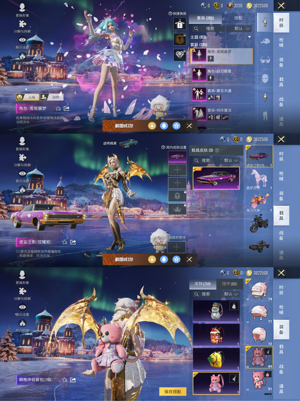 3载具-285套装-391呛皮-可二次实名【公主女号3级红装战神框小丑女小熊背包33粉装22特效呛4载具 秒换绑不用等】 苹果q区-热力值-18印记-历史最高段位:无敌战神-285套装-391呛皮 【1红装】 圣域龙灵-瑞拉3级【4载具】 鬼马风驰 虚妄之影炫耀紫 晶梦灵驹 僚机-圣域龙宝【3稀有】 红熊茄茄(权威小潘茄) 萌熊伴侣背包(小熊背包) mark.06蓝螳螂【33粉装】 狂魅哈