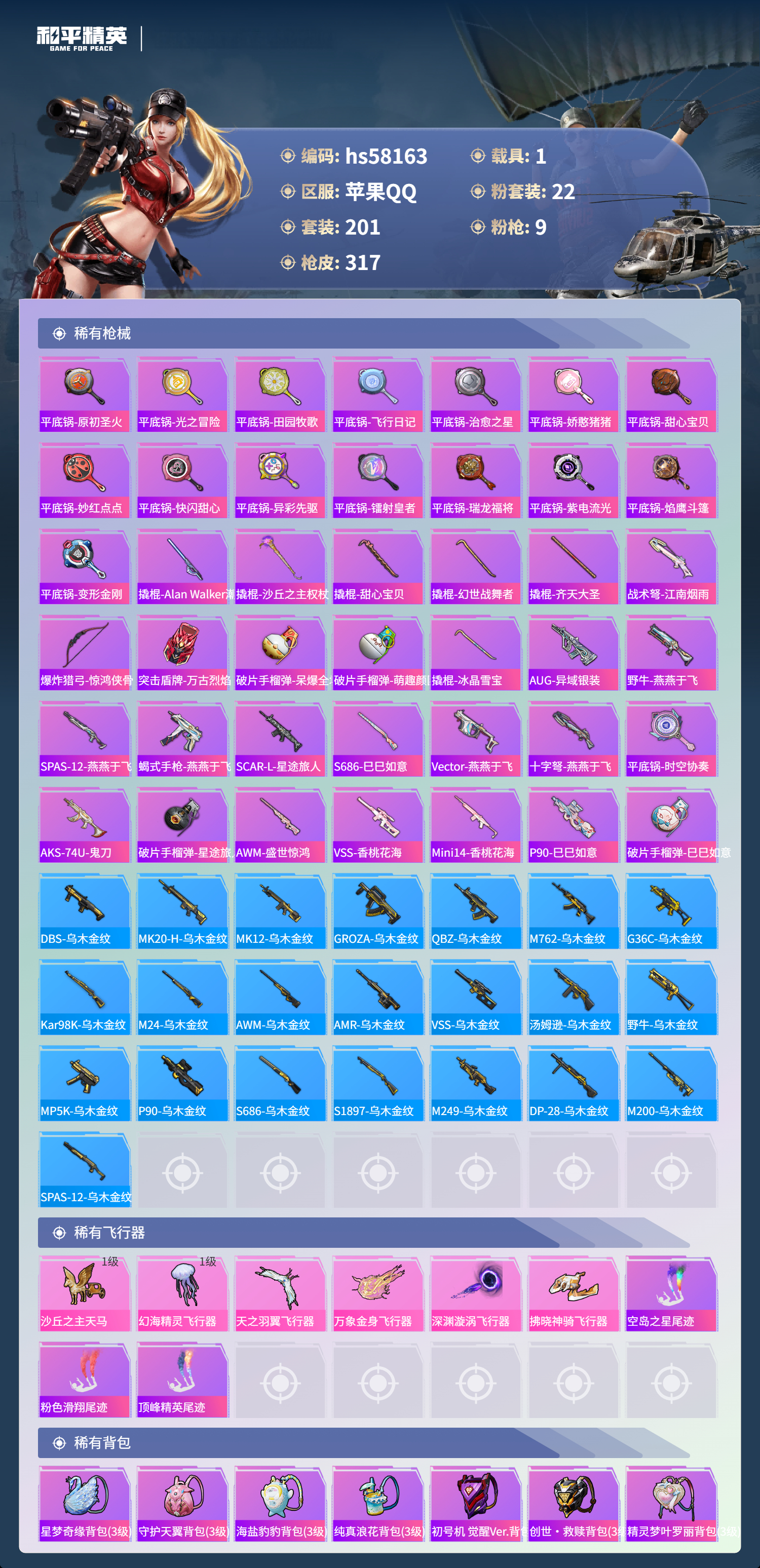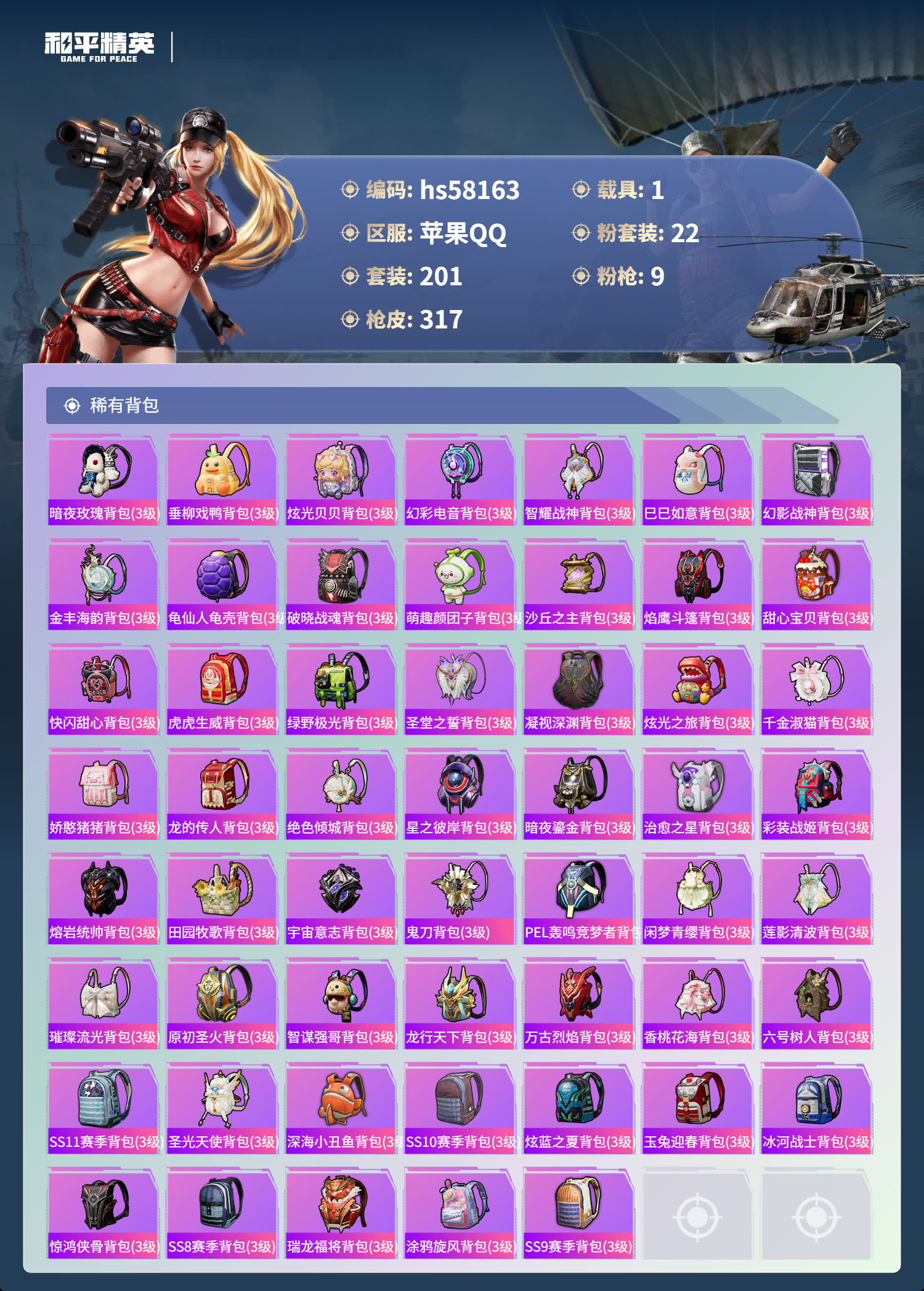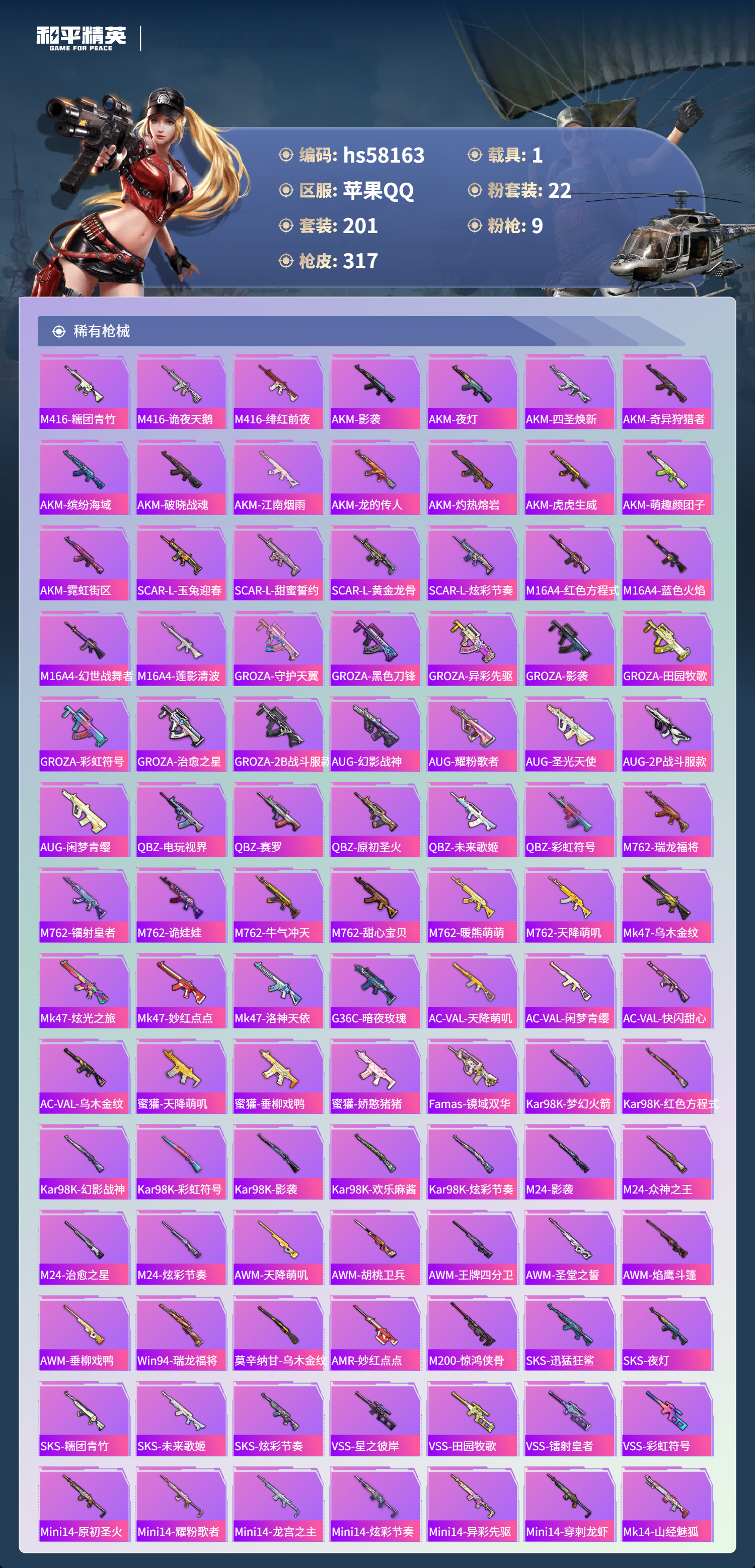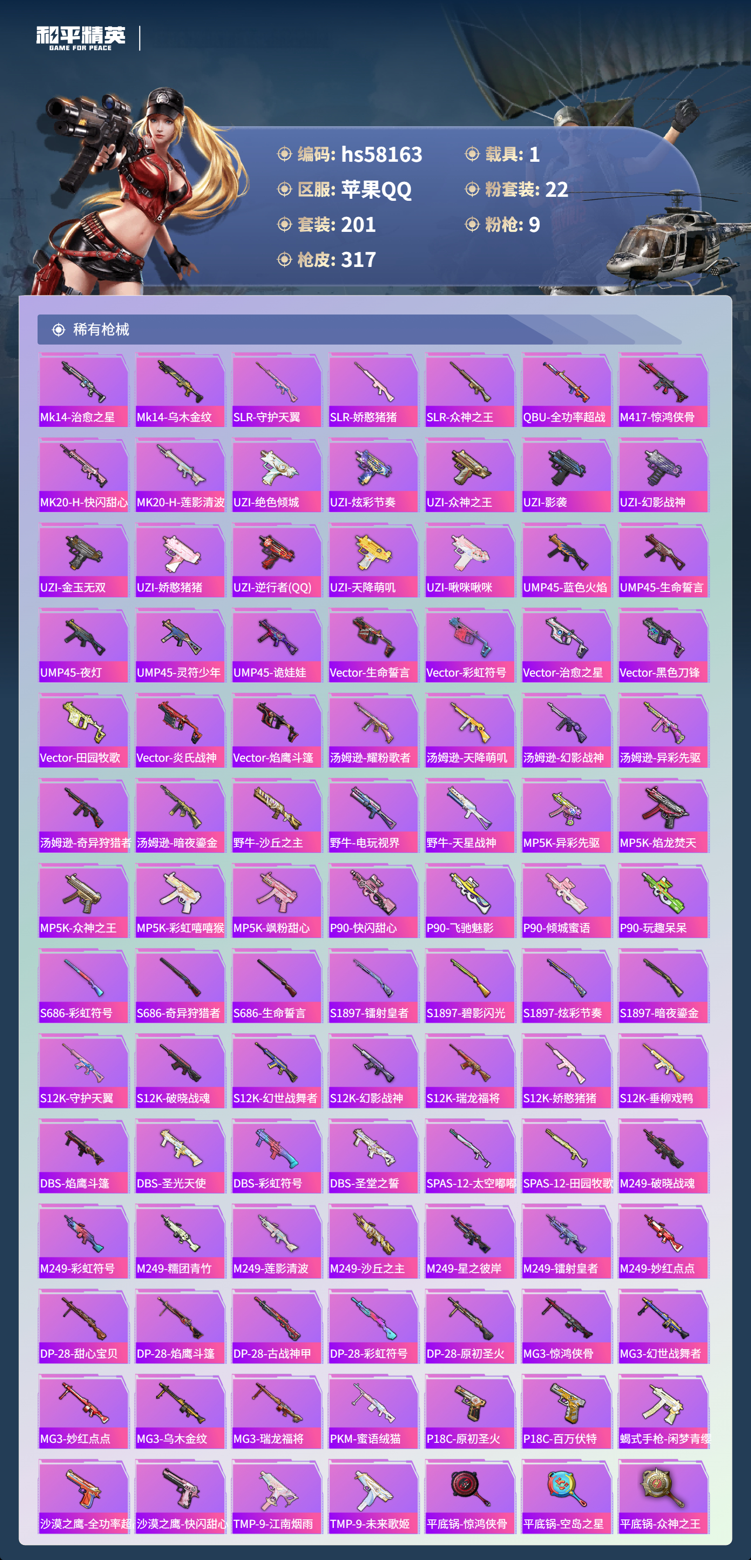 1载具-201套装-317呛皮-hs58163 苹果手q-7王牌印记-22粉装-9特效呛-1载具-热力值-201套装-317呛皮【22粉装】套装-炙焰红王套装-宝贝奶油派套装-飓风飞鹰套装-银龙傲海角色-月影灵韵套装-金丰海韵套装-莲影清波套装-天使彩虹糖角色-烟云彩露套装-幻影战神角色-紫钛骑兵套装-炫光之旅套装-闲梦青缨角色-美琪套装-暗夜玫瑰套装-极限特训套装-繁龙极客角色-