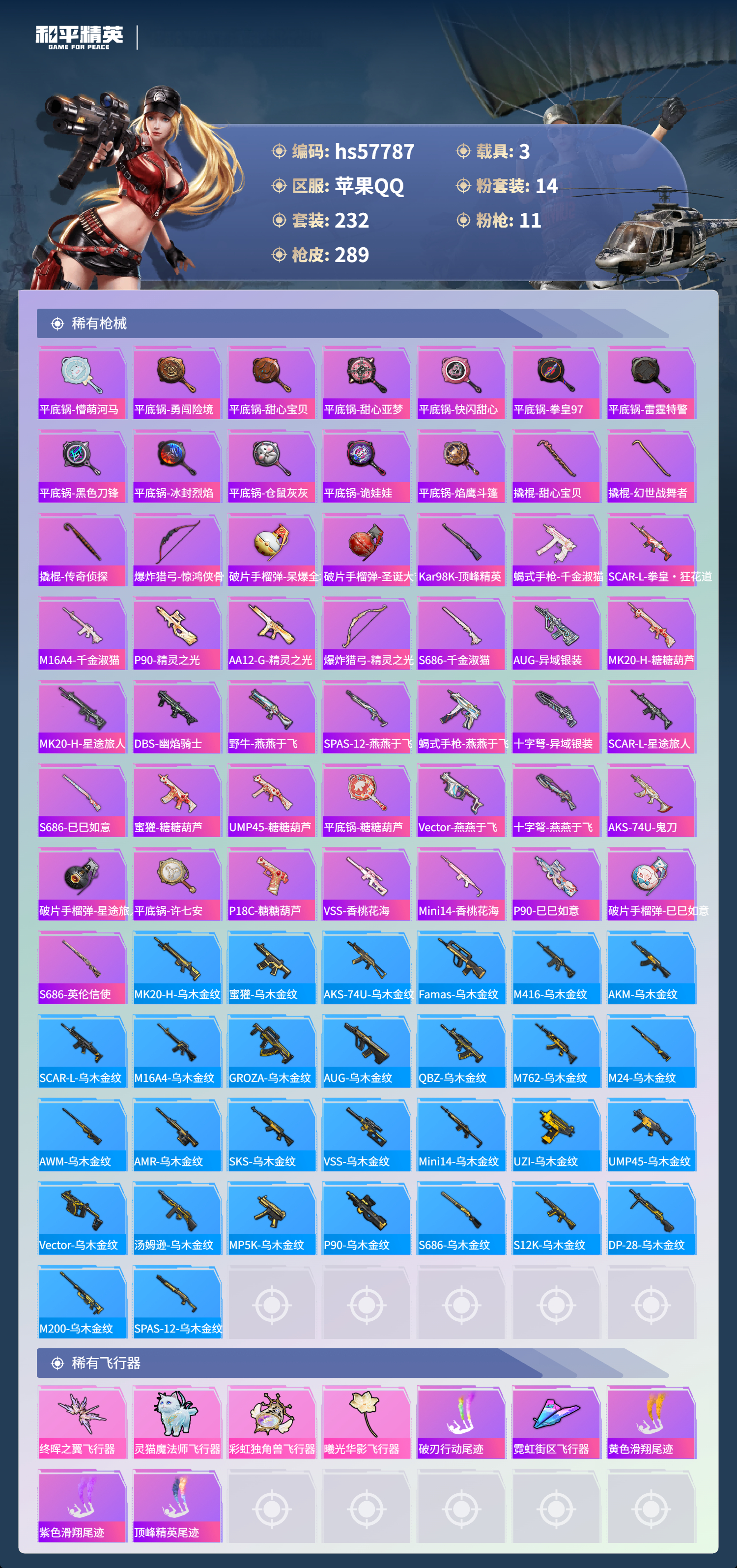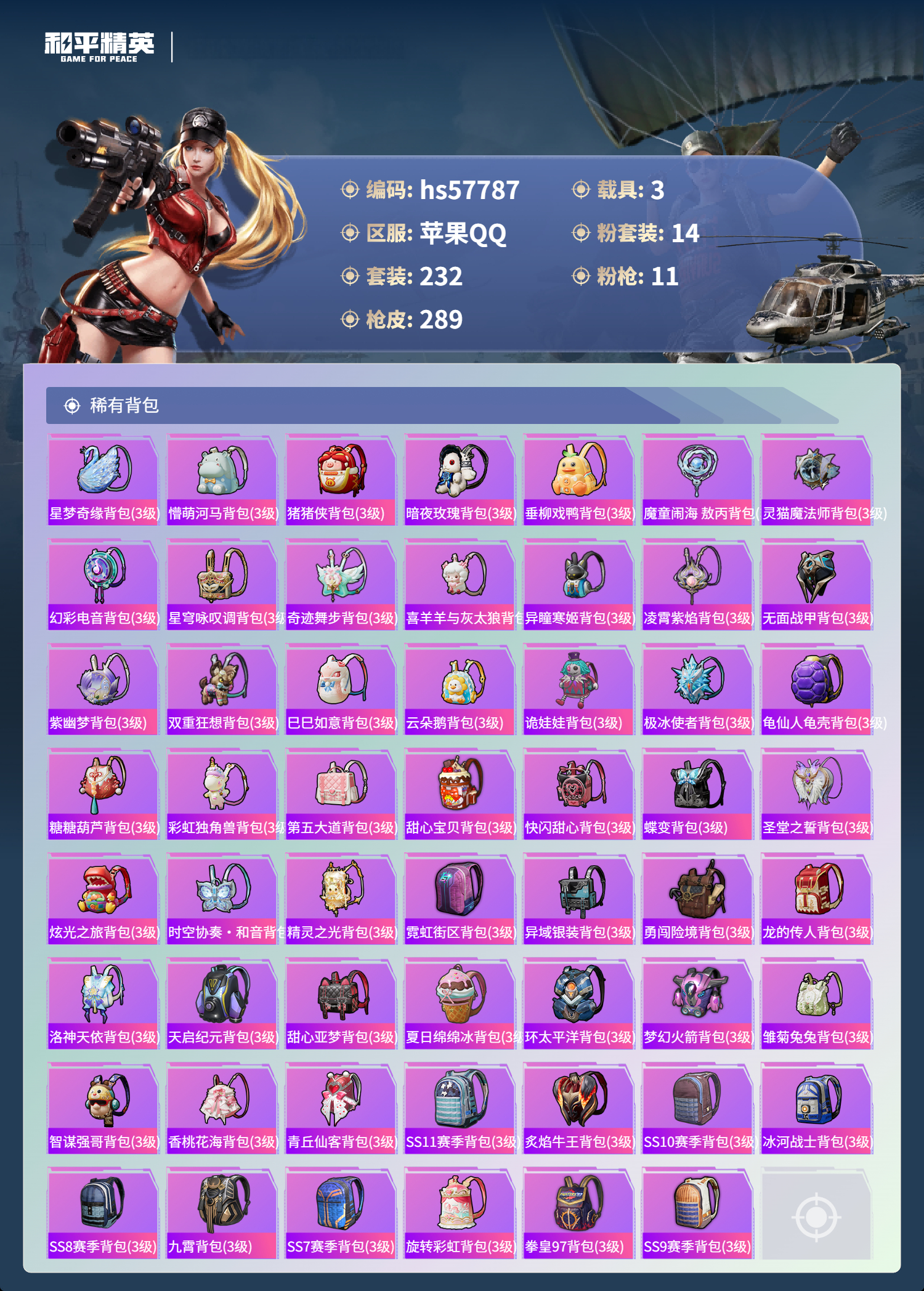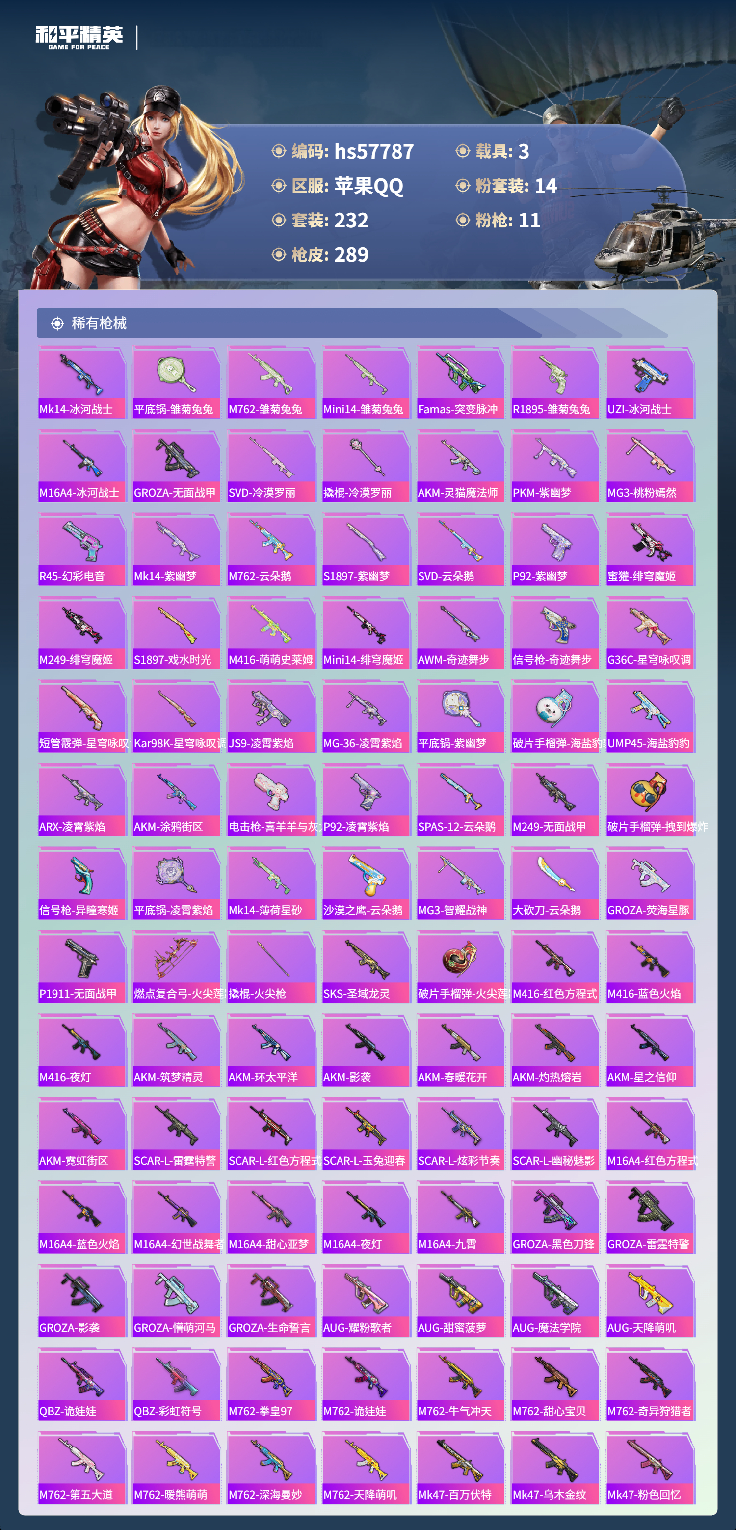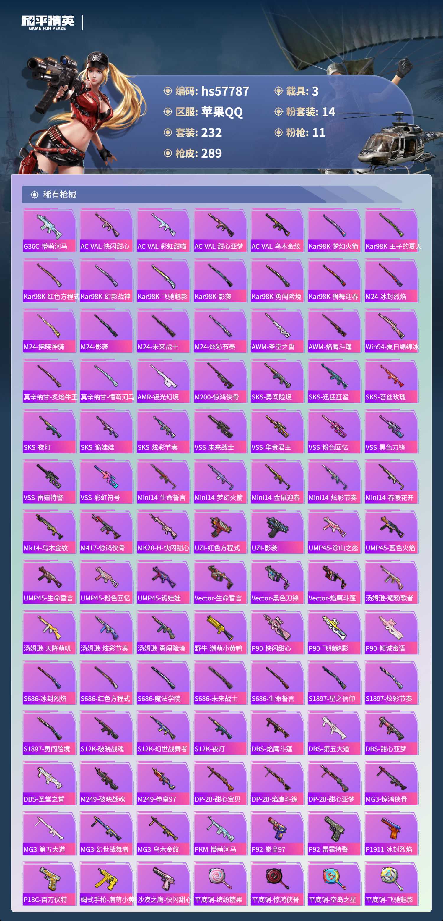 hs57787 苹果手q-11王牌印记-有战神框-1红装-14粉装-11特效呛-3载具-98330热力值-232套装-289呛皮-3卓越印记-3传奇印记【1红装】精灵之光-露米娜/3级【14粉装】套装-星穹咏叹调套装-第五大道角色-千金淑猫角色-奇迹舞步 美琪套装-蝶舞迷情套装-梦幻火箭角色-圣堂之誓套装-宝贝奶油派角色-奇迹舞步 贝贝套装-莲影清波角色-奇迹舞步 美雪