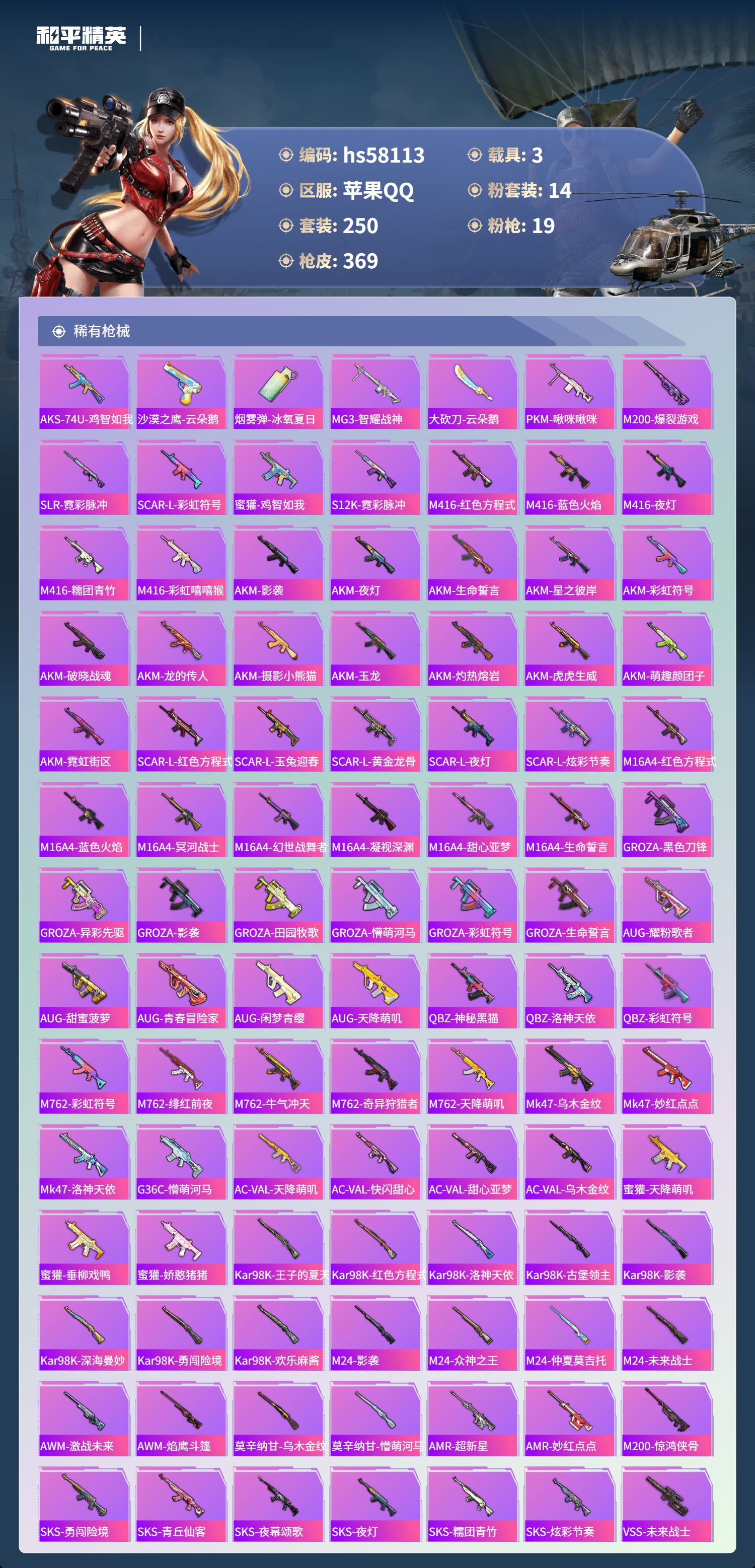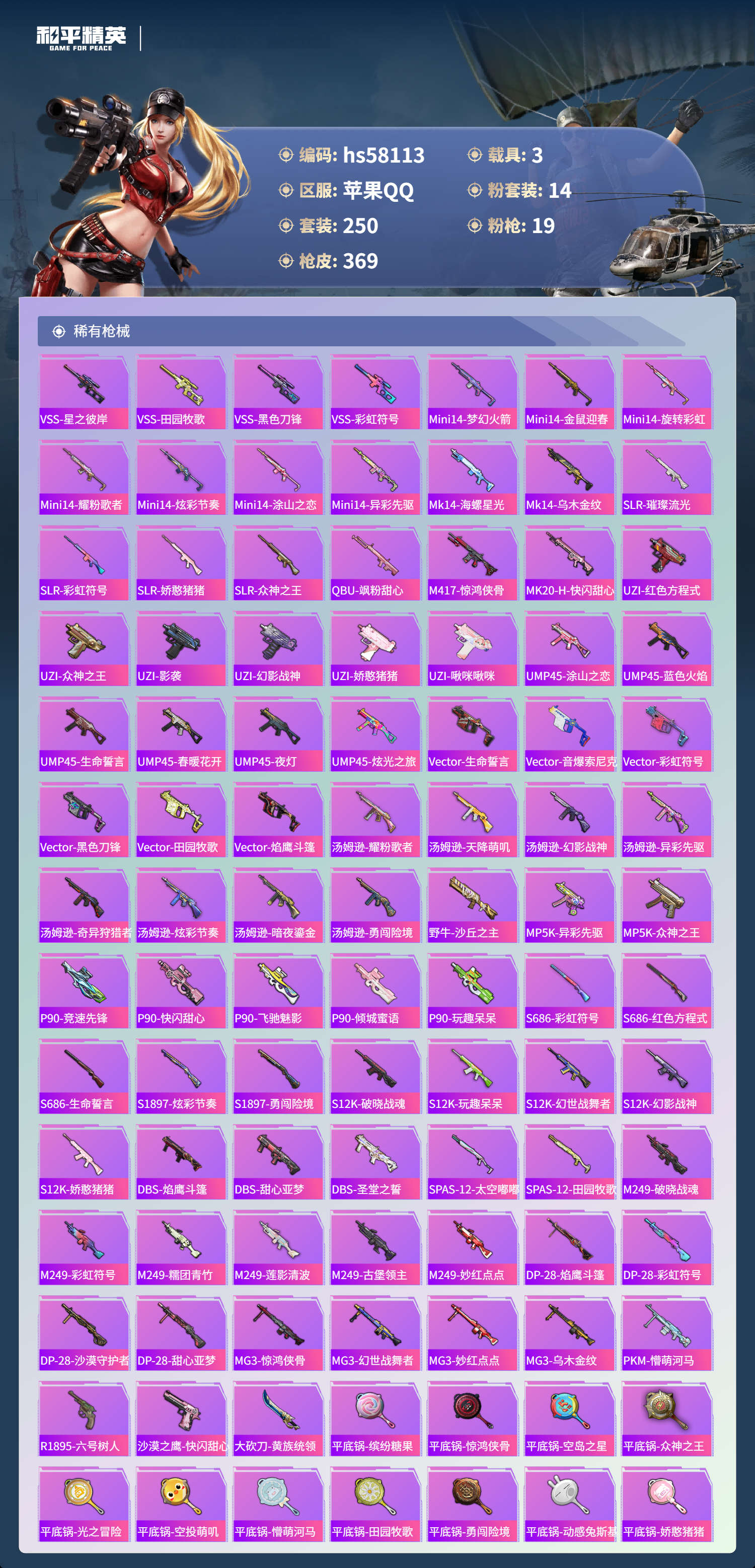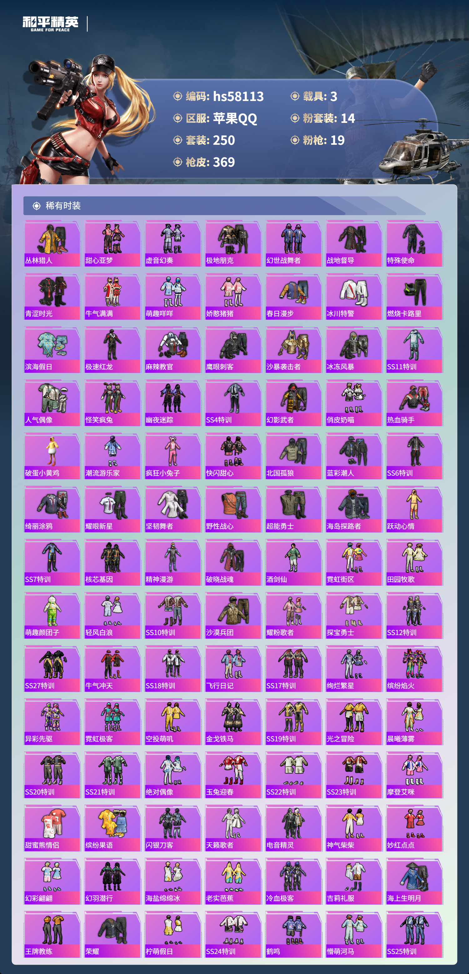 3载具-250套装-369呛皮-hs58113 苹果手q-18王牌印记-1红装-14粉装-19特效呛-3载具-热力值-250套装-369呛皮-4卓越印记-3传奇印记【1红装】沙丘之主-图卡盟/4级【14粉装】角色-智耀战神套装-幻影战神套装-机械师花傲天套装-深海曼妙套装-音爆索尼克角色-绯穹魔姬角色-狂魅哈莉套装-幻彩电音套装-梦幻火箭套装-智能音符角色-洛天依角色-异瞳寒姬套装-未来战