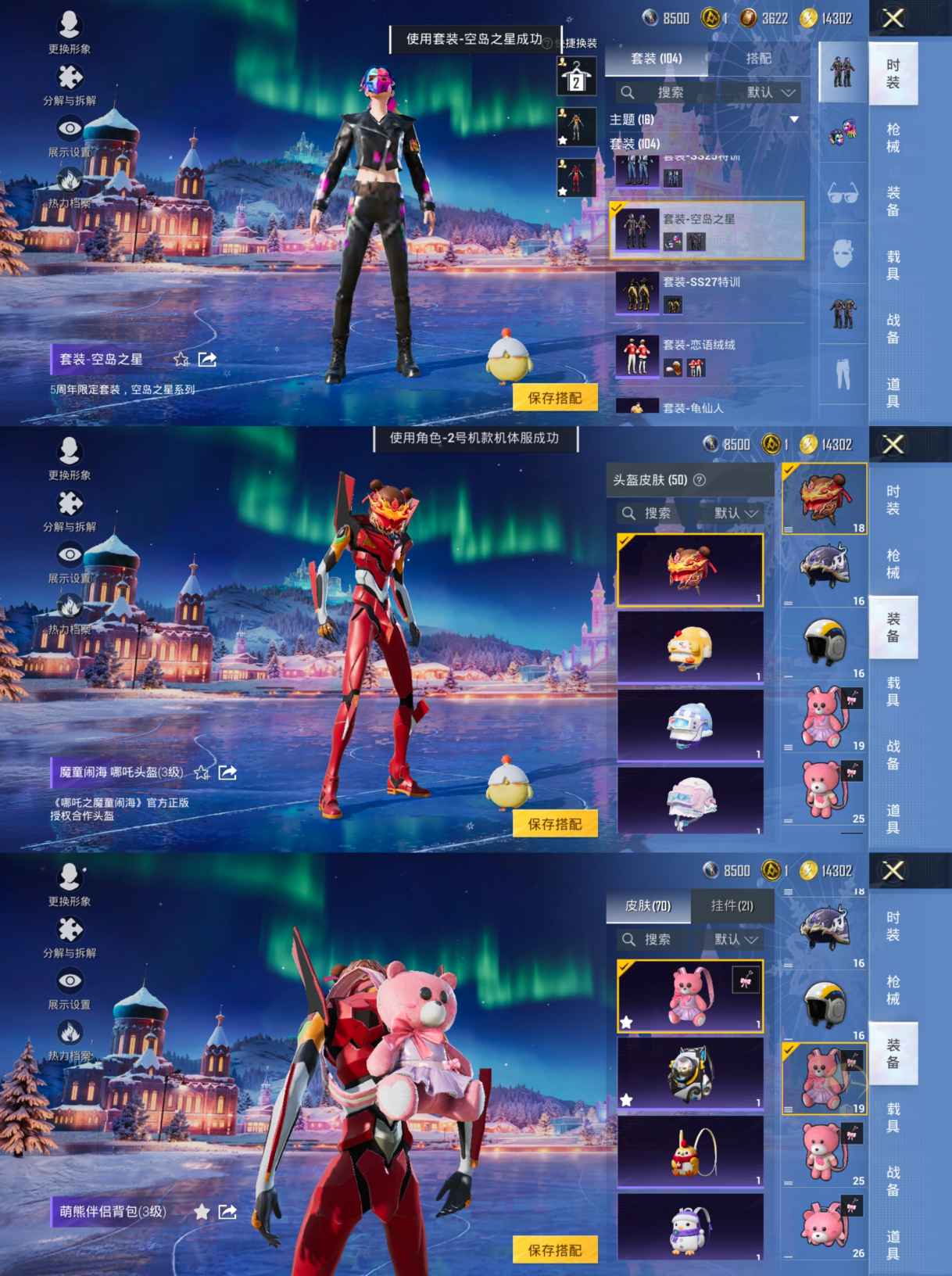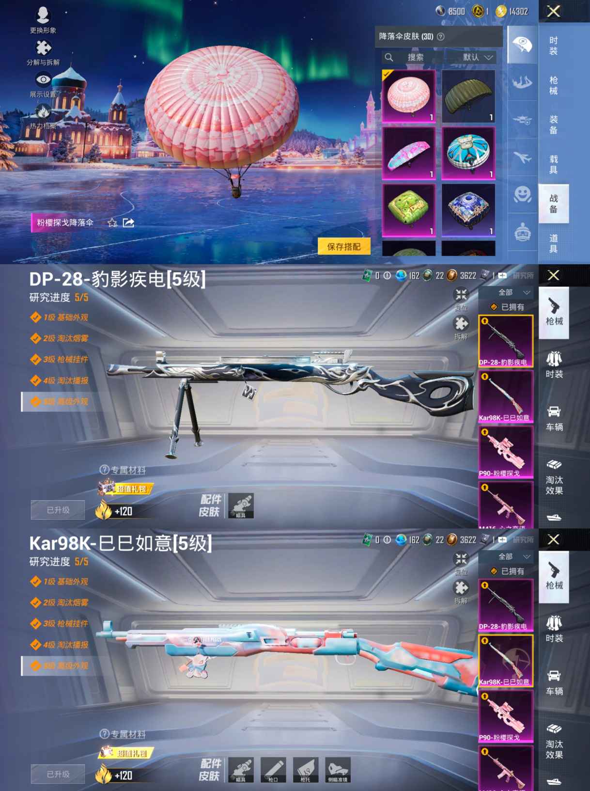 0载具-104套装-126呛皮-【三色螳螂 粉熊背包】安卓q-6王牌印记-4粉装-4特效呛-126呛皮-104套装 【4粉装】 2号机款机体服 黄螳螂 紫螳螂 暗夜玫瑰 【4特效呛】 dp-28-豹影疾电 kar98k-巳巳如意 p90-粉樱探戈 m416-心之恋语 【4飞行器】 炫彩糖果飞行器 狂鲨锋刃飞行器 异域银装飞行器 粉色滑翔尾迹 【头盔】 魔童闹海 哪吒头盔3级 异域银装头盔3级 环