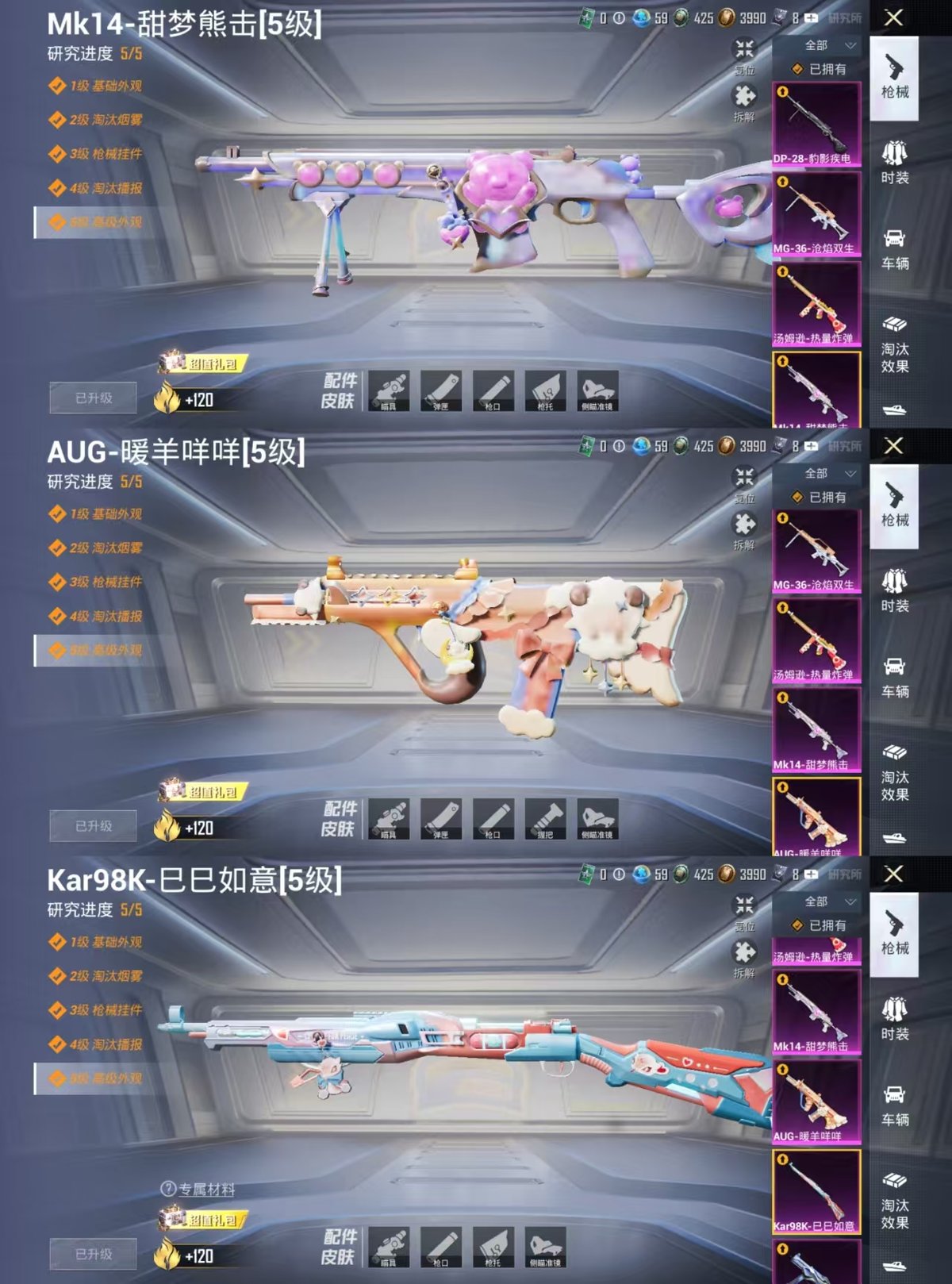 0载具-227套装-294呛皮-实名: 可修改 时装数: 874 呛械数: 294 战备数: 208 热门装扮: 梦幻火箭新101数码大师鹰眼刺客激萌罗小黑萌神柯基软萌银虎派对舞王千金淑猫幻彩电音异瞳寒姬 稀有呛皮: m416电玩时刻ump45量子极限kar98k-巳巳如意aug-暖羊咩咩mk14-甜梦熊击汤姆逊-热量炸弹dp-28-豹影疾电mg-36-沧焰双生