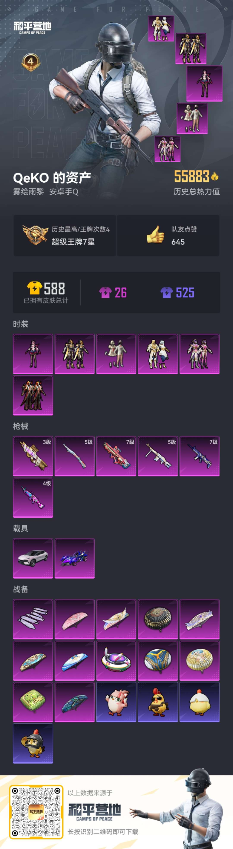 _2401567-2载具-130套装-157呛皮2稀有2载具5粉装6特效呛20热门130套装157呛皮55877热力值4印记历史超级王牌7星【2稀有】奇异狩猎者都市猎人【2载具】路特斯el灰色海龙奔腾【5粉装】宝贝奶油派天星战神创世救赎炙焰牛王银红美神【6特效呛】p90-沙丘之主3级kar98k-巳巳如意5级p90-能量风暴7级pkm-天星战神5级m249-蓝莓炮弹4级scar-l-青春物语7级【20热门】龟仙人梦魇先生鹰眼刺客星兔领航员兔兔白日梦深海小丑鱼ag战队服暗影哥特赛罗奥特曼醒狮腾龙团圆交子瑞龙福将粉红小猪漫步者黑色刀锋英勇保护者弄潮海豚m762-奇异狩猎者m762-瑞龙福将s686-奇异狩猎者【1飞行器】太空嘟嘟飞行器【1头盔】幻影战神头盔【2背包】梦幻火箭背包甜心宝贝背包营地id: