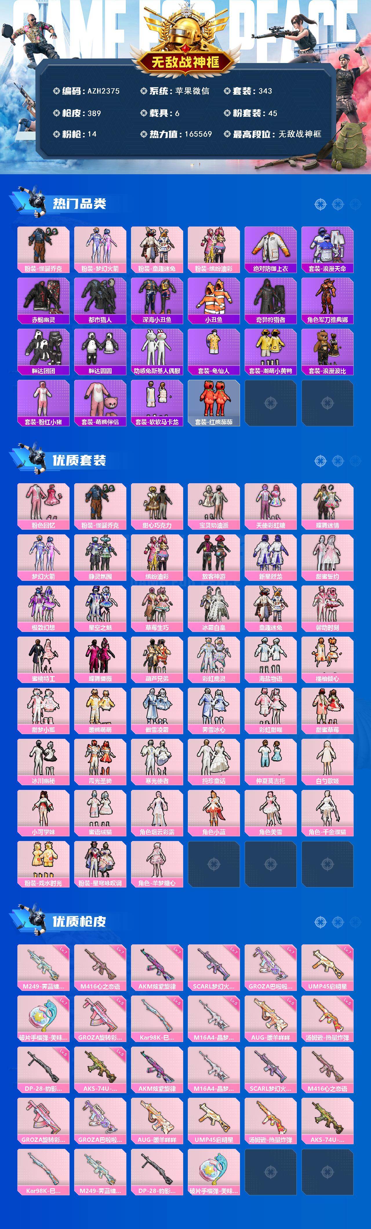 苹果 微信【22印记 无敌战神框 小丑梦幻火箭巧克力三姐妹猪脸放客神游 童趣迷兔甜梦小狐暖熊萌萌甜蜜草莓 巡查衣赤蝎都市胖达软软马卡龙红熊茄茄 满级炫紫旋律akm 满级梦幻火箭scar-l 满级心之恋语m416 满级巴啦啦小魔仙groza 满级启明星ump45 粉熊背包 6载具1僚机】无敌战神框-45粉装-14特效呛-6载具-13粉色飞行器-165569热力值-22王牌印记-343套装-389