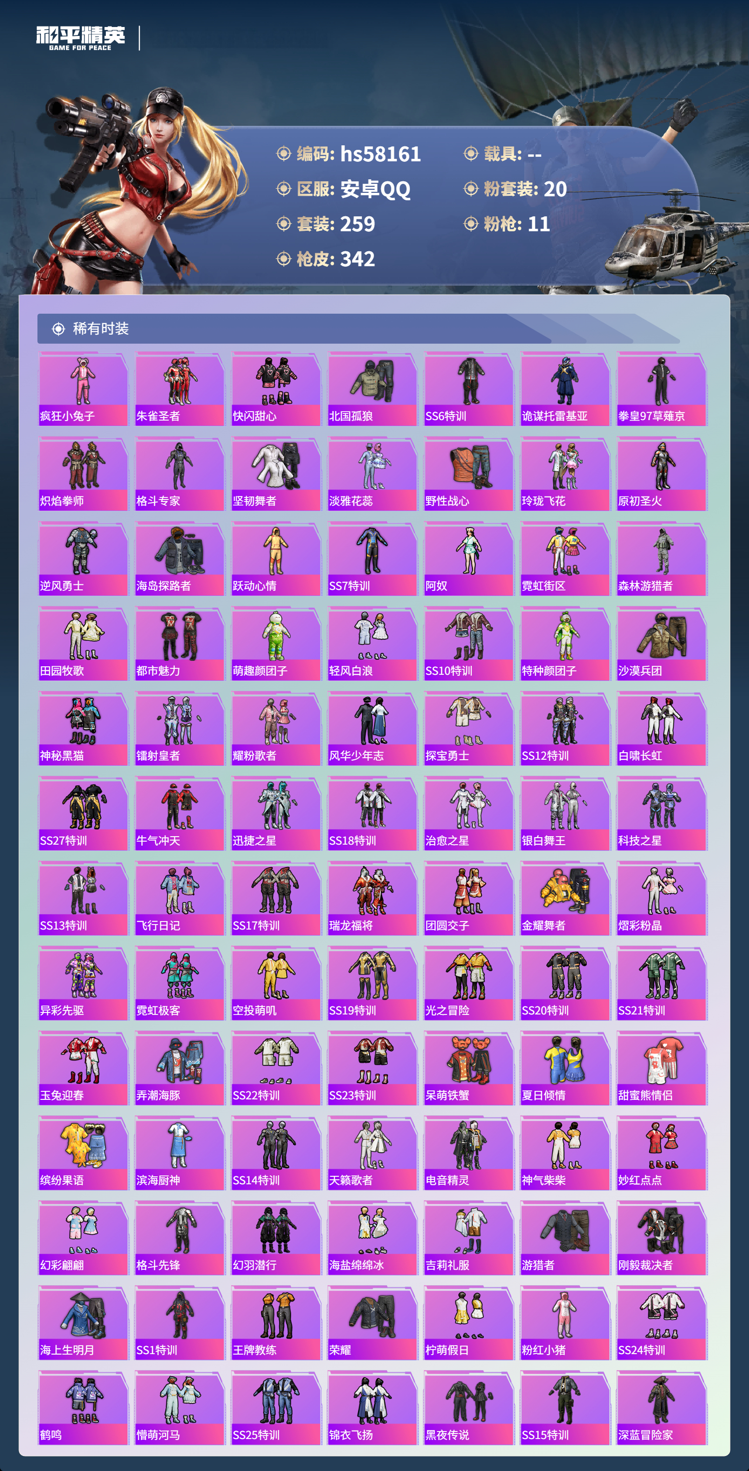 hs58161 安卓手q-19王牌印记-20粉装-11特效呛-热力值-259套装-342呛皮-3卓越印记-1传奇印记【20粉装】套装-飒粉甜心套装-馨动时刻套装-蝶舞迷情套装-霞光圣骑套装-梦幻火箭套装-蜜桃特工套装-天衡星秤角色-月影灵韵套装-室女星神角色-异瞳寒姬套装-炙焰红王套装-金属狂野套装-独舞天鹅套装-暗夜玫瑰套装-精灵迷巫角色-美琪角色-