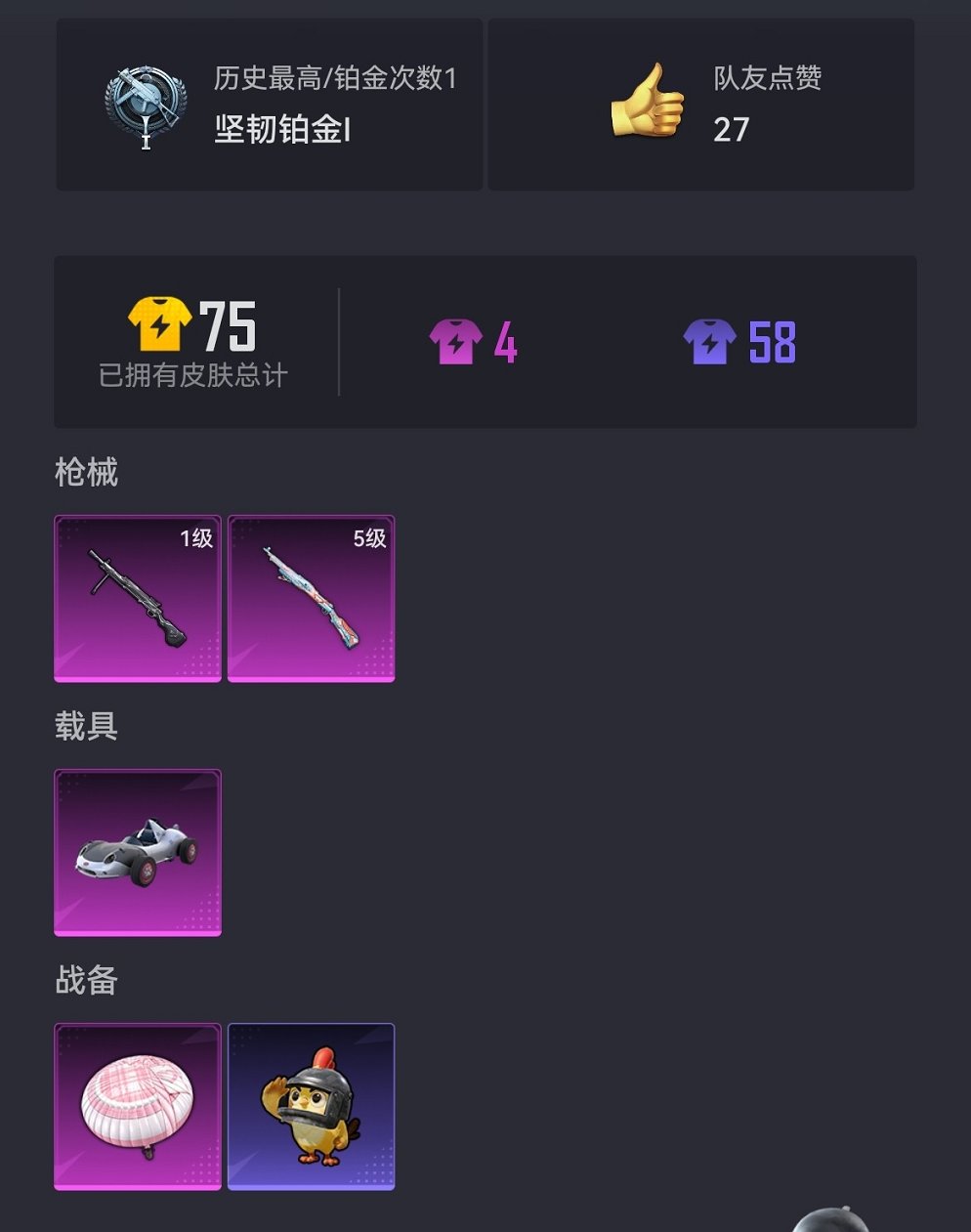【1载具2特效呛 秒换绑不用等】 苹果q区-7340热力值12套装-24呛皮 【1载具】 灵鼠银迹【2特效呛】 kar98k-巳巳如意5级 dp-28-豹影疾电1级【15热门】 ss24特训 m416-蓝色火焰 长空猛禽 青年教官 m24-樱桃泡泡 时希公主 巳巳如意 战术大师 g36c-星穹咏叹调 暗黑骑手 破片手留单-海盐豹豹 aug-紫晶流影 破片手留单-巳巳如意 scar-l-彩虹符号 p90-巳巳如意【4背包】 临安公主背包3级 智谋强哥背包3级 巳巳如意背包3级 龟仙人龟壳背包3级 营地id:962412605
