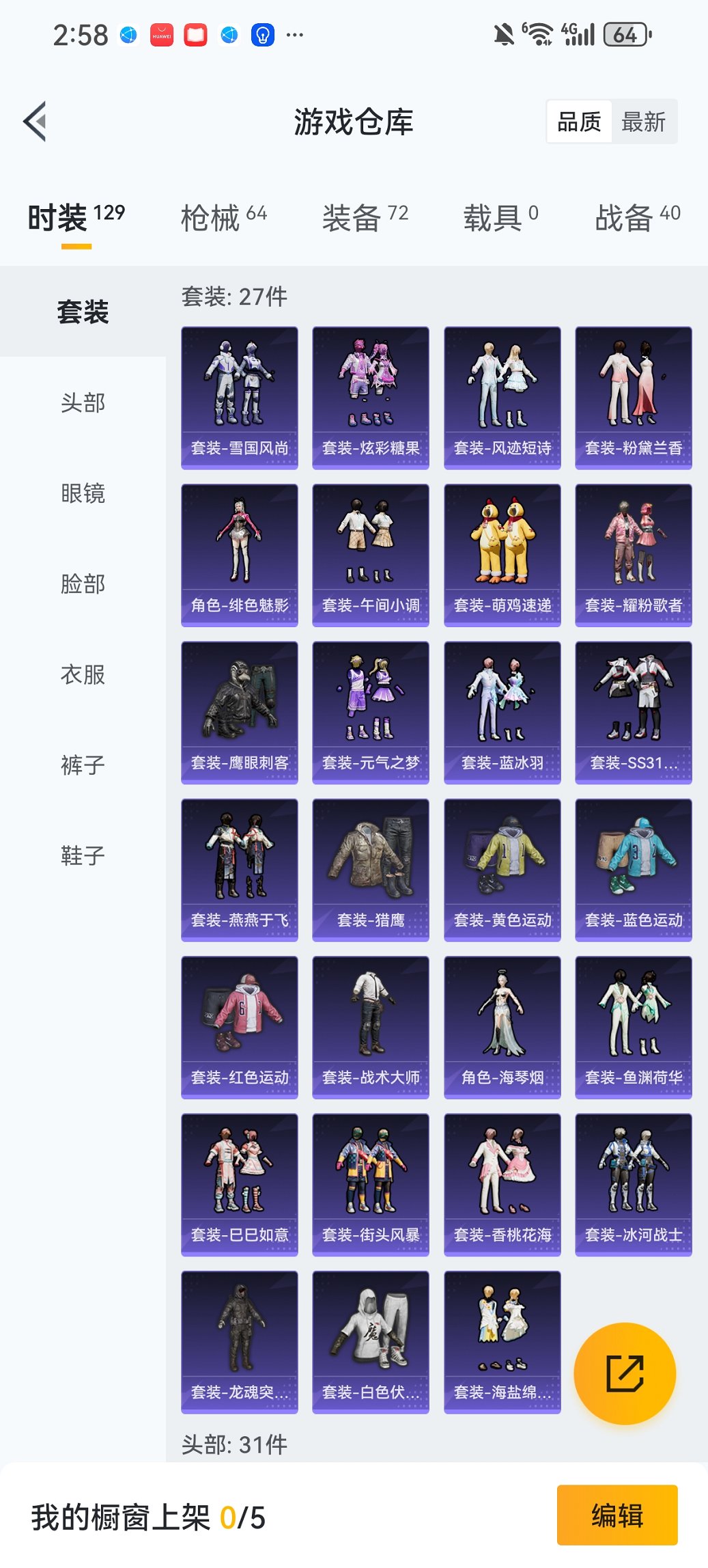 【3特效呛练手小号 q21级 秒换绑不用等】 安卓q区-14661热力值27套装-64呛皮 【3特效呛】 蜜獾-异瞳寒姬5级 kar98k-巳巳如意5级 dp-28-豹影疾电5级【72热门】 鹰眼刺客 白色伏地魔 m762-天降萌叽 mg3-幻世战舞者 猎鹰 蓝色运动 黄色运动 红色运动 海琴烟 冰河战士 mg-36-薄荷星砂 awm-天降萌叽 蓝冰羽 龙魂突击队 ace32-冰晶雪宝 鱼渊荷华 大砍刀-鬼刀 p1911-动力核心 pkm-啾咪啾咪 海盐绵绵冰 m16a4-冰河战士 燕燕于飞 ss31特训 巳巳如意 绯色魅影 粉黛兰香 战术大师 mk14-紫晶流影 pkm-紫幽梦 mk14-冰河战士 groza-海盐豹豹 mini14-香桃花海 破片手留单-巳巳如意 ac-val-圣辉之星 mk14-紫幽梦 uzi-冰河战士 野牛-燕燕于飞 香桃花海 spas-12-燕燕于飞 vect-燕燕于飞 元气之梦 蝎式手呛-燕燕于飞 街头风暴 十子怒-燕燕于飞 s12k-霓彩脉冲 vss-香桃花海 akm-霓彩脉冲 dbs-风迹短诗 雪国风尚 莫辛纳甘-风迹短诗 dbs-幻彩电音 mk12-风迹短诗 mk47-风迹短诗 蜜獾-风迹短诗 破片手留单-拽到爆炸 信号呛-异瞳寒姬 十子怒-异瞳寒姬 famas-霓彩脉冲 svd-霓彩脉冲 slr-霓彩脉冲 铝热弹-炫彩糖果 uzi-炫彩糖果 aug-冰晶雪宝 p90-巳巳如意 m200-无垠阁 s686-巳巳如意 午间小调 scar-l-海盐豹豹 m249-冰晶雪宝 萌鸡速递 风迹短诗 炫彩糖果【1飞行器】 炫彩糖果飞行器【13背包】 海盐豹豹背包3级 冰河战士背包3级 第五大道背包3级 香桃花海背包3级 临安公主背包3级 鬼刀背包3级 智谋强哥背包3级 巳巳如意背包3级 薄荷星砂背包3级 萌鸡速递背包3级 风迹短诗背包3级 粉黛兰香背包3级 炫彩糖果背包3级 营地id:960891641