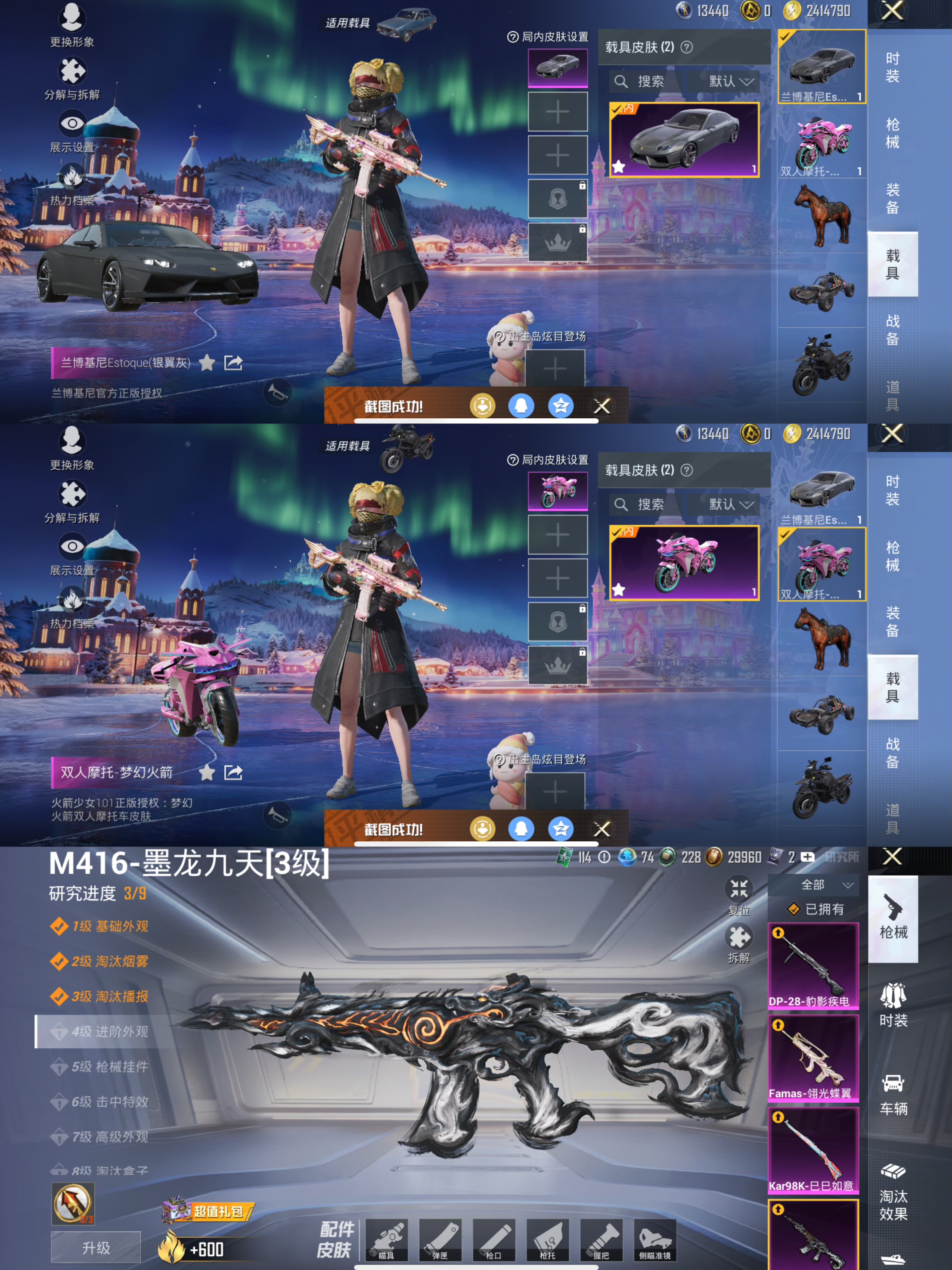 2载具-200套装-240呛皮-【网红公主对掏号 2载具14粉装8特效呛 猪妹 巧克力三姐妹 梦幻火箭 墨龙三级 心之恋语满级 梦幻火箭满级 炫紫旋律满级 粉熊背包全套 猫包 暗影哥特红眼罩 奇异狩猎者 浪漫波比 潮萌小黄鸭 雪山精英老6服 神秘黑猫 童话森林 大橘为重】苹果q-15王牌印记-14粉装-8特效呛-240呛皮-200套装-2载具 【2载具】 兰博轿车灰色 双人摩托梦幻火箭 【14粉装】