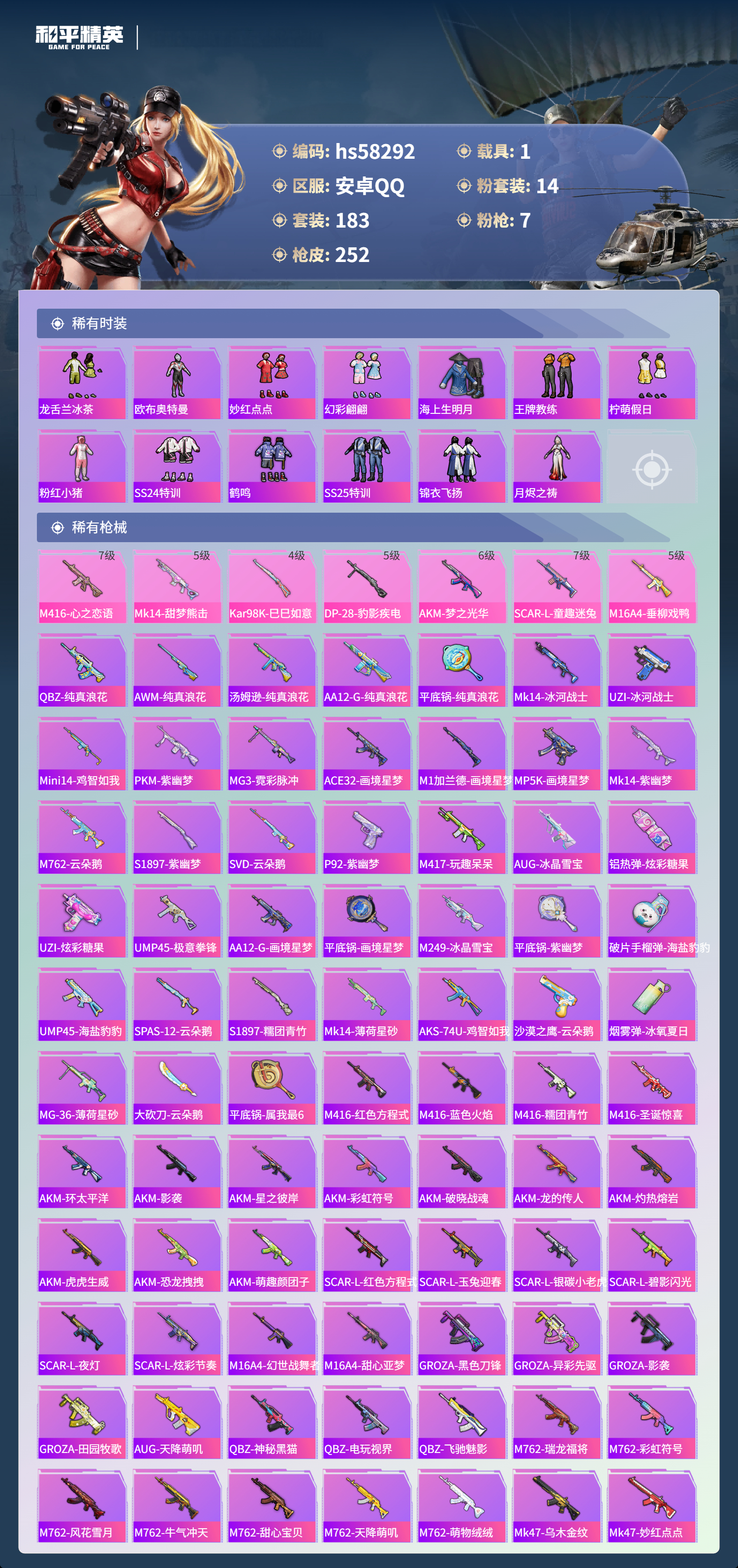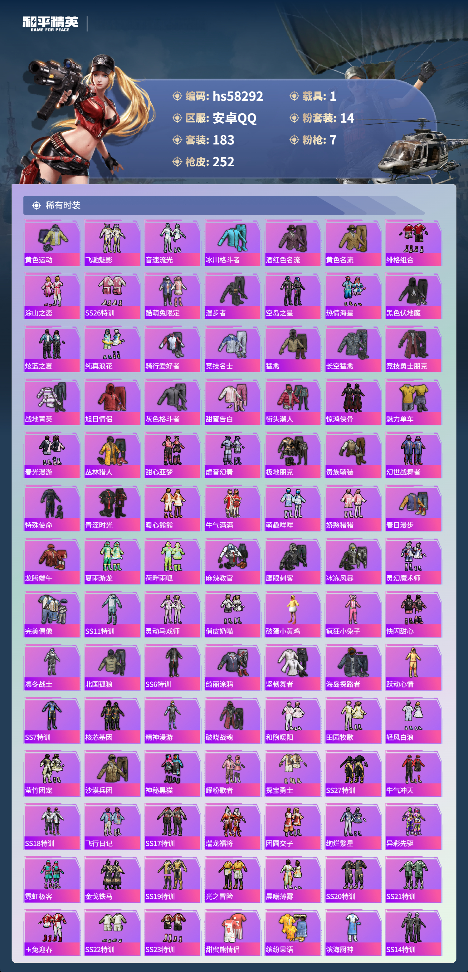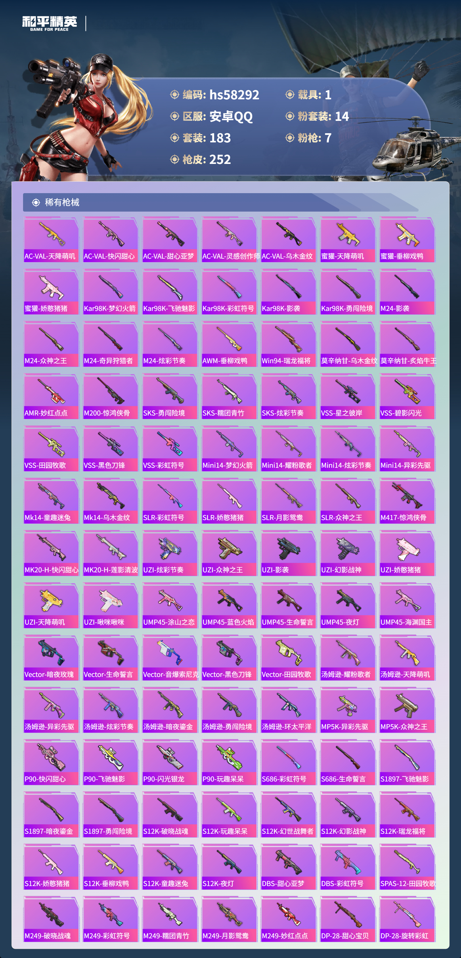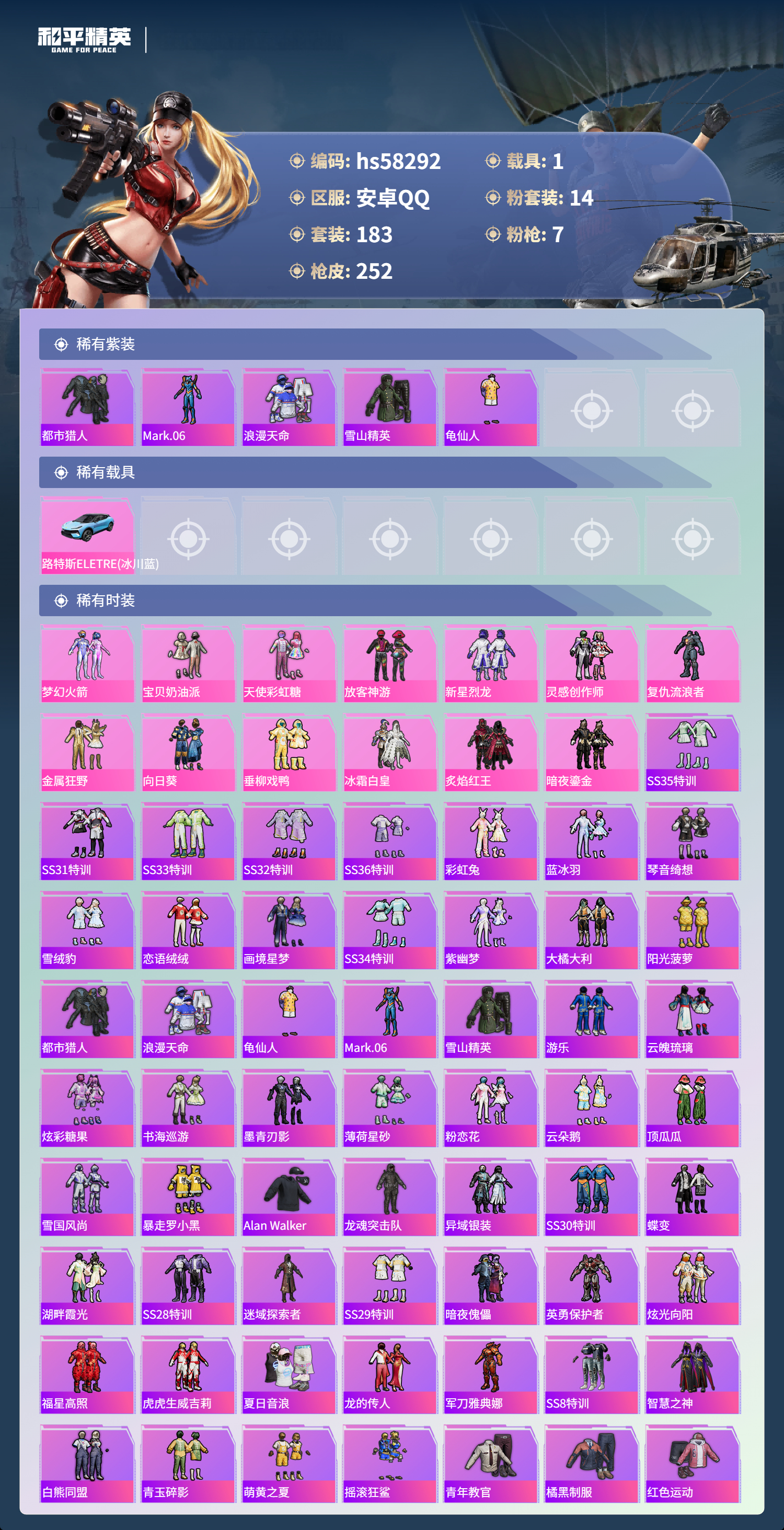 1载具-183套装-252呛皮-hs58292 安卓手q-8王牌印记-14粉装-7特效呛-1载具-83082热力值-183套装-252呛皮-1卓越印记【14粉装】套装-放客神游套装-天使彩虹糖套装-垂柳戏鸭套装-金属狂野套装-新星烈龙角色-复仇流浪者套装-梦幻火箭套装-炙焰红王套装-暗夜鎏金角色-罪夜之冕套装-向日葵套装-宝贝奶油派套装-灵感创作师套装-冰霜白皇【7特效呛】dp-28-豹影疾电/5级