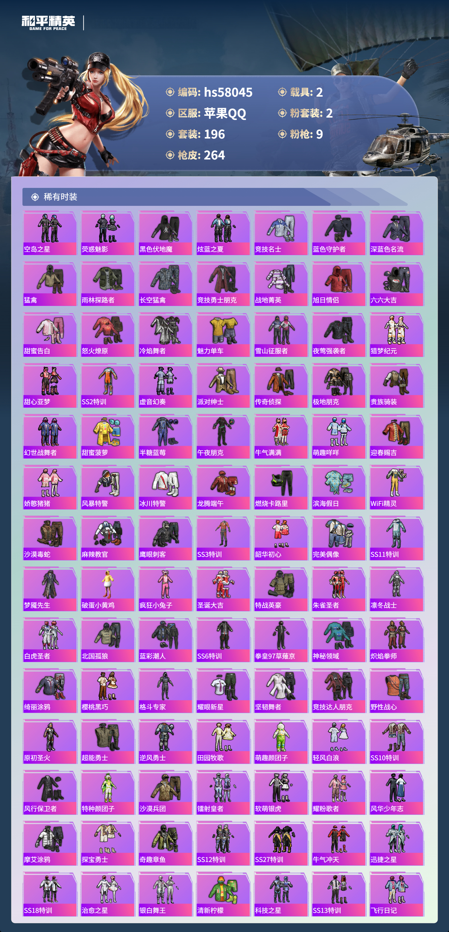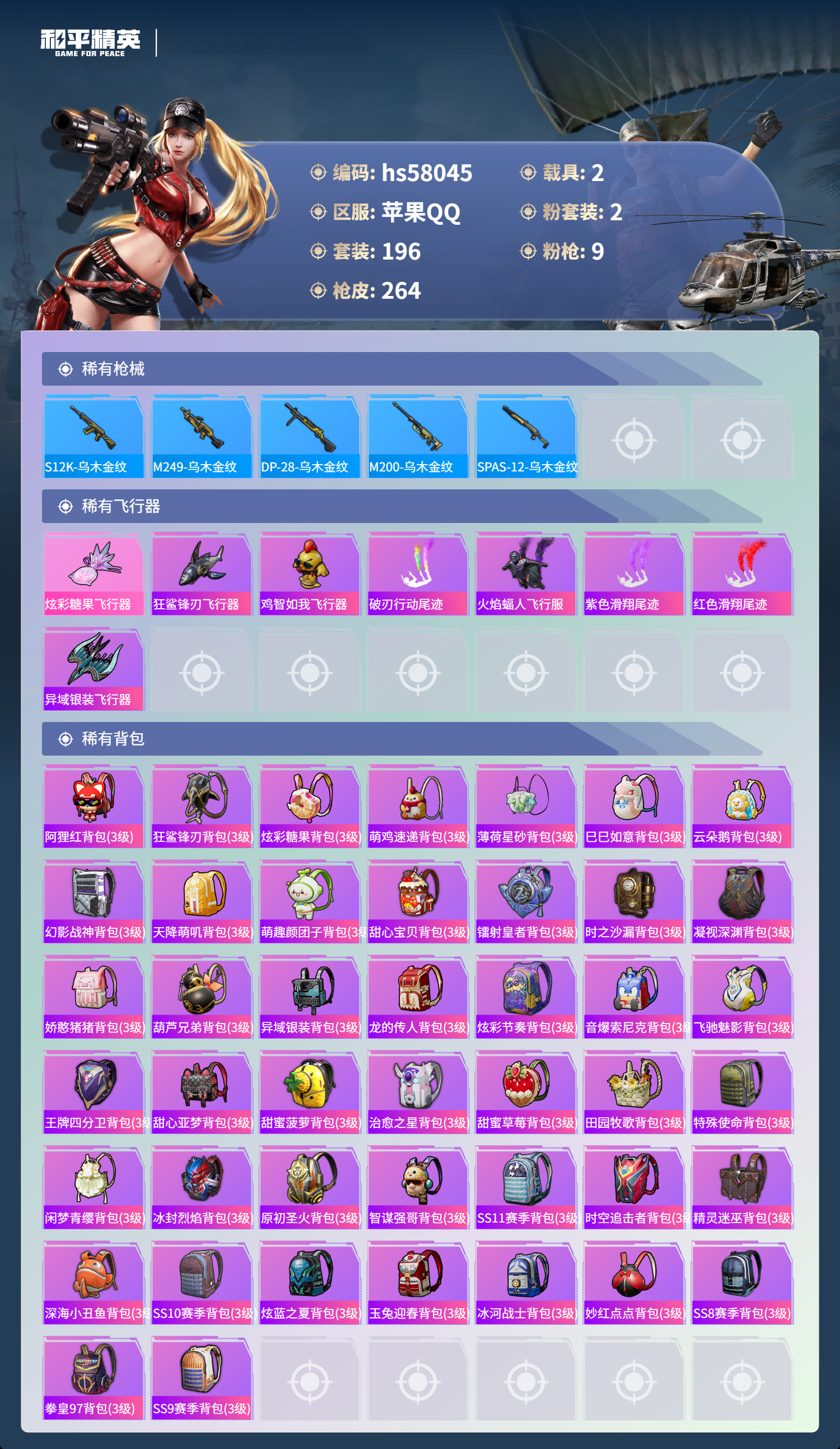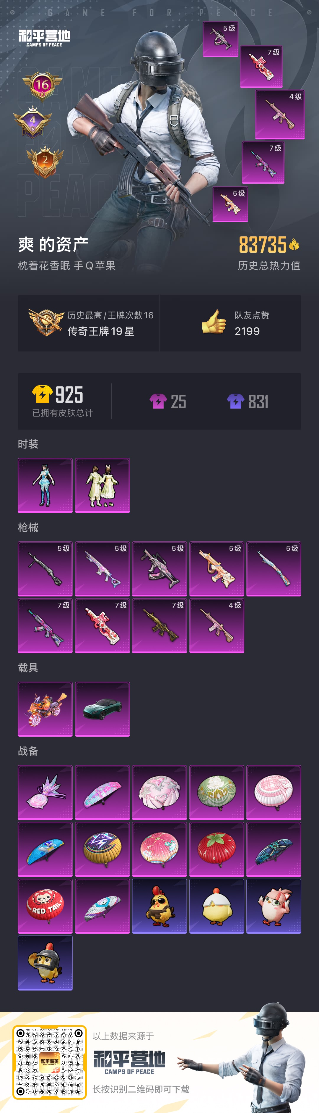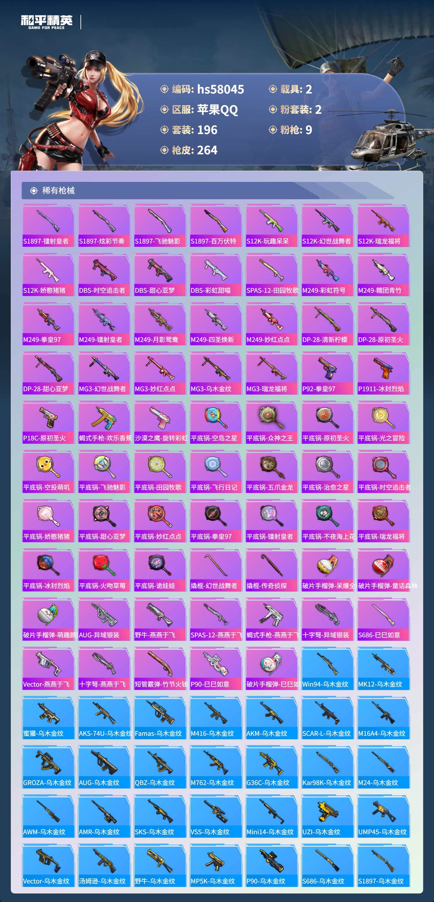 hs58045 苹果手q-16王牌印记-2粉装-9特效呛-2载具-83815热力值-196套装-264呛皮-5卓越印记-2传奇印记【2粉装】套装-闲梦青缨角色-异瞳寒姬【9特效呛】m416-心之恋语/4级dp-28-豹影疾电/5级akm-炫紫旋律/7级kar98k-巳巳如意/5级aug-暖羊咩咩/5级p90-甜蜜草莓/7级mk14-甜梦熊击/5级groza-镜光银凌/5级m4