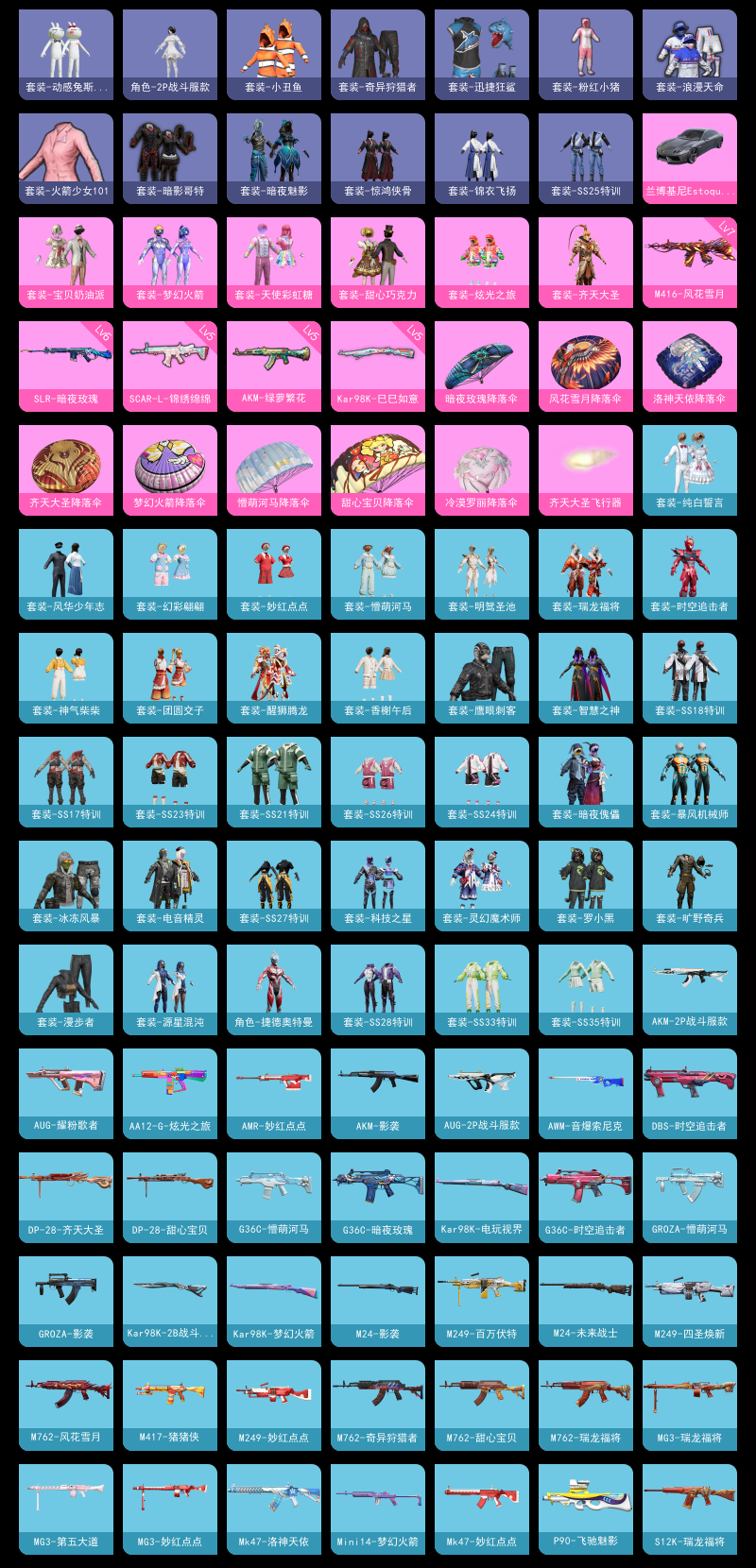 【和平精英】【txhp6423】6粉装,6特效呛,1载具,历史最高段位:卓越王牌11星 王牌印记6次 热力值:41407,90套装,123呛械,117装备,71战备;套装:套装-甜心巧克力,套装-宝贝奶油派,套装-天使彩虹糖,套装-梦幻火箭,套装-齐天大圣,套装-炫光之旅,套装-骑行爱好者,套装-竞技名士,套装-长空猛禽,套装-漫步者,套装-黎明保卫者,套装-旭日情侣,套装-浪漫天命,套装-特战装甲,套装-特殊使命,套装-甜蜜告白,套装-滨海假日,套装-鹰眼刺客,套装-冰冻风暴,套装-火箭少女101,套装-极地朋克,套装-清新柠檬,套装-奇异狩猎者,套装-暗影哥特,套装-迅捷狂鲨,套装-夏日倾情,套装-甜蜜熊情侣,套装-青涩时光,套装-缤纷果语,套装-格斗先锋,套装-旷野奇兵,套装-小丑鱼,套装-粉红小猪,套装-鹤鸣,套装-霓虹街区,套装-纯白誓言,套装-罗小黑,套装-智慧之神,套装-动感兔斯基人偶服,套装-风华少年志,套装-牛气满满,套装-战术大师,套装-ss18特训,套装-科技之星,套装-电音精灵,角色-捷德奥特曼,套装-暴风机械师,套装-时空追击者,套装-暗夜魅影,套装-暗夜傀儡,套装-ss17特训,套装-醒狮腾龙,套装-瑞龙福将,套装-团圆交子,套装-福星高照,套装-虎虎生威吉莉,套装-ss21特训,套装-灵幻魔术师,套装-绯格组合,套装-ss23特训,套装-香榭午后,套装-神气柴柴,套装-懵萌河马,套装-妙红点点,套装-幻彩翩翩,套装-王牌教练,套装-柠萌假日,套装-青玉碎影,套装-ss24特训,套装-源星混沌,套装-龟仙人,套装-涂山之恋,套装-ss25特训,套装-惊鸿侠骨,套装-锦衣飞扬,角色-2p战斗服款,套装-龙的传人,套装-ss26特训,套装-明鸳圣池,套装-ss27特训,套装-ss28特训,套装-海盐绵绵冰,套装-雾都回忆,套装-ss31特训,套装-ss33特训,套装-巳巳如意,套装-ss32特训,套装-顶瓜瓜,套装-ss34特训,套装-ss35特训;呛皮:g36c-时空追击者,g36c-暗夜玫瑰,g36c-懵萌河马,g36c-乌木金纹,mk47-洛神天依,mk47-乌木金纹,mk47-妙红点点,m762-奇异狩猎者,m762-甜心宝贝,m762-瑞龙福将,m762-风花雪月,5级scar-l-锦绣绵绵,scar-l-炫彩节奏,scar-l-暗夜玫瑰,scar-l-海盐豹豹,aug-耀粉歌者,aug-天降萌叽,aug-2p战斗服款,famas-乌木金纹,groza-影袭,groza-懵萌河马,q-彩虹符号,蜜獾-天降萌叽,5级akm-绿萝繁花,akm-影袭,akm-破晓战魂,akm-虎虎生威,akm-2p战斗服款,akm-龙的传人,7级m416-风花雪月,m416-蓝色火焰,m416-糯团青竹,m16a4-蓝色火焰,ac-val-乌木金纹,5级kar98k-巳巳如意,kar98k-梦幻火箭,kar98k-电玩视界,kar98k-2b战斗服款,kar98k-乌木金纹,awm-音爆索尼克,m200-惊鸿侠骨,莫辛纳甘-乌木金纹,莫辛纳甘-懵萌河马,m24-影袭,m24-未来战士,amr-妙红点点,amr-乌木金纹,win94-夏日绵绵冰,win94-瑞龙福将,m417-惊鸿侠骨,m417-玩趣呆呆,m417-猪猪侠,m417-幻影飞狐,6级slr-暗夜玫瑰,slr-葫芦兄弟,sks-炫彩节奏,sks-时空追击者,sks-糯团青竹,mk14-薄荷星砂,qbu-飒粉甜心,mini14-梦幻火箭,vss-彩虹符号,mk20-h-乌木金纹,汤姆逊-耀粉歌者,aks-74u-乌木金纹,uzi-影袭,uzi-炫彩节奏,uzi-天降萌叽,ump45-生命誓言,ump45-时空追击者,ump45-仲夏莫吉托,ump45-涂山之恋,p90-飞驰魅影,p90-倾城蜜语,p90-乌木金纹,vect-暗夜玫瑰,vect-音爆索尼克,野牛-乌木金纹,mp5k-乌木金纹,s12k-破晓战魂,s12k-瑞龙福将,s12k-玩趣呆呆,aa12-g-炫光之旅,dbs-时空追击者,dbs-彩虹符号,dbs-乌木金纹,s686-生命誓言,mg3-瑞龙福将,mg3-幻世战舞者,mg3-乌木金纹,mg3-妙红点点,mg3-第五大道,mg3-惊鸿侠骨,m249-百万伏特,m249-四圣焕新,m249-彩虹符号,m249-糯团青竹,m249-妙红点点,m249-绯穹魔姬,1级dp-28-豹影疾电,dp-28-甜心宝贝,dp-28-彩虹符号,dp-28-齐天大圣,pkm-懵萌河马,tmp-9-江南烟雨,短管霰弹2b战斗服款,平底锅-时空追击者,平底锅-瑞龙福将,平底锅-风花雪月,平底锅-妙红点点,平底锅-懵萌河马,平底锅-惊鸿侠骨,平底锅-空岛之星,撬棍-甜心宝贝,撬棍-齐天大圣,撬棍-环太平洋,大砍刀-2p战斗服款,爆炸猎弓-惊鸿侠骨,盐雾蛋-冰氧夏日,破片手留单-圣诞大吉,破片手留单-呆爆全场,破片手留单-拽到爆炸,十子怒-异域银装;载具:兰博基尼estoque银翼灰;降落伞:齐天大圣飞行器,粉色滑翔尾迹; 详情看图6印记-4.1w热力-6粉-6特-1车 老101/3巧克力/梦幻/哥特/天命/奇异狩猎者/小丑鱼 满级风花雪月 黑色兰博基尼