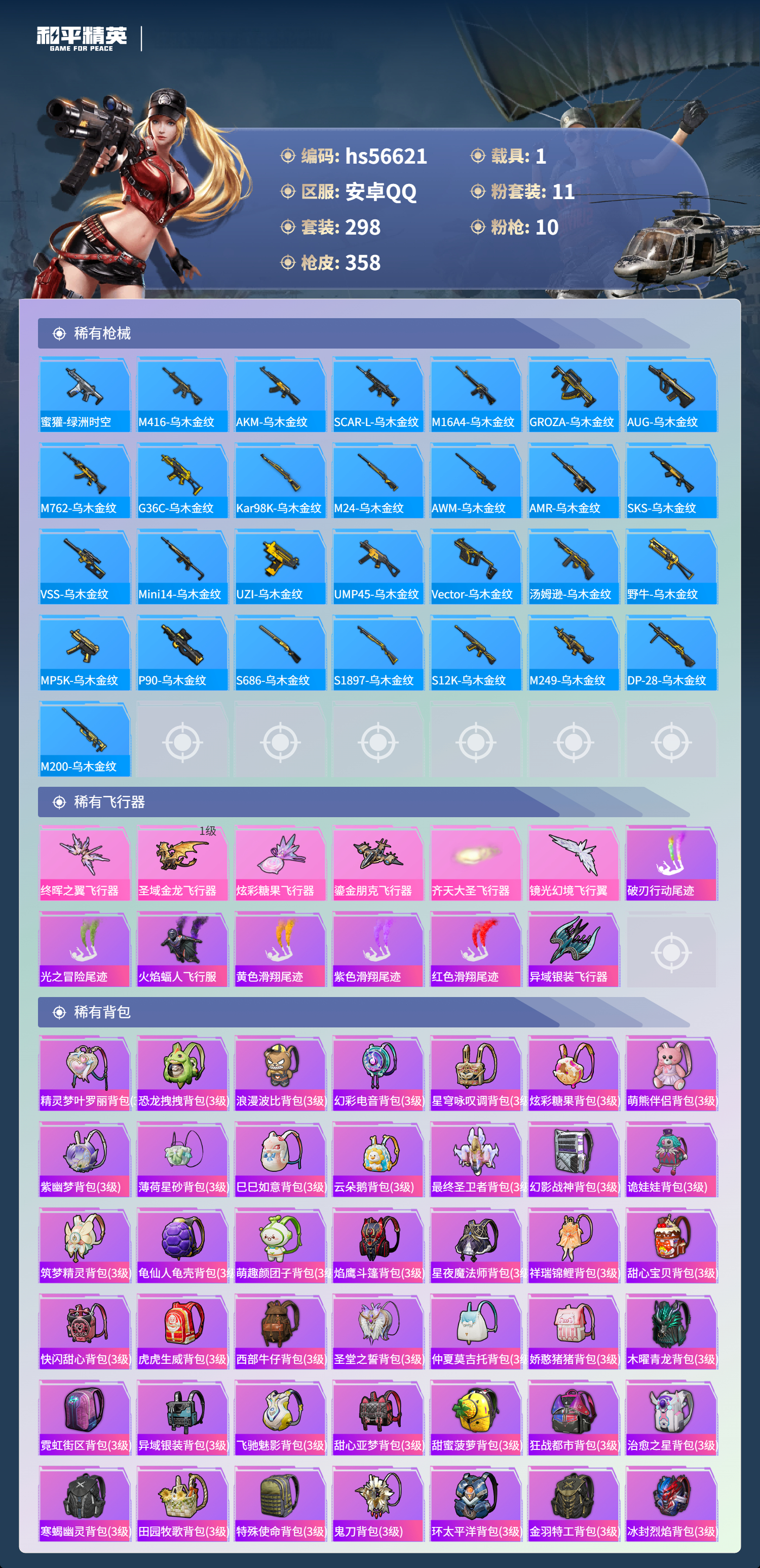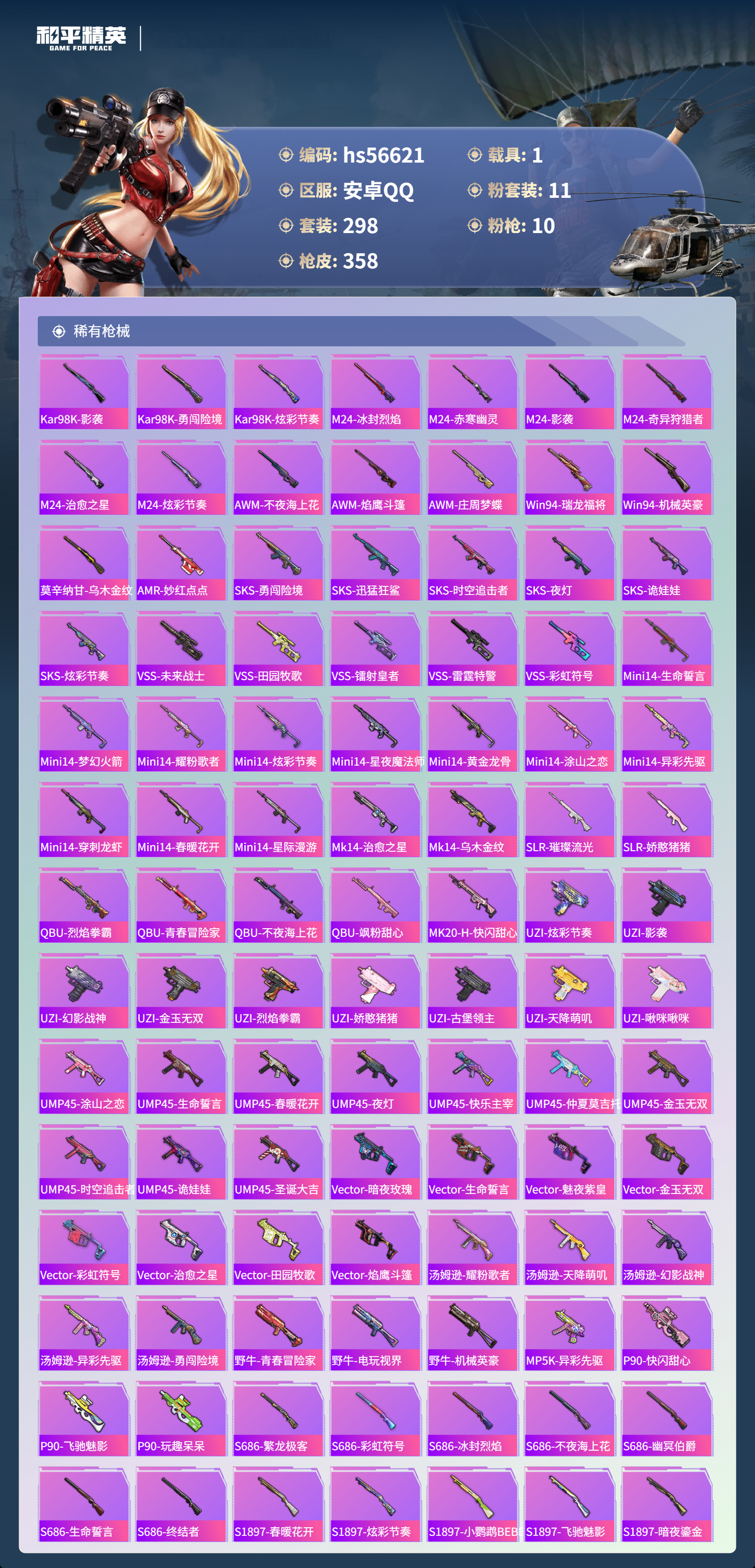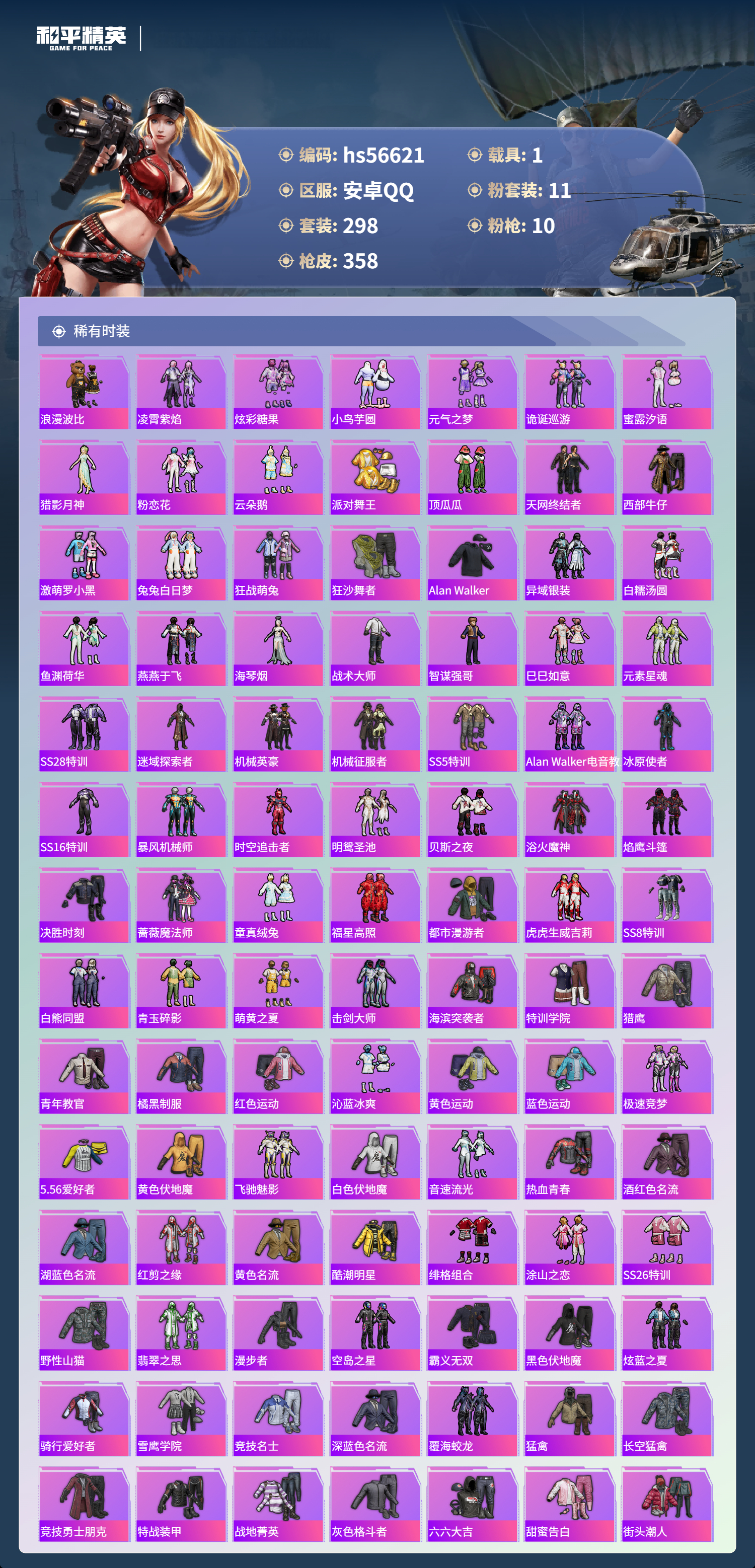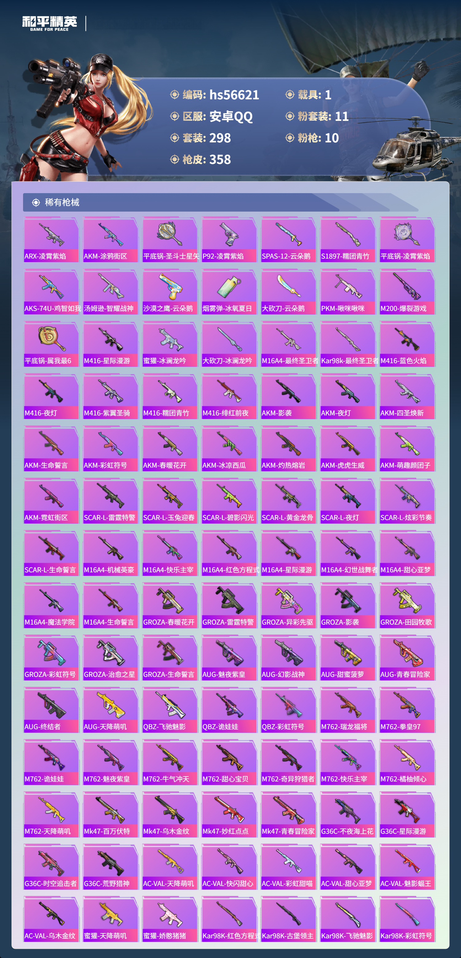 hs56621 安卓手q-17王牌印记-有战神框-1红装-11粉装-10特效呛-1载具-热力值-298套装-358呛皮-4卓越印记-2传奇印记【1红装】最终圣卫者-帕修斯/1级【11粉装】套装-王牌四分卫角色-萨利娅套装-宝贝奶油派套装-甜心巧克力套装-恐龙拽拽套装-飒粉甜心套装-天使彩虹糖套装-梦幻火箭角色-凤凰座 一辉套装-幻彩电音套装-彩虹甜喵【10特效