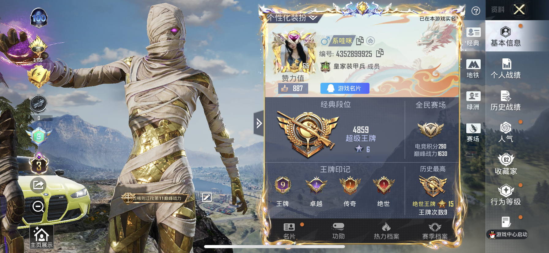 【和平精英】【txhp6391】4粉装,8特效呛,1载具,历史最高段位:绝世王牌15星 王牌印记9次 热力值:62754,157套装,190呛械,242装备,105战备;套装:沙丘之主-图卡盟,套装-绚金战神,角色-阿尔茜,套装-蜜语绒猫,角色-异瞳寒姬,套装-特训学院,套装-猎鹰,套装-青年教官,套装-橘黑制服,套装-红色运动,套装-黄色运动,套装-蓝色运动,套装-黄色伏地魔,套装-白色伏地魔,套装-黑色伏地魔,套装-冰川格斗者,套装-帅气教官,套装-竞技名士,套装-深蓝色名流,套装-酒红色名流,套装-湖蓝色名流,套装-黄色名流,套装-猛禽,套装-长空猛禽,套装-漫步者,套装-竞技勇士朋克,套装-海岛探路者,套装-时尚圣诞,套装-旭日情侣,套装-冷焰舞者,套装-灼焰舞者,套装-特战装甲,套装-战地督导,套装-青春校园,套装-灰色格斗者,套装-活力之心,套装-春日漫步,套装-冰冻风暴,套装-完美偶像,套装-街头潮人,套装-蓝彩潮人,套装-酷萌兔限定,套装-魅力单车,套装-绮丽涂鸦,套装-耀眼新星,套装-雪山征服者,套装-坚韧舞者,套装-竞技达人朋克,套装-朋克治安官,套装-都市漫游者,套装-破晓战魂,套装-都市魅力,套装-荣耀,套装-风行保卫者,套装-沙漠兵团,套装-丛林猎人,套装-雪山精英,套装-传奇侦探,套装-幻世战舞者,套装-奇趣章鱼,套装-清新柠檬,套装-蓝调潮人,套装-迅捷狂鲨,套装-青涩时光,套装-缤纷果语,套装-风暴特警,套装-冰川特警,套装-元素星魂,套装-极速红龙,套装-冷血极客,套装-海上生明月,套装-麻辣教官,套装-粉红小猪,套装-破蛋小黄鸡,套装-疯狂小兔子,套装-舞夜骑士,套装-ss5特训,套装-圣诞大吉,套装-北国孤狼,套装-ss6特训,套装-跃动心情,套装-ss7特训,套装-黑色刀锋,套装-核芯基因,套装-精神漫游,套装-鹤鸣,套装-霓虹街区,套装-ss10特训,套装-众神之王,套装-智慧之神,套装-神秘黑猫,套装-人鱼之吻,套装-ss9特训,套装-风华少年志,套装-白月香洋装,套装-探宝勇士,套装-牛气满满,套装-ss11特训,套装-战术大师,套装-ss12特训,套装-耀粉歌者,套装-ss13特训,套装-竞技角斗士,套装-热情海星,套装-纯真浪花,套装-浪漫樱花,套装-ss19特训,套装-ss20特训,套装-ss21特训,套装-绯格组合,套装-柠萌假日,套装-ss25特训,套装-惊鸿侠骨,套装-锦衣飞扬,套装-云霞荷露,套装-香桃花海,套装-潮酷猛小鳄,套装-龙的传人,套装-ss26特训,套装-快闪甜心,套装-春光漫游,套装-空岛之星,套装-明鸳圣池,套装-贝斯之夜,套装-焰鹰斗篷,套装-幽夜迷踪,套装-幻羽潜行,套装-ss27特训,套装-恋语绒绒,套装-老实芭蕉,套装-ss28特训,角色-白光莹,套装-街头风暴,套装-海盐绵绵冰,角色-无面战甲,套装-ss30特训,玩偶服-酷勇熊大,玩偶服-憨乐熊二,套装-ss31特训,套装-鱼渊荷华,套装-燕燕于飞,套装-智谋强哥,角色-海琴烟,套装-ss33特训,套装-巳巳如意,套装-ss32特训,套装-青翼流星,套装-狂鲨锋刃,套装-元气之梦,套装-ss34特训,套装-朱霞炽焰,套装-凌霄紫焰,套装-ss35特训,套装-琴音绮想,套装-画境星梦,套装-ss36特训,套装-雪国风尚;呛皮:蜜獾-绯穹魔姬,蜜獾-乌木金纹,ace32-画境星梦,ace32-冰晶雪宝,ac-val-彩虹甜喵,ac-val-天降萌叽,ac-val-快闪甜心,m762-绯红前夜,m762-牛气冲天,m762-天降萌叽,m762-登顶巅峰,m762-乌木金纹,groza-生命誓言,groza-黑色刀锋,groza-恐龙拽拽,groza-无面战甲,groza-乌木金纹,5级scar-l-锦绣绵绵,scar-l-夜灯,scar-l-炫彩节奏,scar-l-甜蜜旋律,scar-l-是爱神辣,scar-l-海盐豹豹,scar-l-乌木金纹,5级akm-绿萝繁花,akm-灼热熔岩,akm-影袭,akm-玉龙,akm-破晓战魂,akm-霓虹街区,akm-龙的传人,akm-乌木金纹,q-神秘黑猫,q-彩虹符号,q-未来歌姬,q-纯真浪花,q-乌木金纹,famas-乌木金纹,m16a4-幻世战舞者,m16a4-乌木金纹,5级m416-电玩时刻,m416-夜灯,m416-蓝色火焰,m416-黄金龙骨,m416-糯团青竹,m416-乌木金纹,aug-耀粉歌者,aug-异域银装,aug-月影灵韵,aug-冰晶雪宝,aug-乌木金纹,arx-凌霄紫焰,g36c-不夜海上花,m24-众神之王,m24-乌木金纹,awm-黄金龙骨,awm-不夜海上花,awm-焰鹰斗篷,awm-纯真浪花,awm-乌木金纹,5级amr-智耀战神,amr-乌木金纹,5级kar98k-巳巳如意,kar98k-红色方程式,kar98k-顶峰精英,m200-惊鸿侠骨,m200-乌木金纹,win94-乌木金纹,mini14-金鼠迎春,mini14-香桃花海,mini14-绯穹魔姬,mini14-乌木金纹,qbu-不夜海上花,mk12-乌木金纹,vss-黑色刀锋,vss-香桃花海,vss-乌木金纹,sks-炫彩节奏,sks-未来歌姬,sks-乌木金纹,m417-惊鸿侠骨,mk20-h-莲影清波,mk20-h-快闪甜心,mk20-h-狂鲨锋刃,m1加兰德-画境星梦,mk14-乌木金纹,mk14-薄荷星砂,slr-众神之王,汤姆逊-耀粉歌者,汤姆逊-庄周梦蝶,汤姆逊-天降萌叽,汤姆逊-纯真浪花,汤姆逊-乌木金纹,uzi-影袭,uzi-魔法学院,uzi-众神之王,uzi-逆行者qq,uzi-极光之刃应用宝,uzi-天降萌叽,uzi-啾咪啾咪,uzi-炫彩糖果,mp5k-众神之王,mp5k-画境星梦,mp5k-乌木金纹,3级p90-沙丘之主,p90-快闪甜心,p90-玩趣呆呆,p90-竞速先锋,p90-乌木金纹,vect-生命誓言,vect-黑色刀锋,vect-彩虹符号,vect-焰鹰斗篷,vect-创世·救赎,vect-燕燕于飞,vect-乌木金纹,野牛-沙丘之主,野牛-燕燕于飞,3级aks-74u-森灵之息,aks-74u-乌木金纹,ump45-生命誓言,ump45-春暖花开,ump45-海渊国主,js9-凌霄紫焰,spas-12-燕燕于飞,spas-12-狂鲨锋刃,spas-12-罪夜之冕,spas-12-乌木金纹,s1897-百万伏特,s1897-神秘黑猫,s1897-糯团青竹,s12k-夜灯,s12k-幻世战舞者,s12k-玩趣呆呆,s12k-乌木金纹,s686-生命誓言,s686-魔法学院,s686-不夜海上花,s686-千金淑猫,aa12-g-纯真浪花,aa12-g-画境星梦,dbs-焰鹰斗篷,dbs-月影灵韵,dbs-乌木金纹,