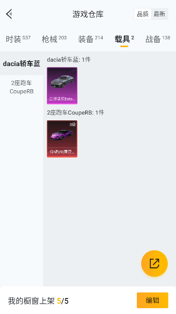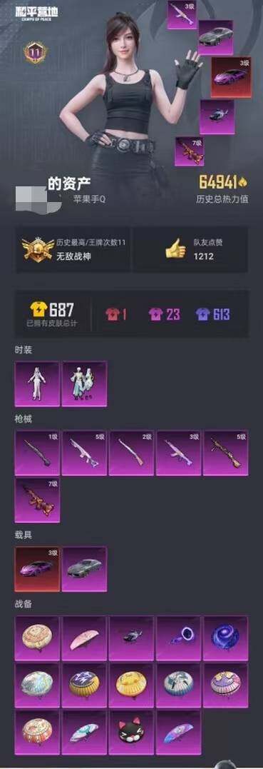 2载具-537套装-203呛皮-【ss21战神头像框!!】时装数: 141 载具数: 2 呛械数: 203 战备数: 138 热门装扮: 奇异狩猎者万圣娃娃潮萌小黄鸭动感兔斯基金丰海韵冷漠罗丽 载具: 空客h135-蔚蓝之翼兰博基尼estoque银翼灰仰望u9雷霆紫 稀有呛皮:七级m416-风花雪月,五级dp