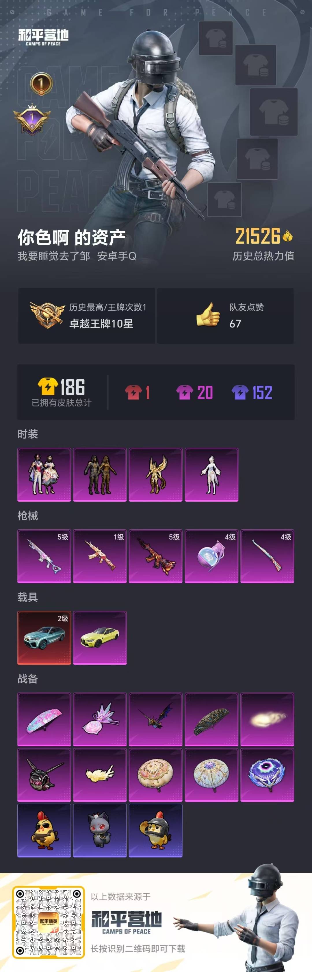 [15907928]4粉装 5特效呛 2载具 1印记 可二次 【热门装扮】女娲灵识凤凰座 一辉星穹咏叹调繁龙极客 【载具】宝马x6 m脉冲绿宝马m4圣保罗黄 【稀有呛皮】破片手留单-瓶中星球aks-74u-星穹咏叹调mk14-甜梦熊击kar98k-巳巳如意m416风花雪月 【二级载具】二级宝马x6 m脉冲绿 【五级特效呛】五级mk14-甜梦熊击五级m416-风花雪月 【四级特效呛】四级kar98k-巳巳如意四级破片手留单-瓶中星球 【一级特效呛】一级aks-74u-星穹咏叹调 【紫色装扮】ss34特训套装极速光影ss31特训套装ss33特训套装ss35特训香桃花海蓝海鲸歌竞技达人朋克灼焰舞者缤纷果语长空猛禽鹤鸣星途旅人竞技名士玉兔迎春巳巳如意大橘大利星渊小夜曲小鸟芋圆鲛海歌灵粉恋花蓝冰羽紫幽梦ss32特训套装幽秘之星 【优质战备】繁龙极客降落伞繁龙极客飞行器炫彩糖果降落伞炫彩糖果飞行器御兔特攻飞行器雀灵庇佑飞行器智耀战神降落伞圣辉之星降落伞飞行器-齐天大圣
