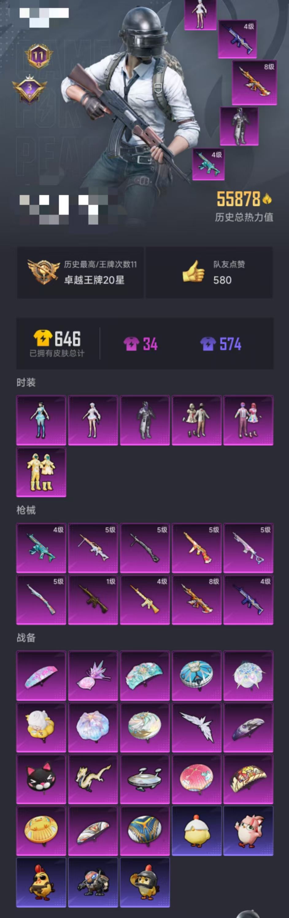 可二次【都市至情至圣8级 6粉装10特效呛可秒换绑】 安卓q区-55878热力值-11印记-121套装-194呛皮 【1稀有】 awm-黄金龙骨【6粉装】 宝贝奶油派 天使彩虹糖 垂柳戏鸭 幻影战神 角色-荧海星豚 角色-异瞳寒姬【10特效呛】 scar-l-青春物语4级 m416-五爪金龙1级 m416-至情至圣8级 m16a4-垂柳戏鸭4级 mk14-甜梦熊击5级 汤姆逊-热量炸弹5级 kar98k-巳巳如意5级 dp-28-豹影疾电5级 mg-36-沧焰双生5级 蜜獾-异瞳寒姬4级【31热门】 m416-蓝色火焰 groza-彩虹符号 长空猛禽 牛气冲天 懵萌河马 风暴特警 破蛋小黄鸡 大橘为重 暗影哥特红眼罩 冰公主 白色伏地魔 ss27特训 ss26特训 ss25特训 ss24特训 ss23特训 ss22特训 mini14-千面幻镜 akm-环太平洋 scar-l-玉兔迎春 m762-天降萌叽 mk47-乌木金纹 sks-糯团青竹 mini14-旋转彩虹 uzi-娇憨猪猪 s12k-垂柳戏鸭 dbs-彩虹符号 m249-彩虹符号 mg3-幻世战舞者【4飞行器】 镜光幻境飞行翼 黄族统领飞行器 千面幻镜飞行器 炫彩糖果飞行器 营地id:910698015