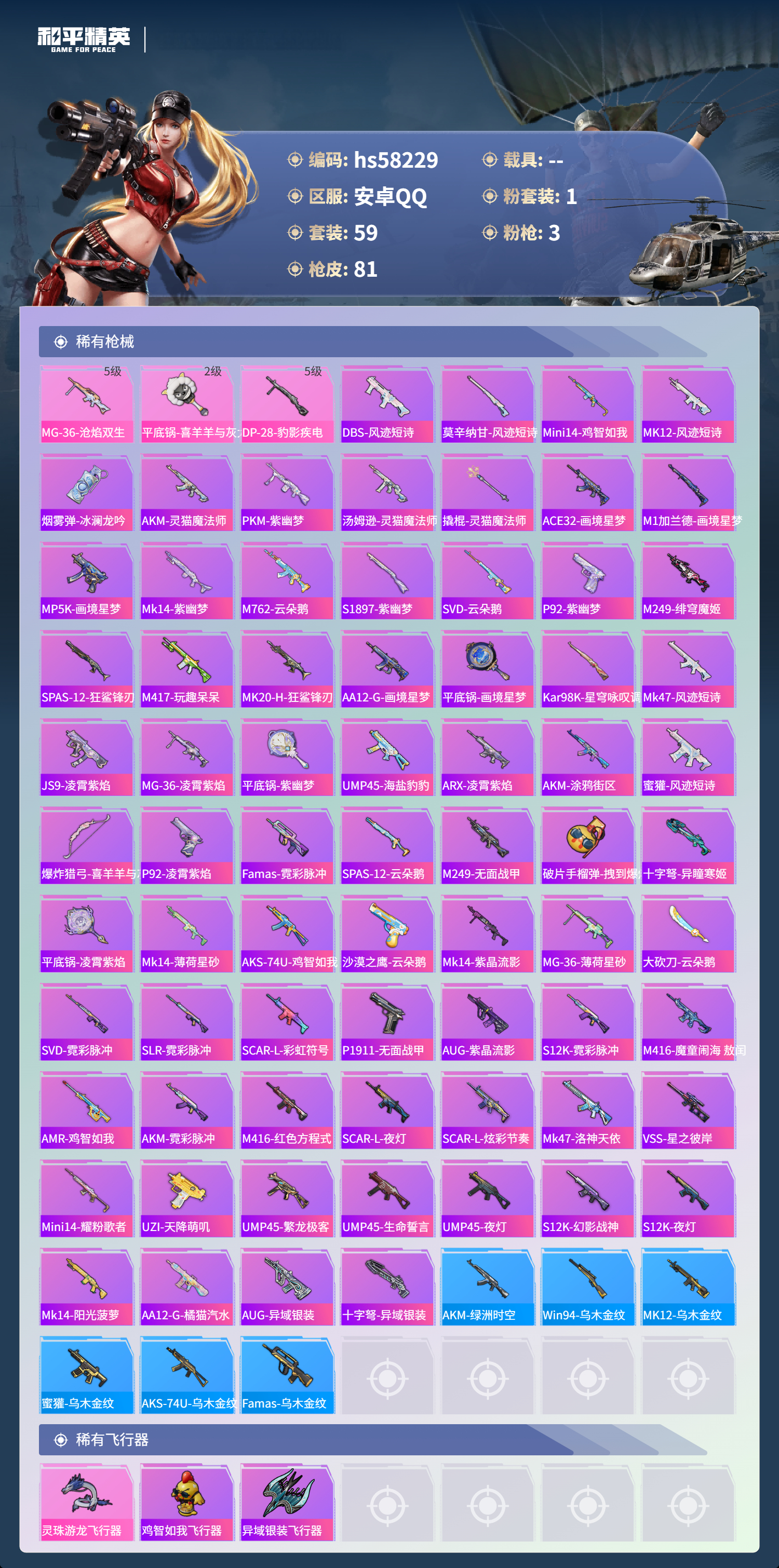 hs58229 安卓手q-4王牌印记-1红装-1粉装-3特效呛-24389热力值-59套装-81呛皮-3卓越印记-1传奇印记【1红装】灵猫魔法师-塞维尔/3级【1粉装】套装-幻影战神【3特效呛】dp-28-豹影疾电/5级平底锅-喜羊羊与灰太狼/2级mg-36-沧焰双生/5级【3稀有紫装】都市猎人暗影哥特浪漫天命【59稀有时装】幻影战神塞维尔/3级ss35特训午间小调ss3